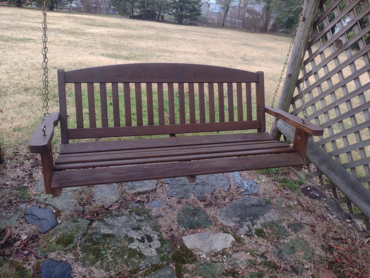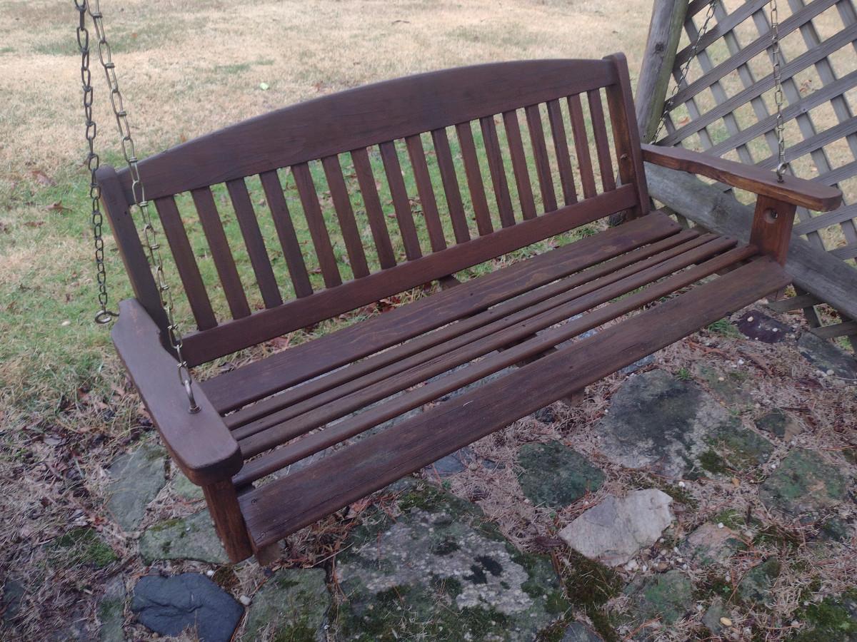 Wooden Hanging Garden/ Porch Swing. Approx 59" long. Please see all pictures- some areas of aging to wood, but item appears to be in functional condition.