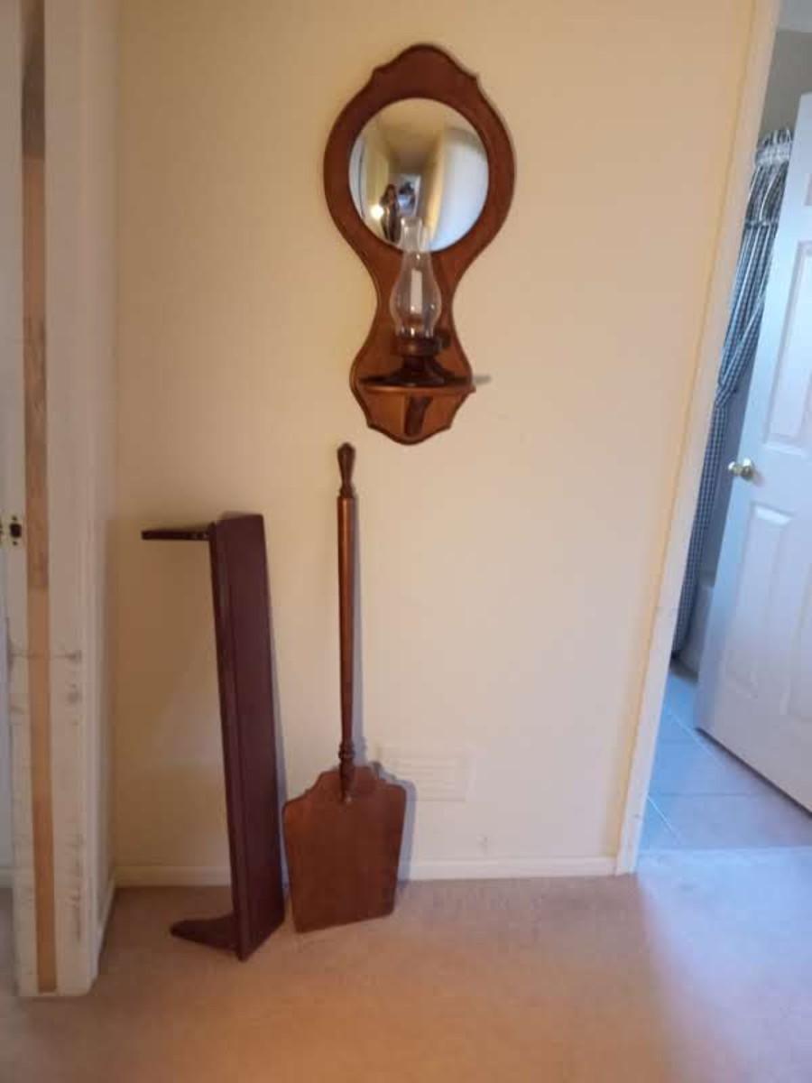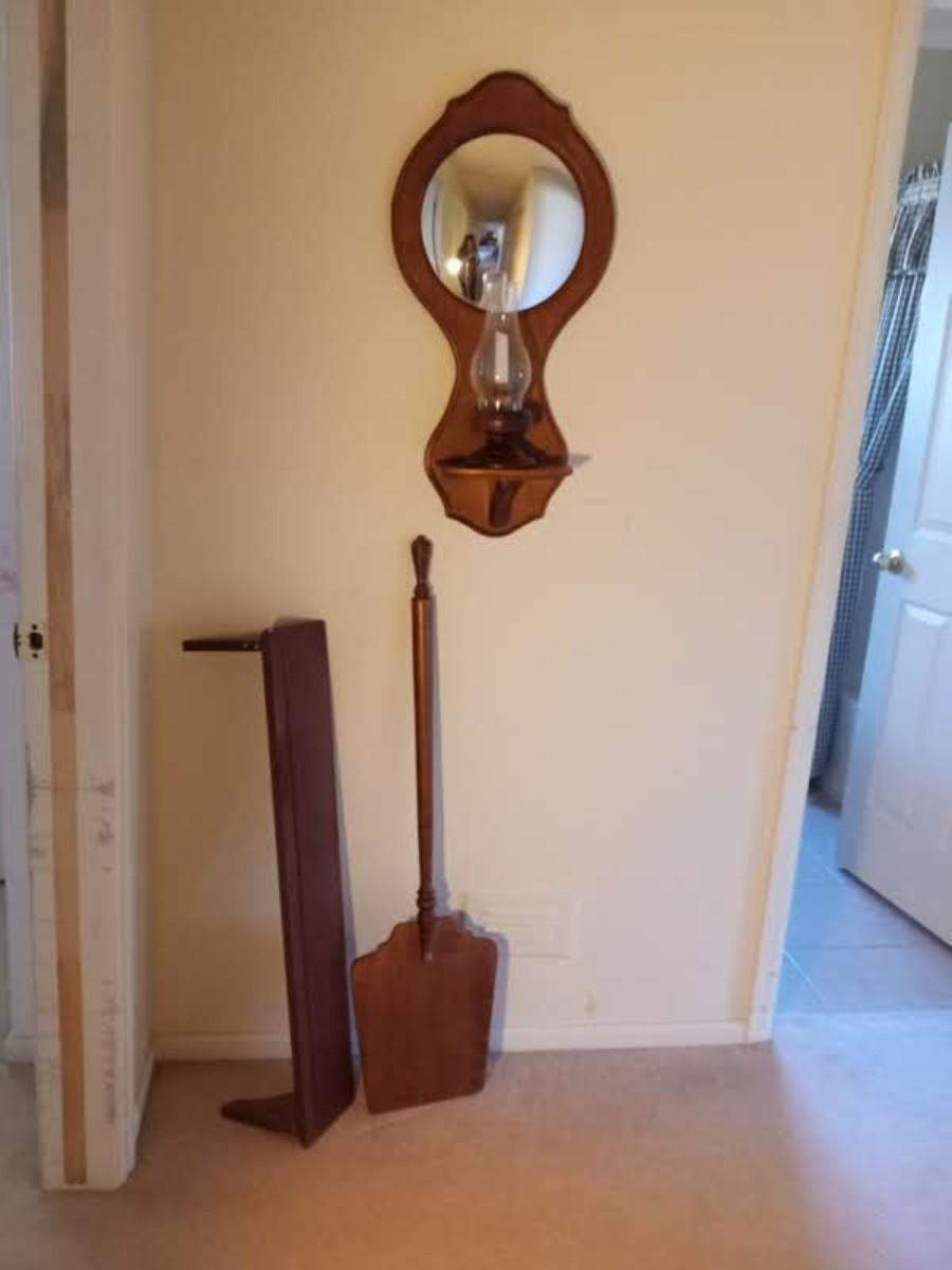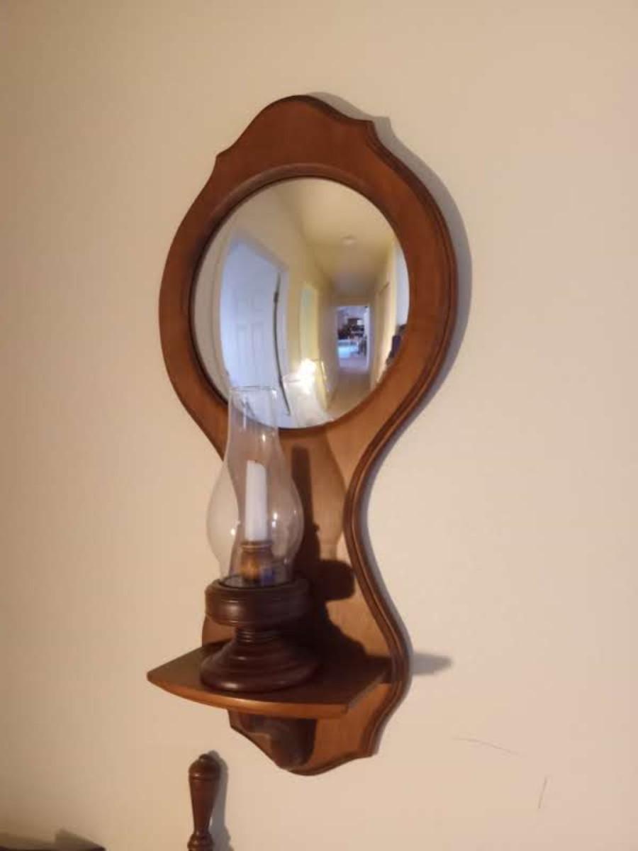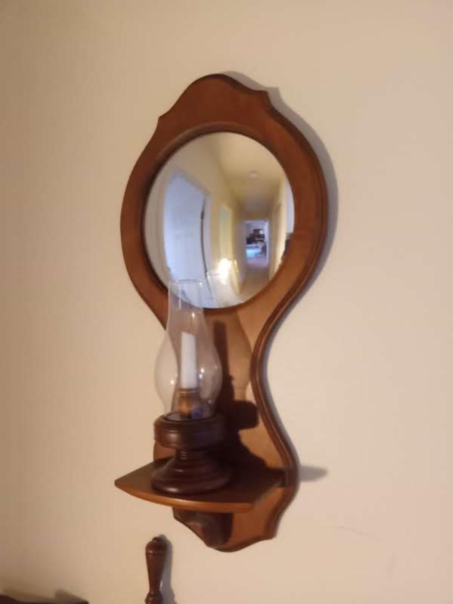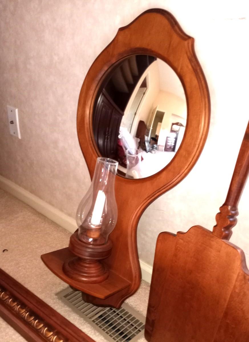 MIRROR SHELF MEASURES APPROX. 30X15, SHELF APPROX. 36W, WOOD DECOR 42T