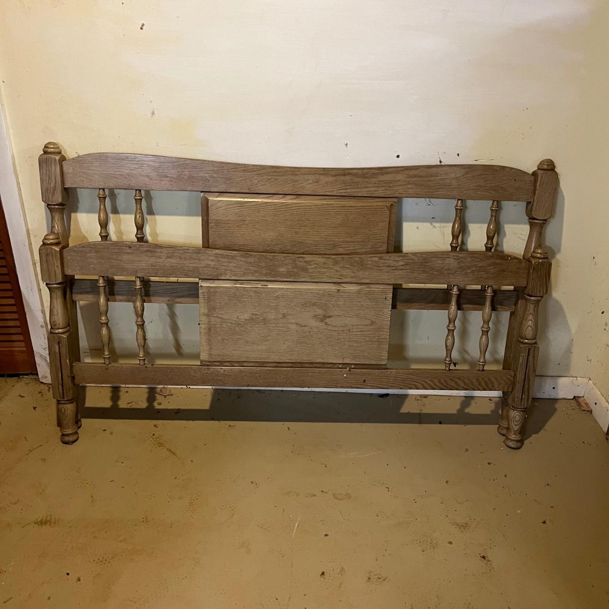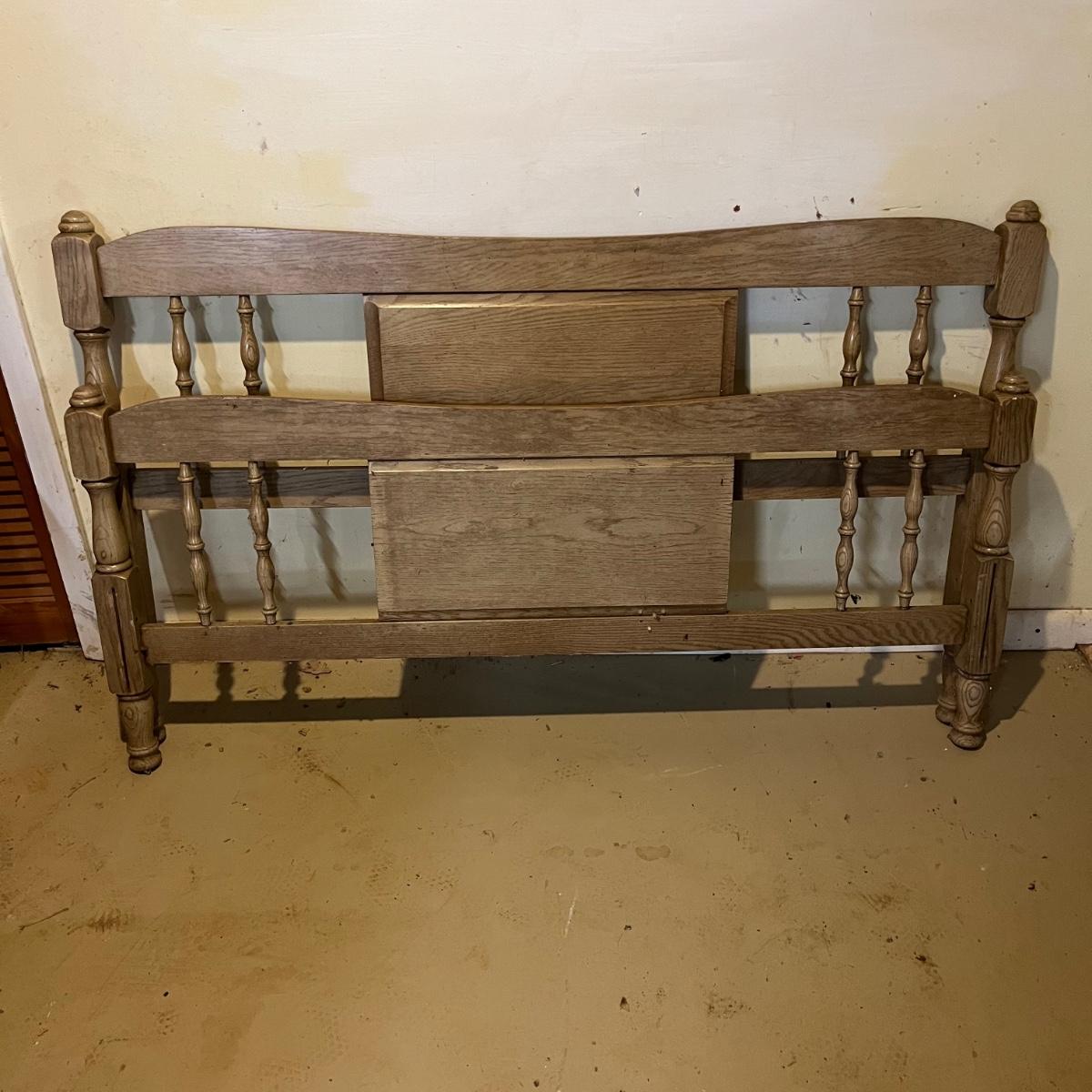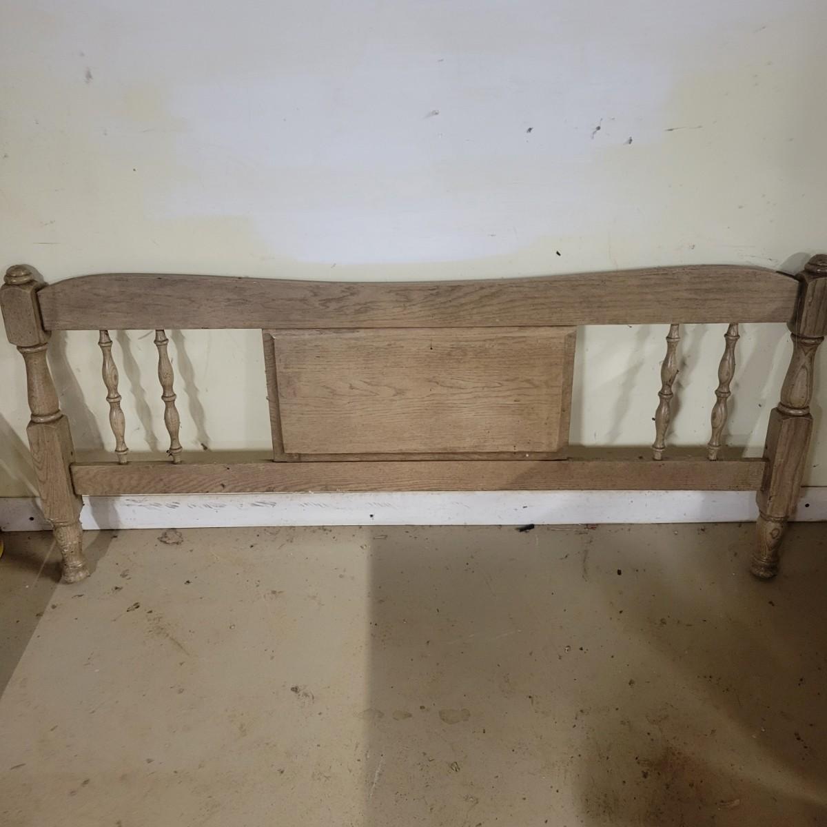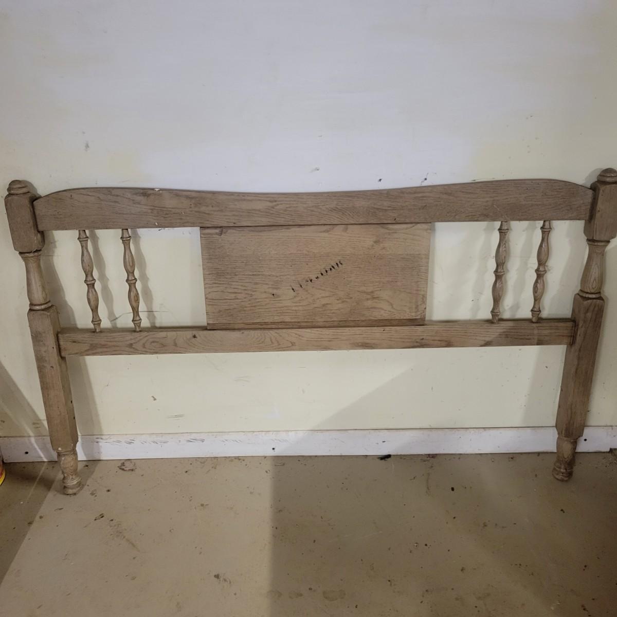 Lot includes a wooden head and footboard with slots for side rails, side rails not included.