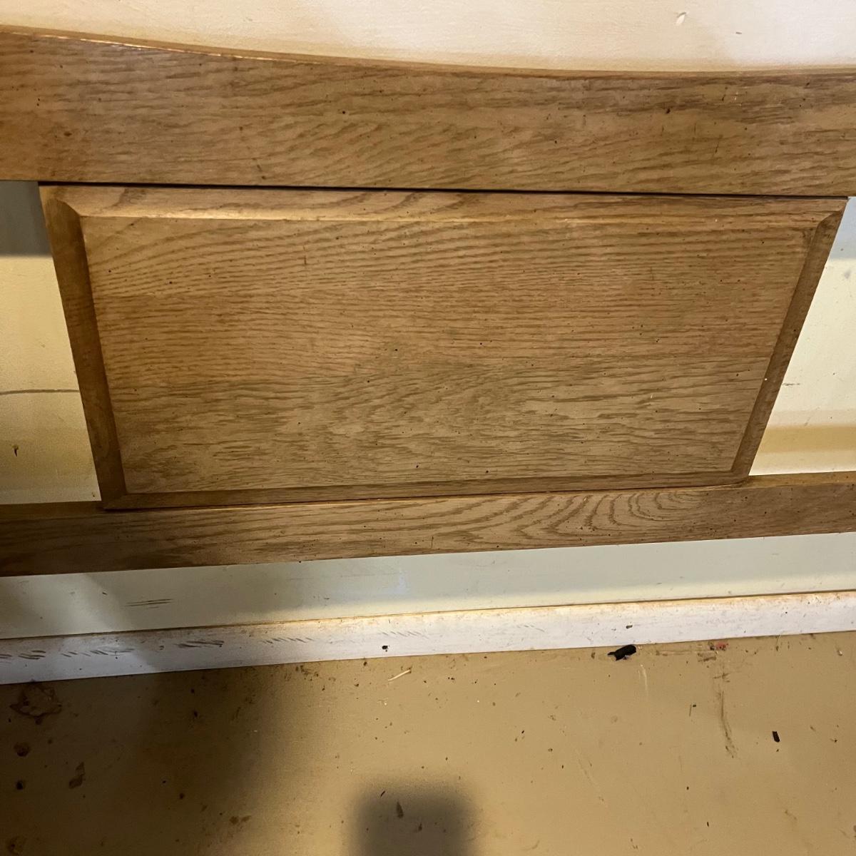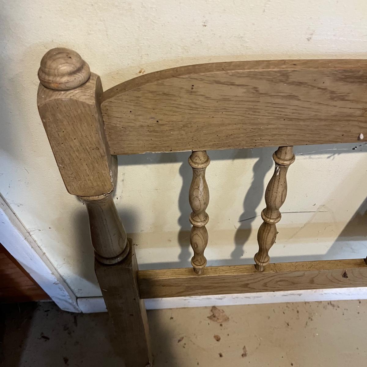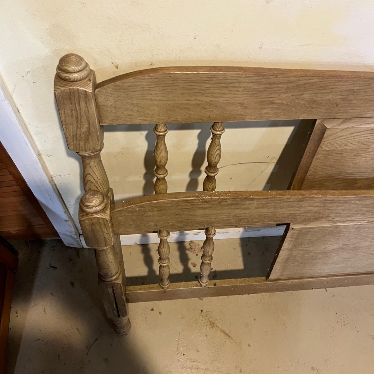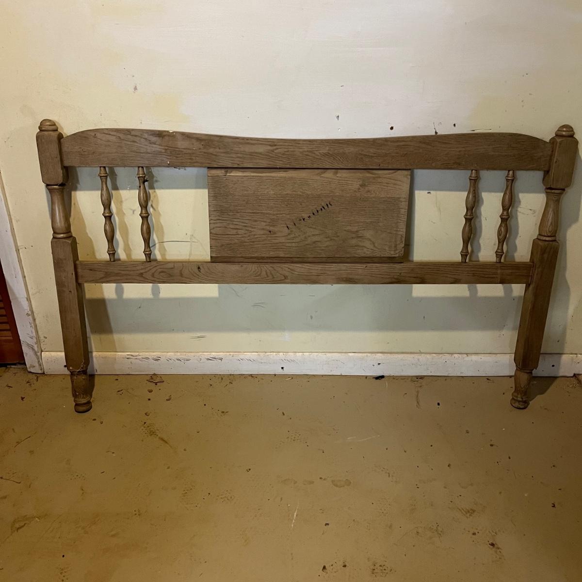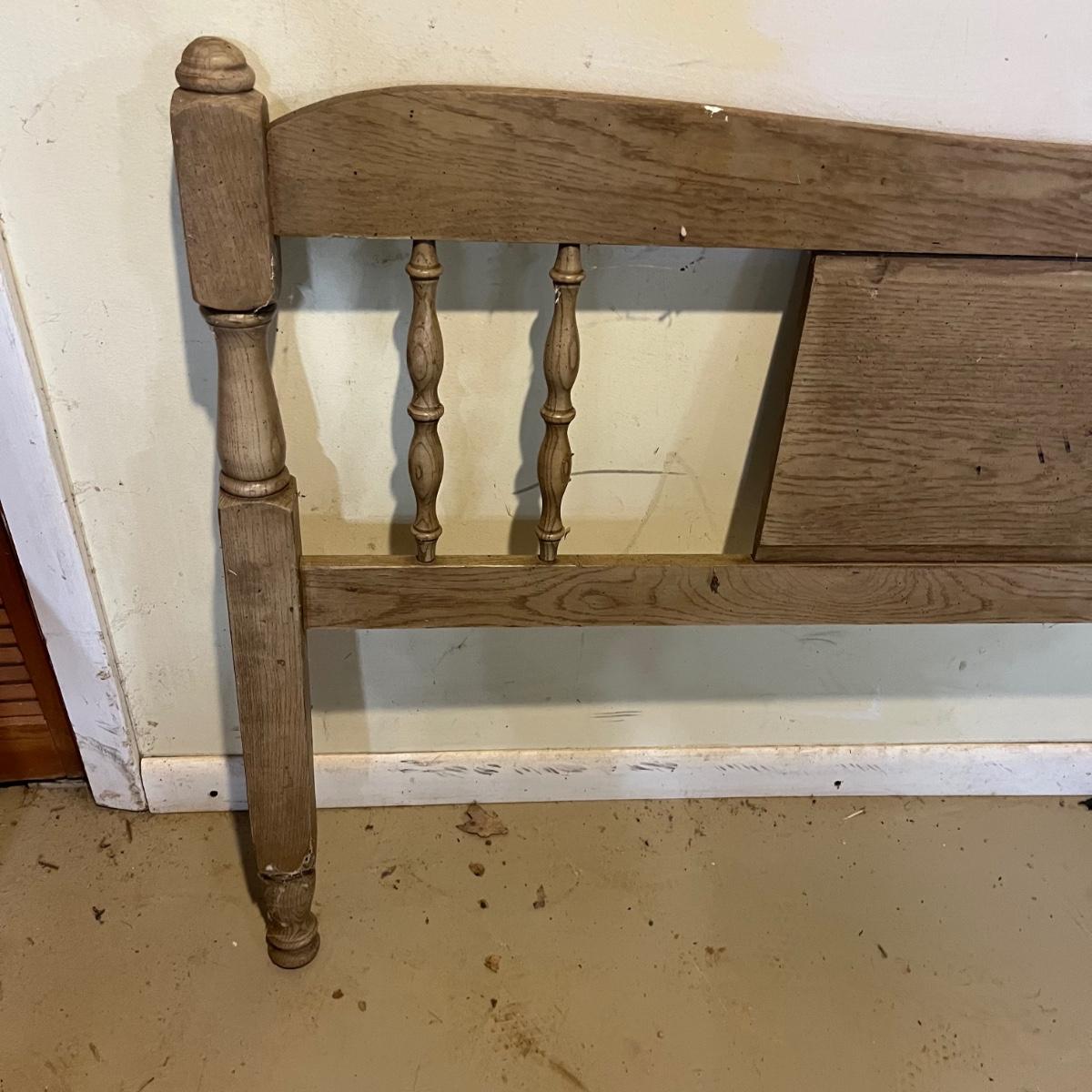 Lot includes a wooden head and footboard with slots for side rails, side rails not included.