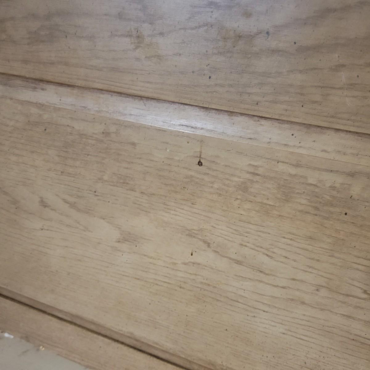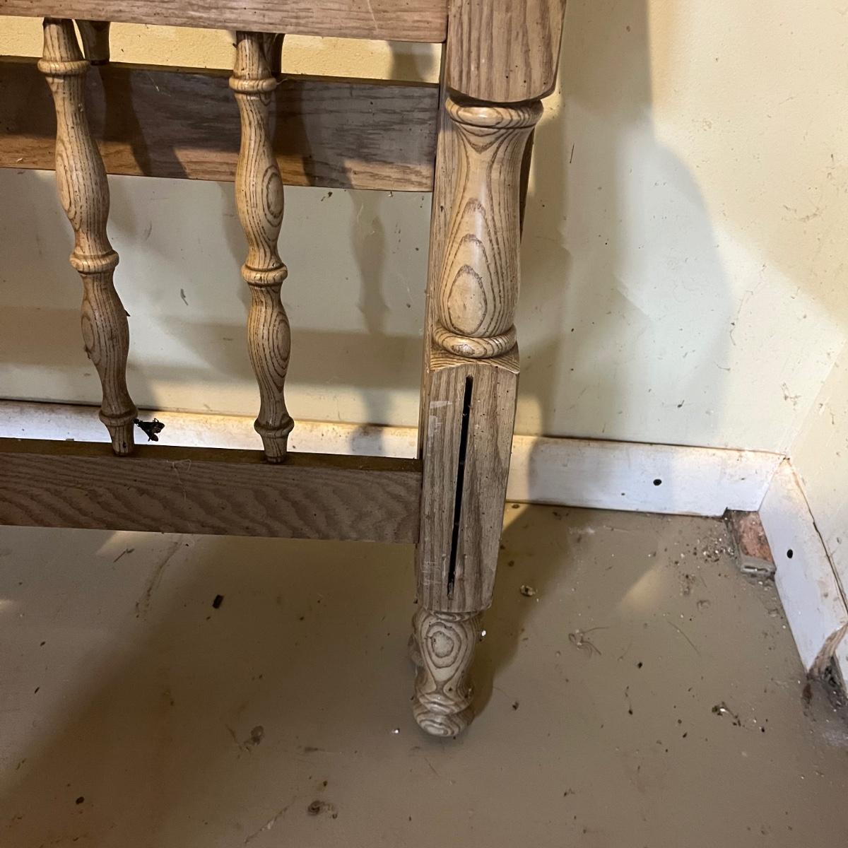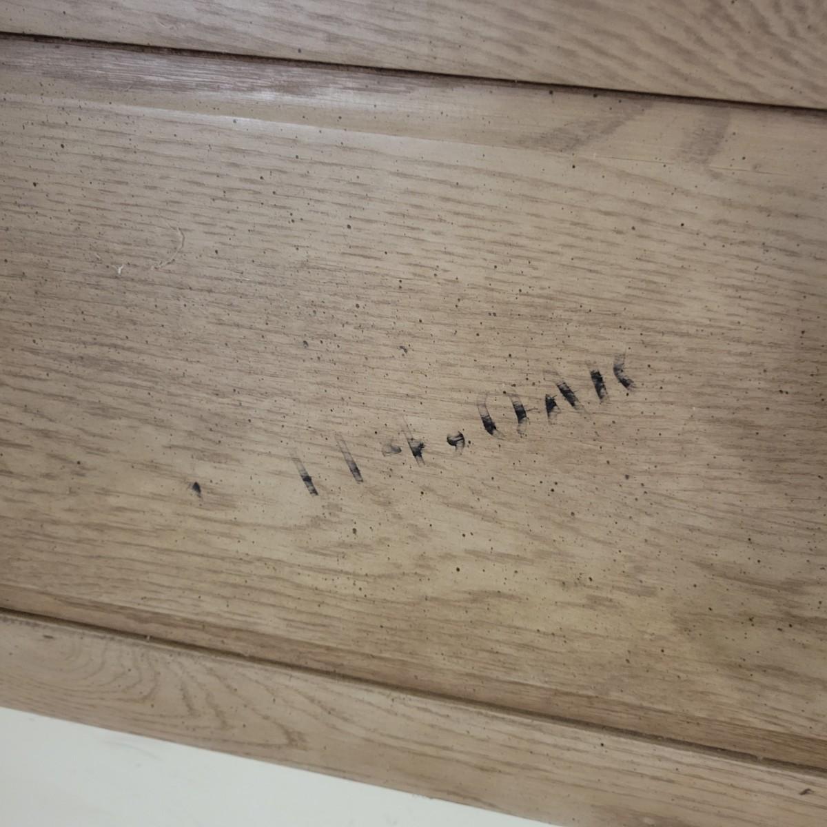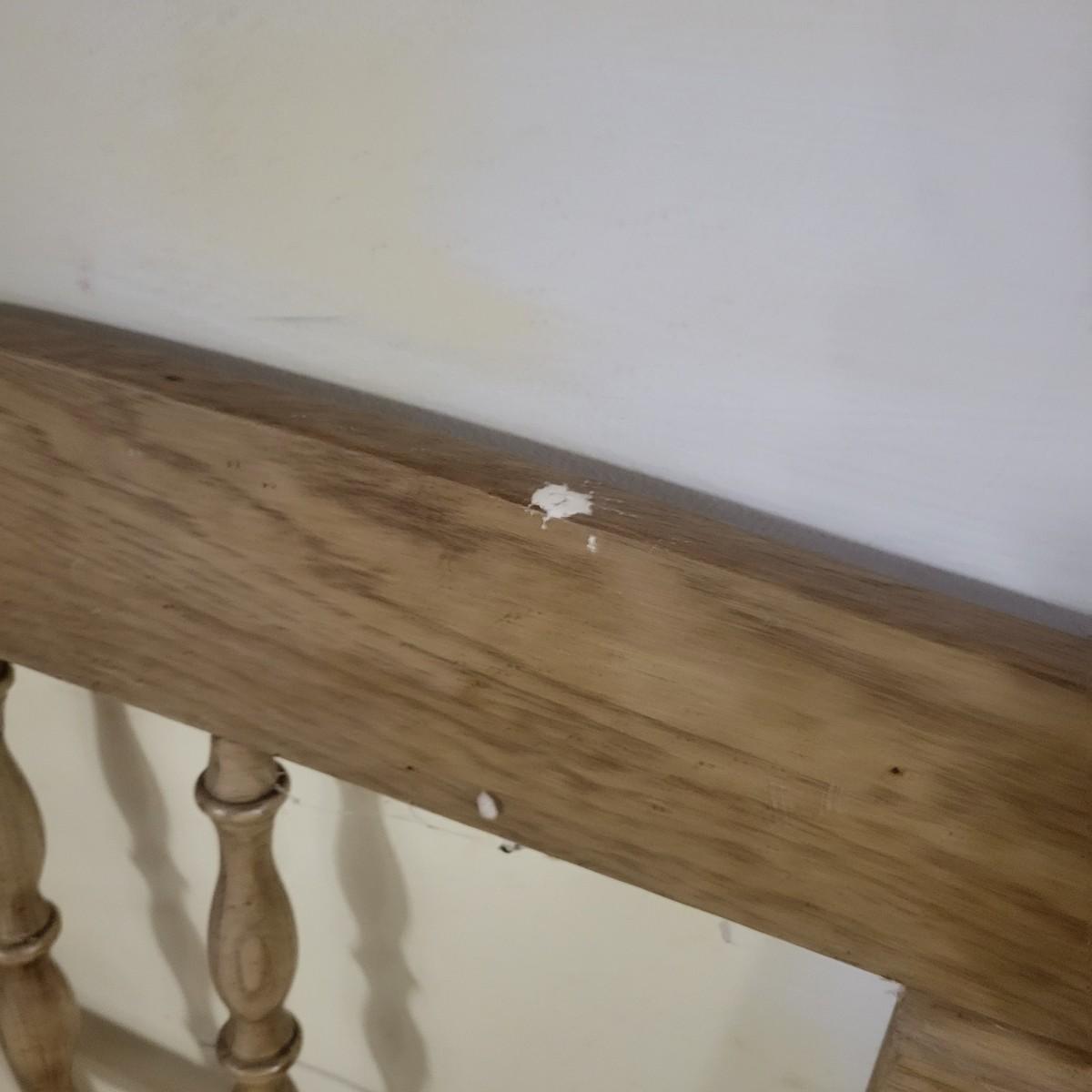 Lot includes a wooden head and footboard with slots for side rails, side rails not included.