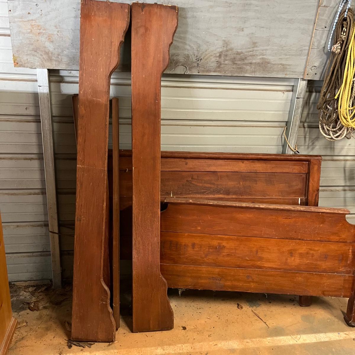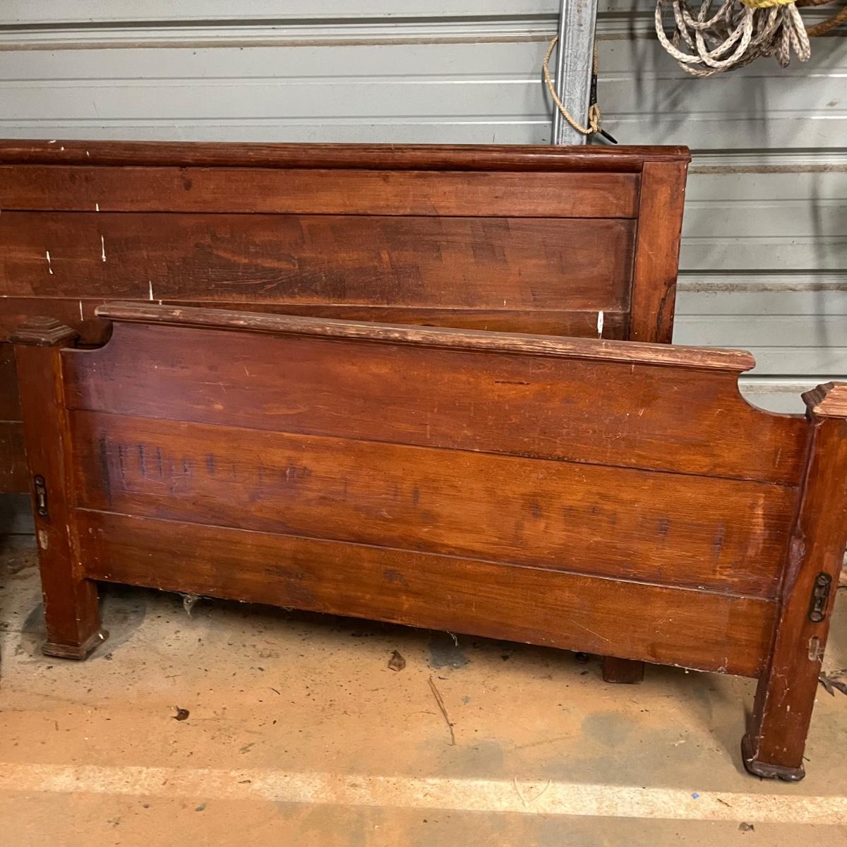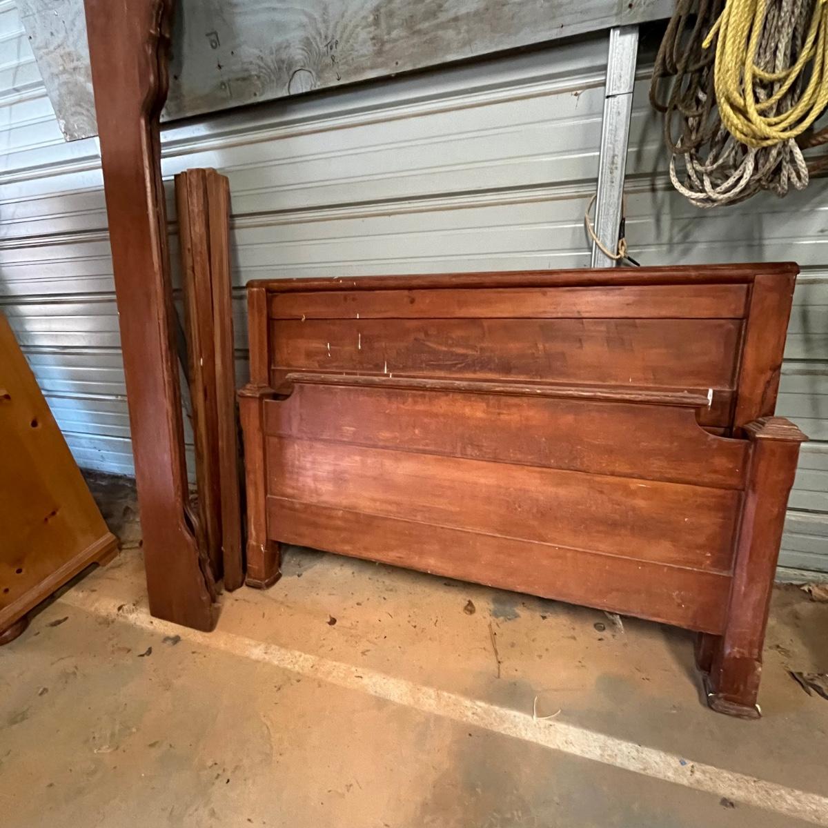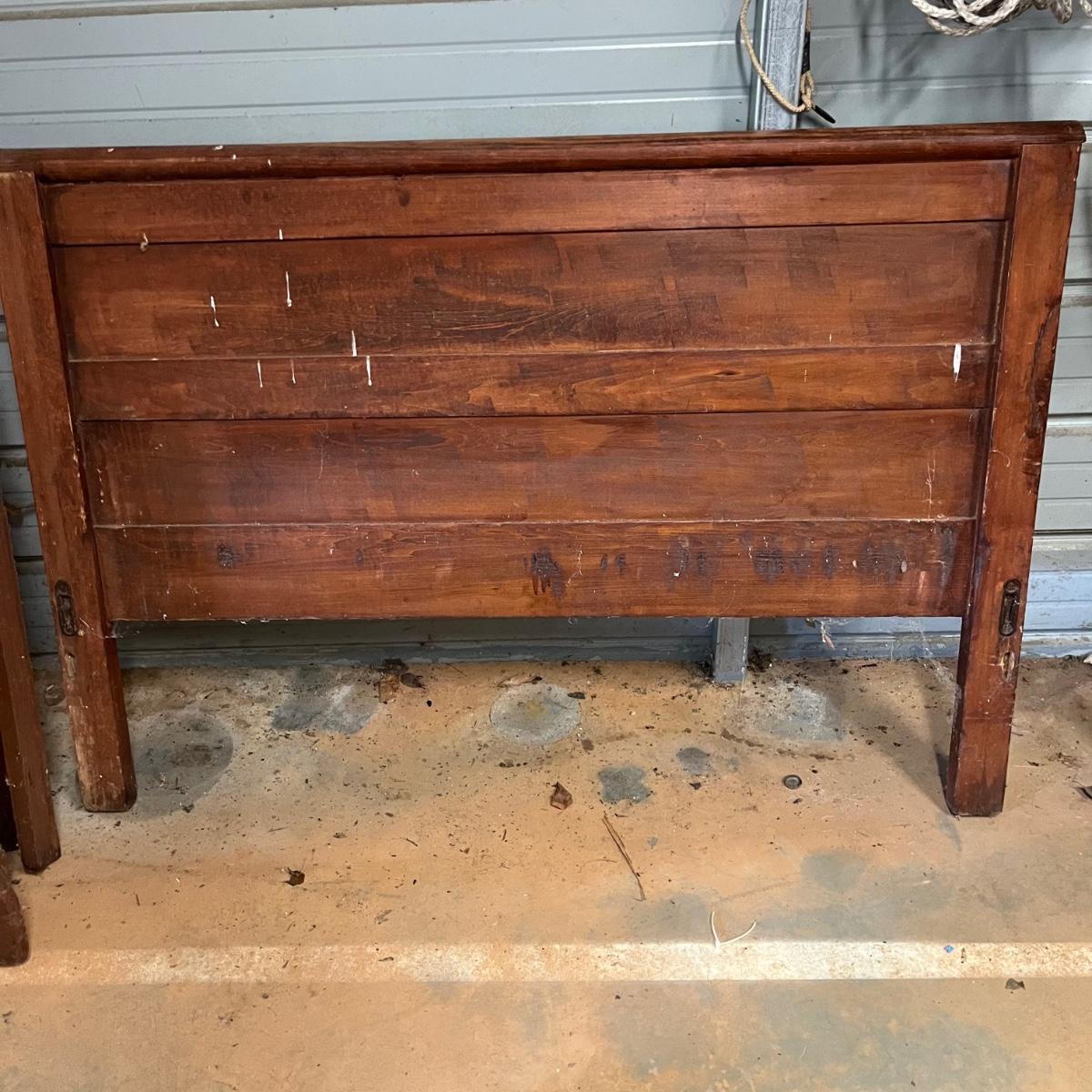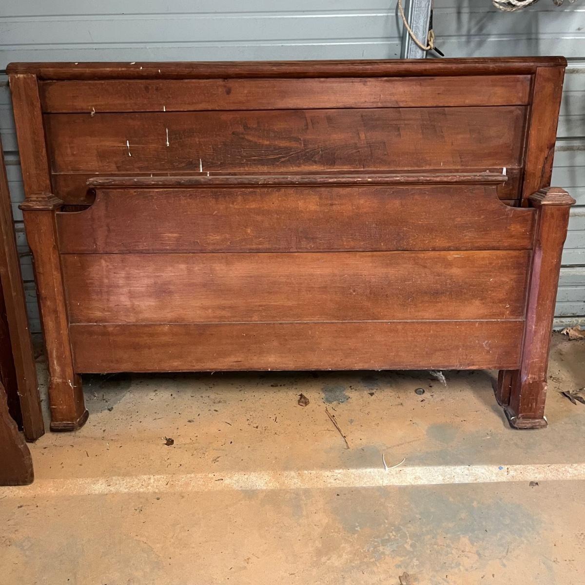 Lot includes a wooden headboard, footboard and rails. Headboard measures 58” x 40” and rails measures 72.5” long. It appears to be a full size by the measurements but we can not guarantee sizing.
