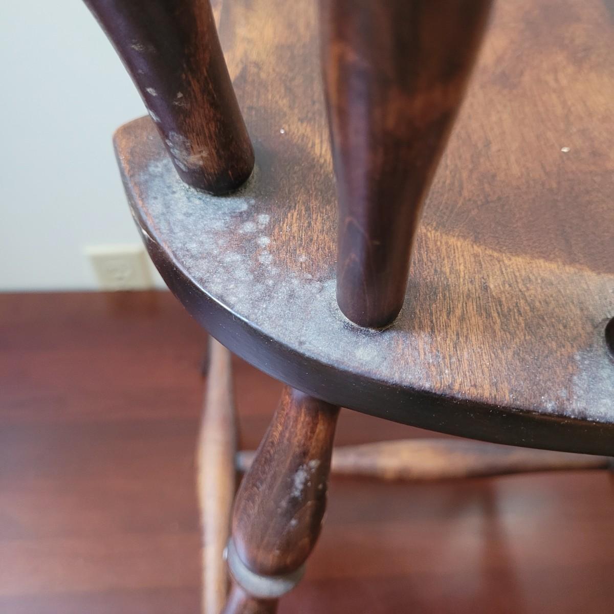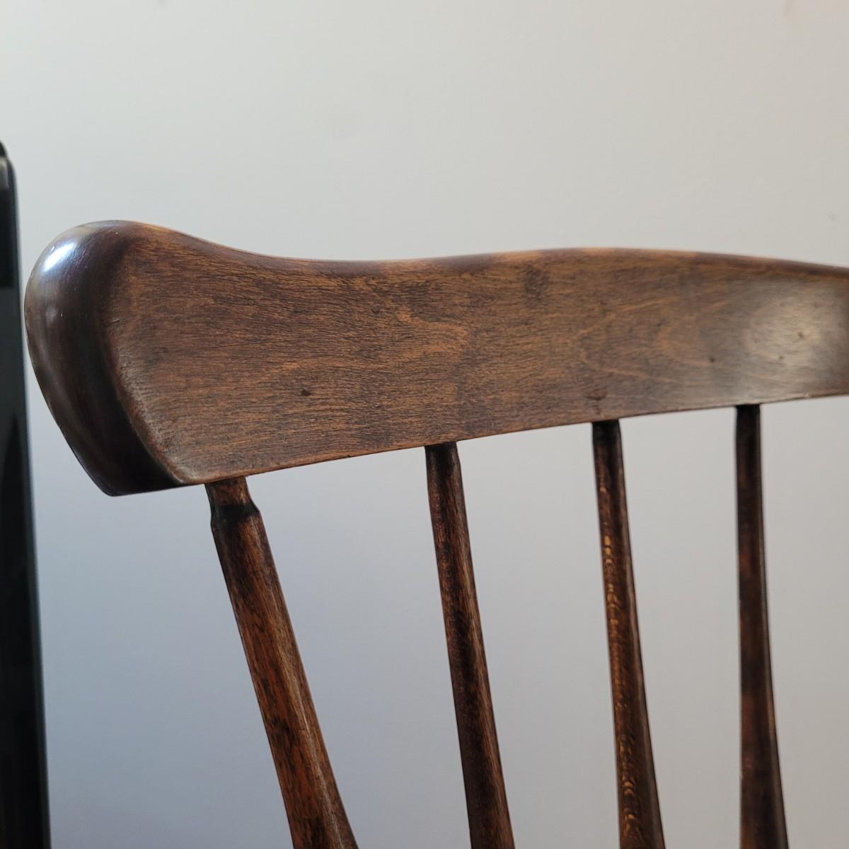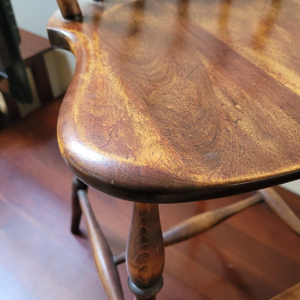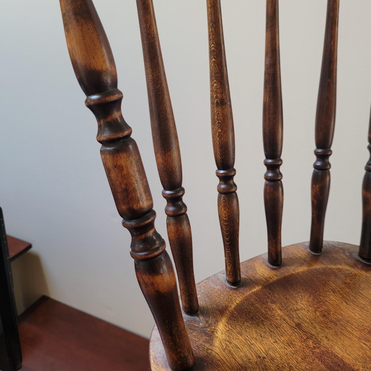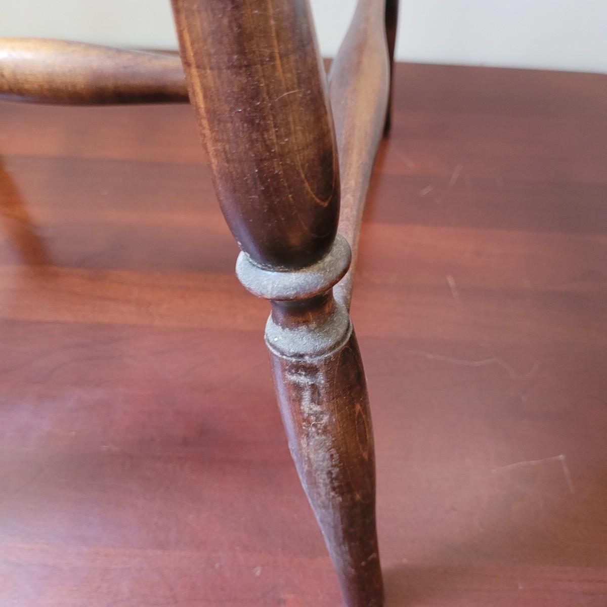 This vintage wooden high chair measures approximately 18" x 17.5" x 38"H, with a seat height of 21." Local pickup only.