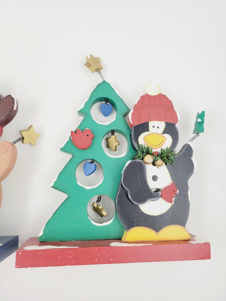 WOODEN HOLIDAY PENGUIN & REINDEER DECOR BUNDLE