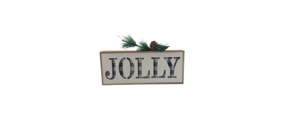 Decorative Christmas holiday “Jolly” and “Noel” wooden signs. Can be hung or placed on table! Each measures 9.5” x 4” x 1”.