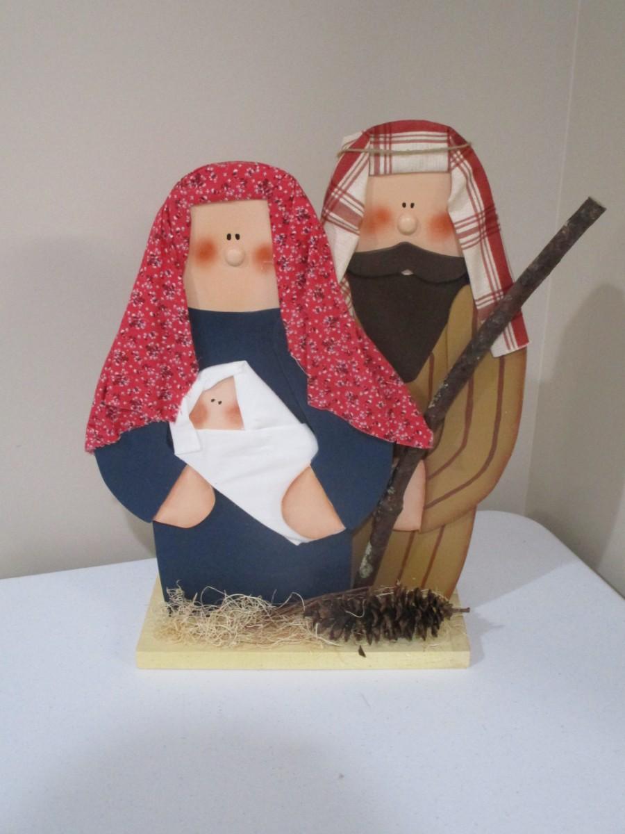 Wooden Holy Family Nativity Set Approx 18" Tall (TR)