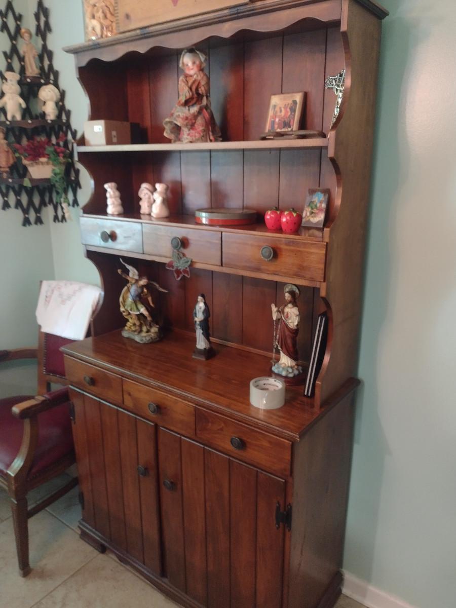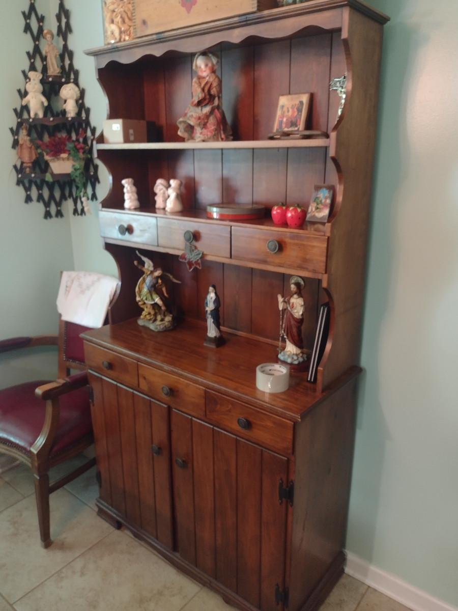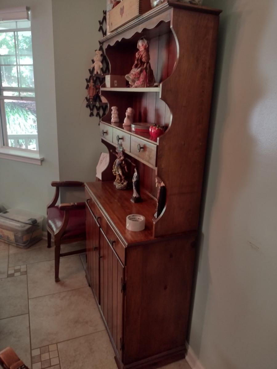 Wooden Hutch with Six Drawers and Storage Cabinet (No Contents)