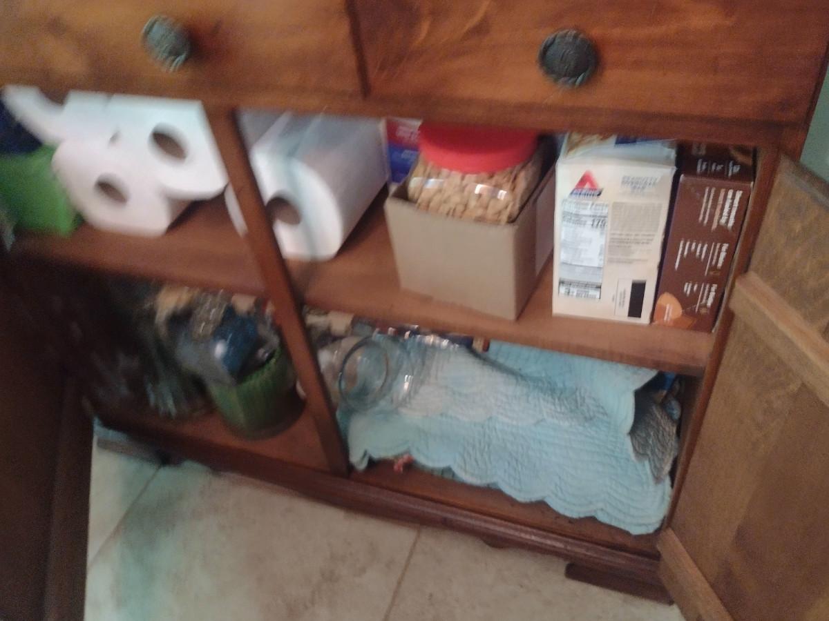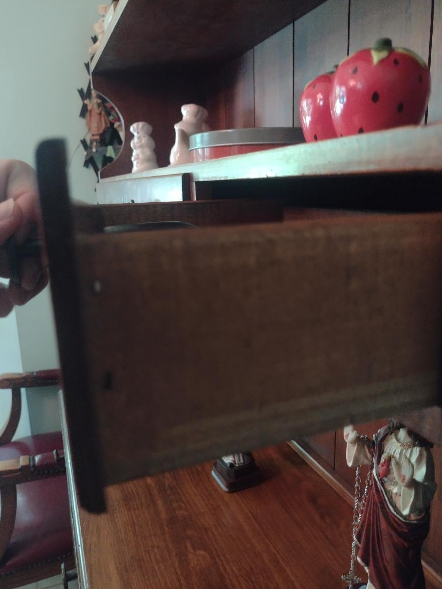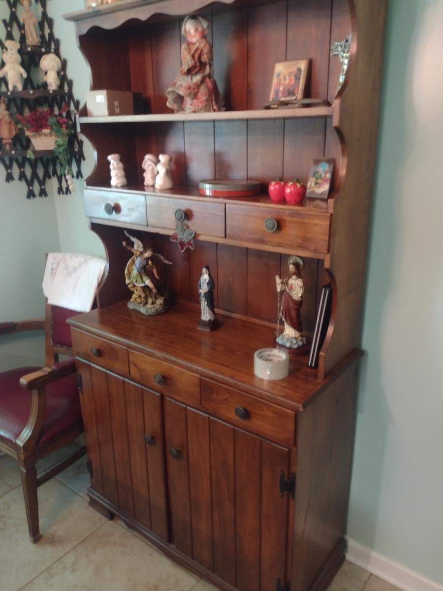 Wooden Hutch with Six Drawers and Storage Cabinet (No Contents)