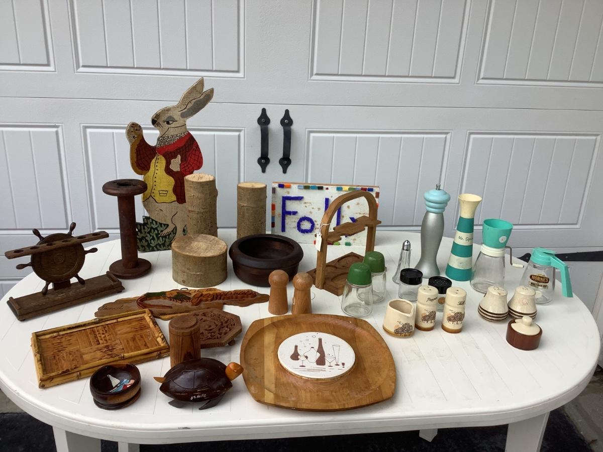 Wooden items, Federal Housewares, Cheese board, Salt & Pepper Shakers-glass and ceramic