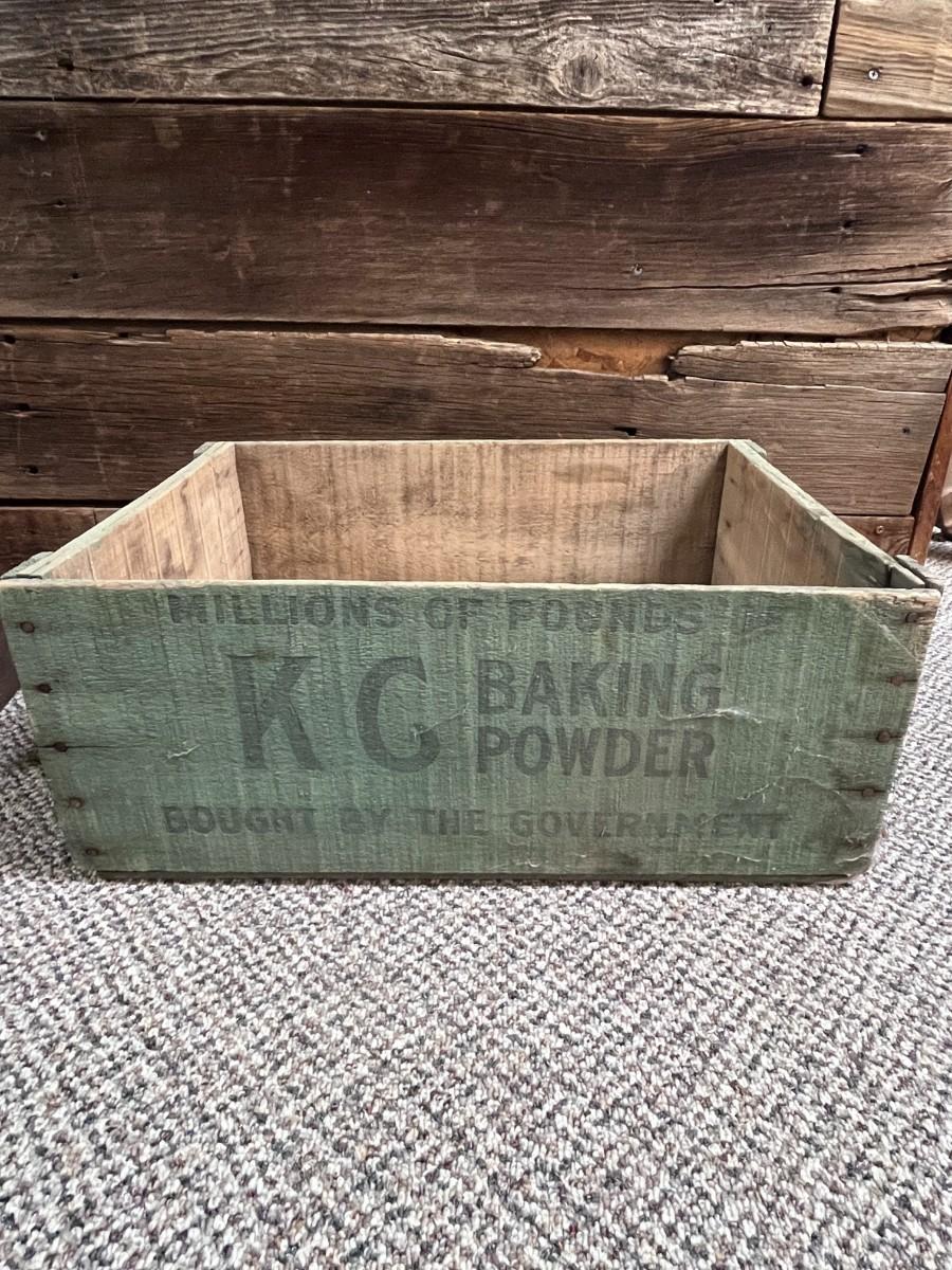 WOODEN KC BAKING POWDER CRATE "MILLIONS OF POUNDS BOUGHT BY THE GOVERNMENT"