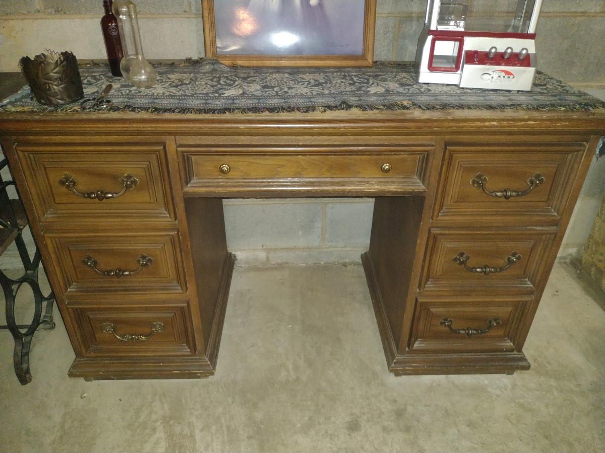 Wooden Knee Hole Desk- Approx 52" x 22" x 30 1/2". Item has heavy wear to finish- see all pictures.