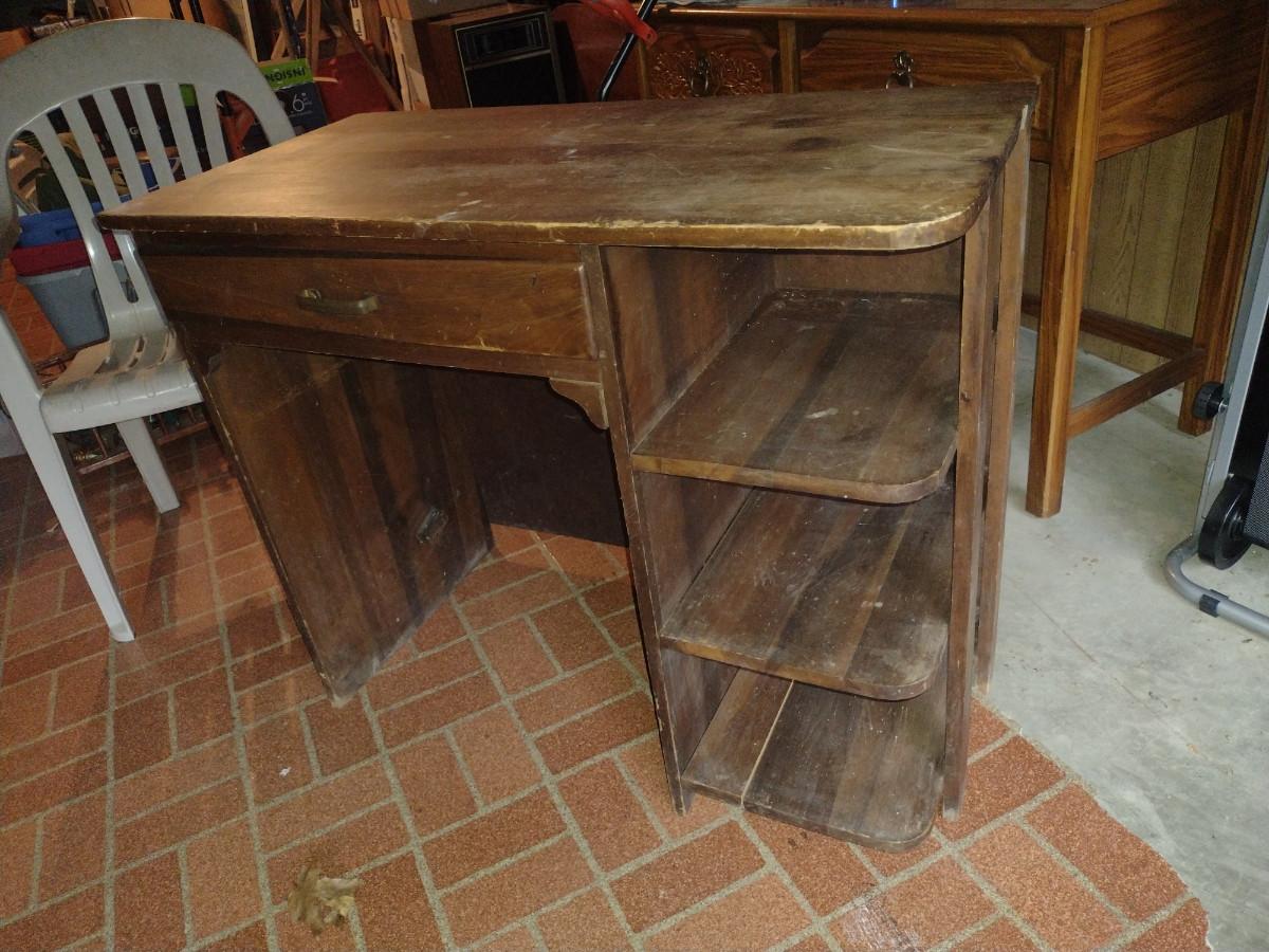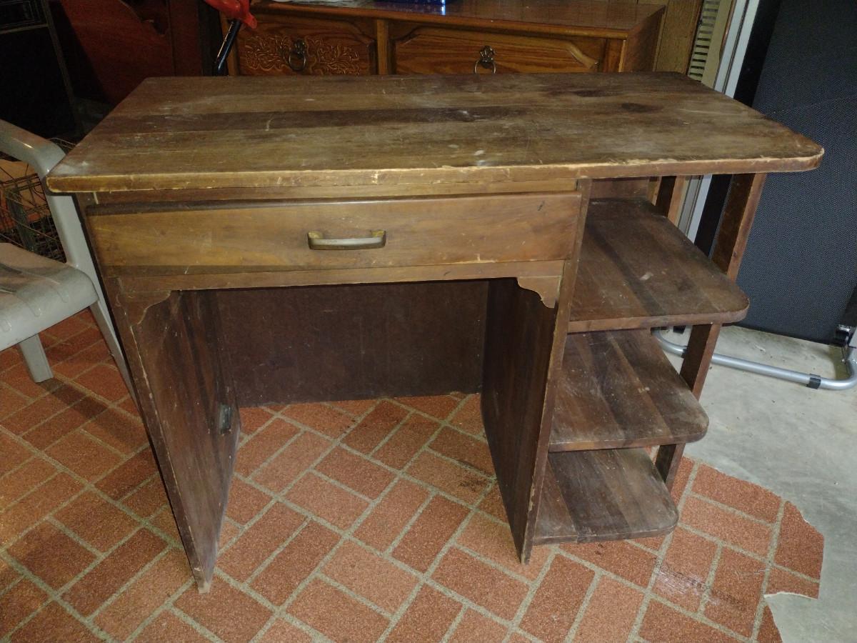 Wooden Knee Hole Desk with Side Shelves- Approx 35 1/2" x 18" x 30"