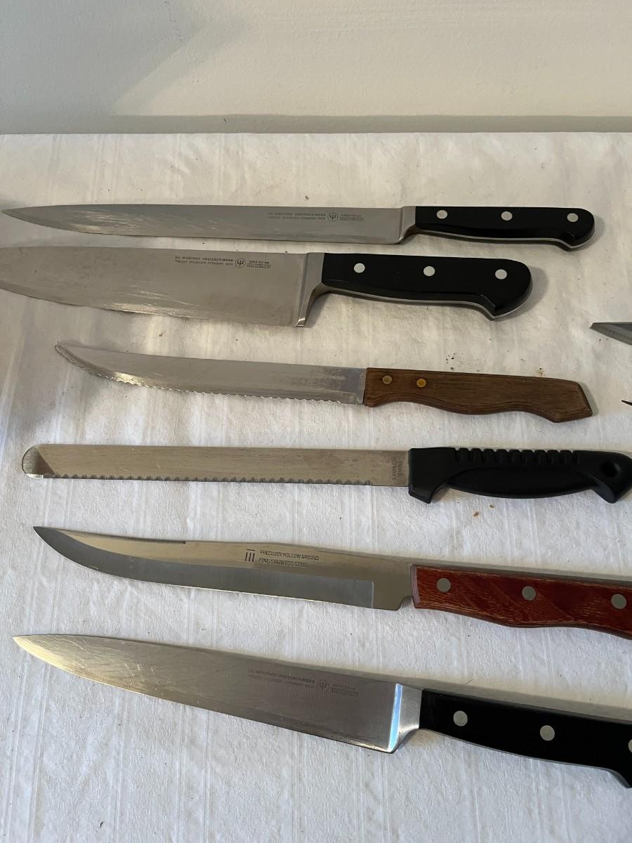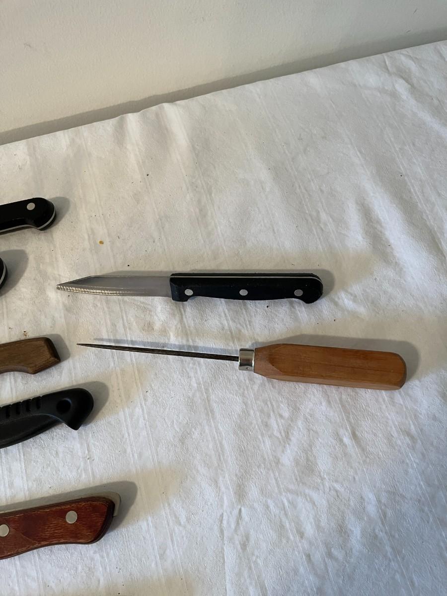 Wooden Knife Block, Seven Knives and an Ice Pick (K)