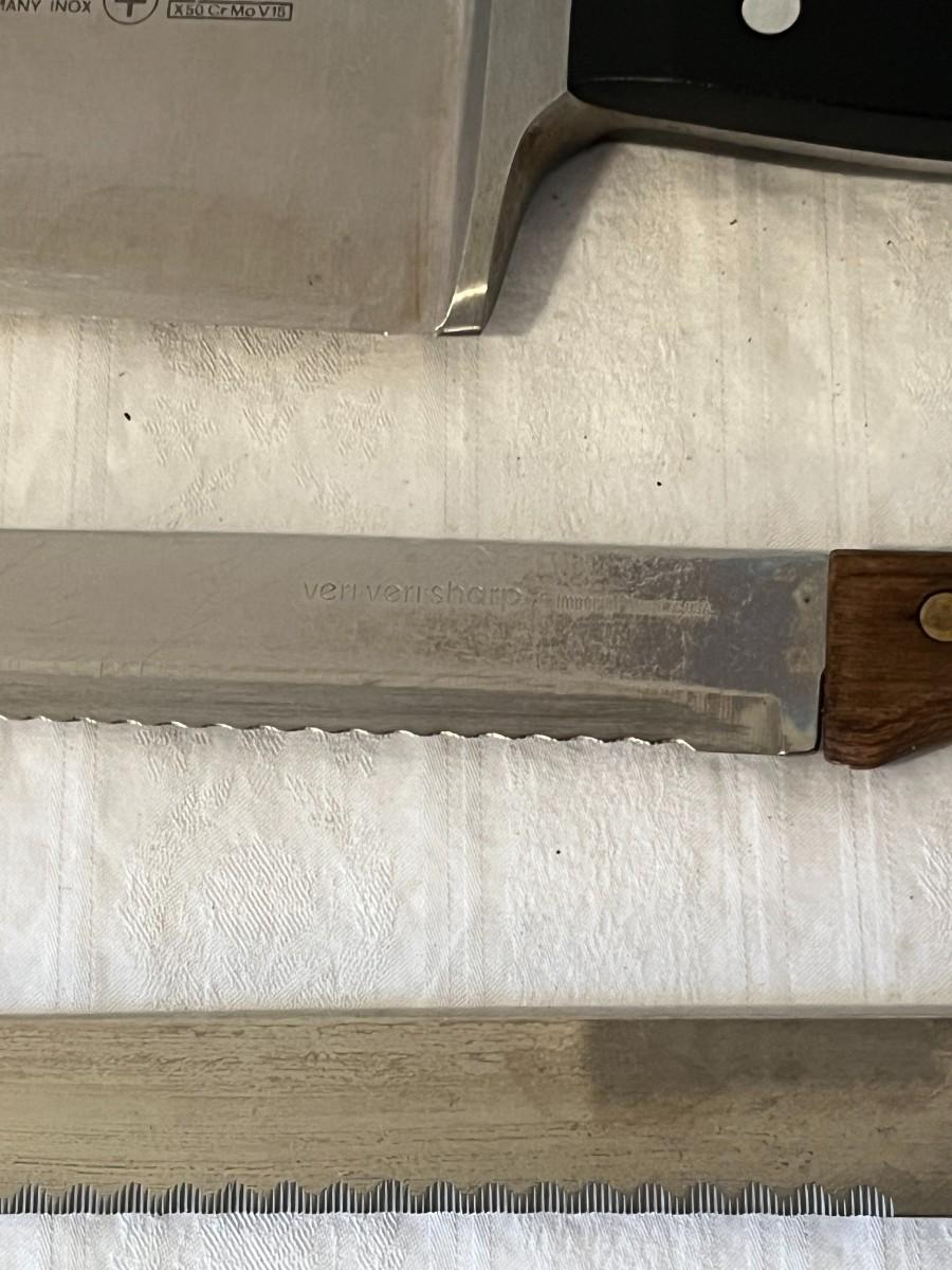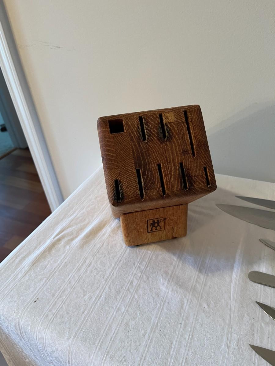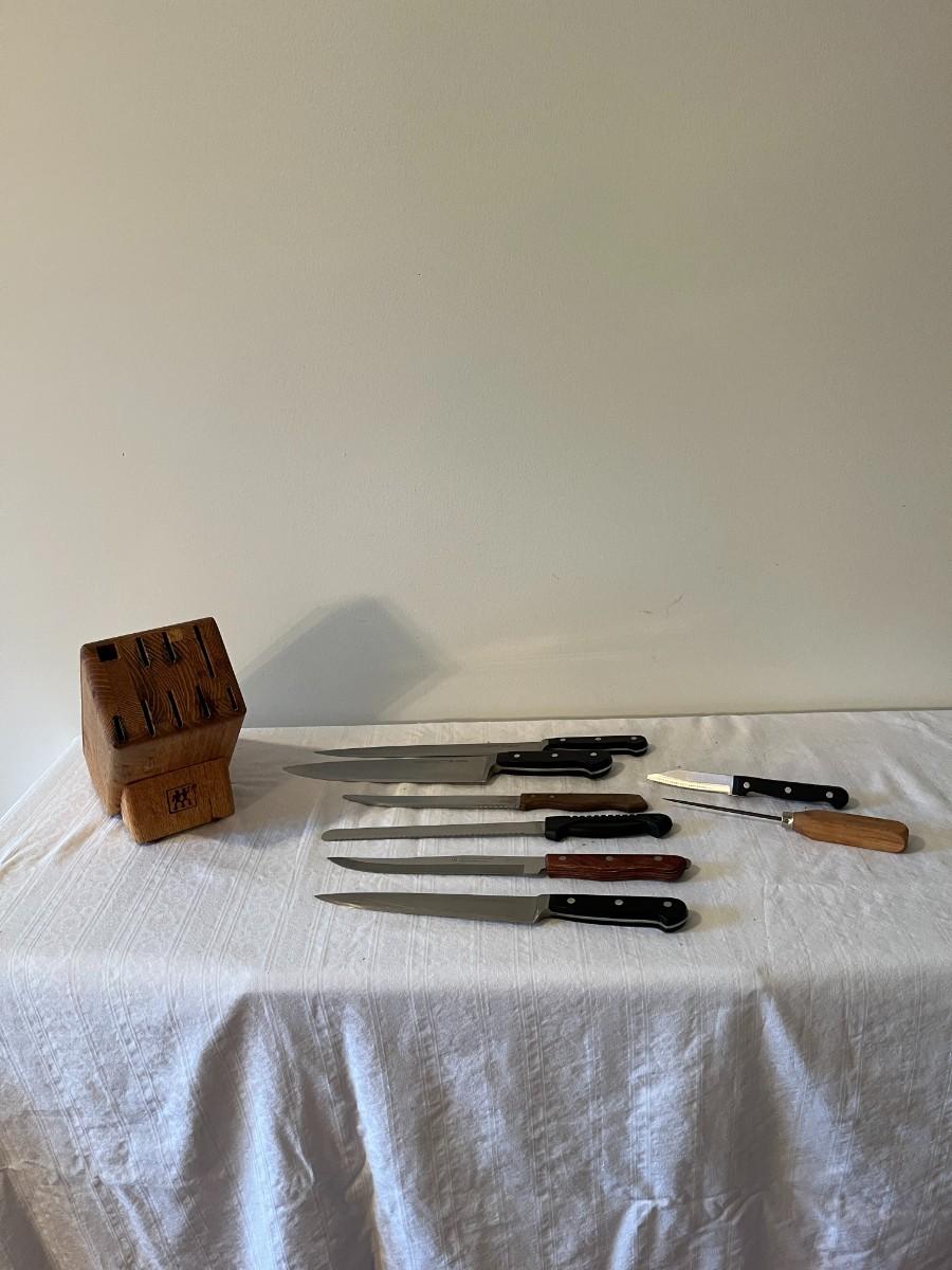 Wooden Knife Block, Seven Knives and an Ice Pick