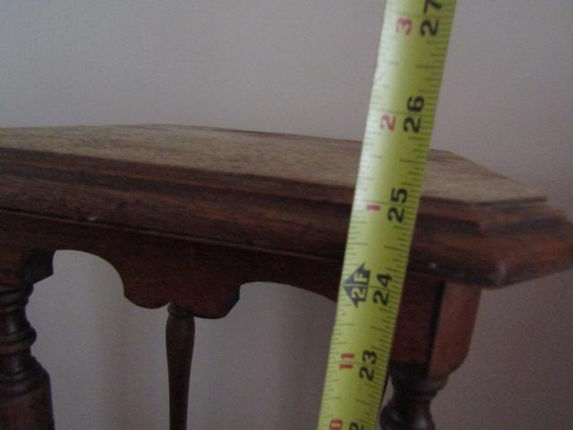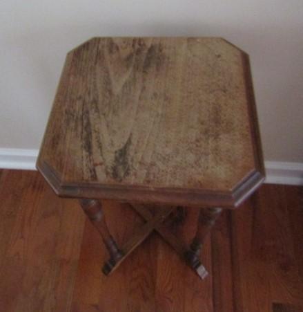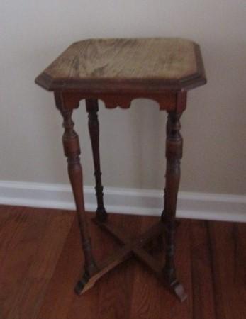 Wooden Lamp/ Plant Table 13" Square, 25" High. Top has wear and missing finish.
