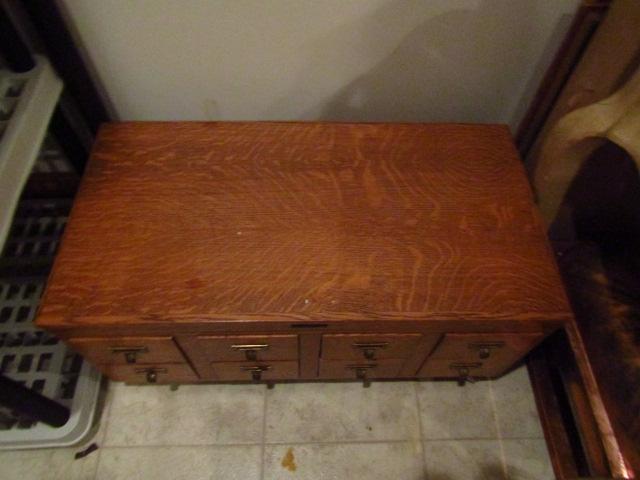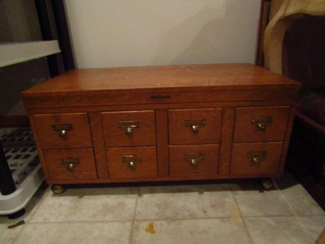 Wooden Library Card Catalog Cabinet on Casters- Approx 33" x 17" x 15 3/4" H (Downstairs)