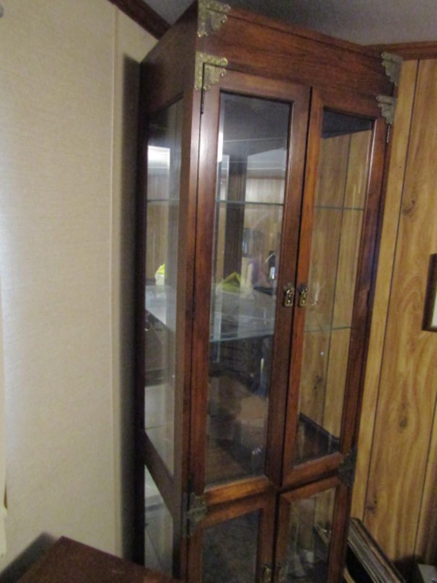 Wooden Lighted Curio Cabinet with Glass Shelves- Approx 24" Wide, 18" Deep, 78" Tall