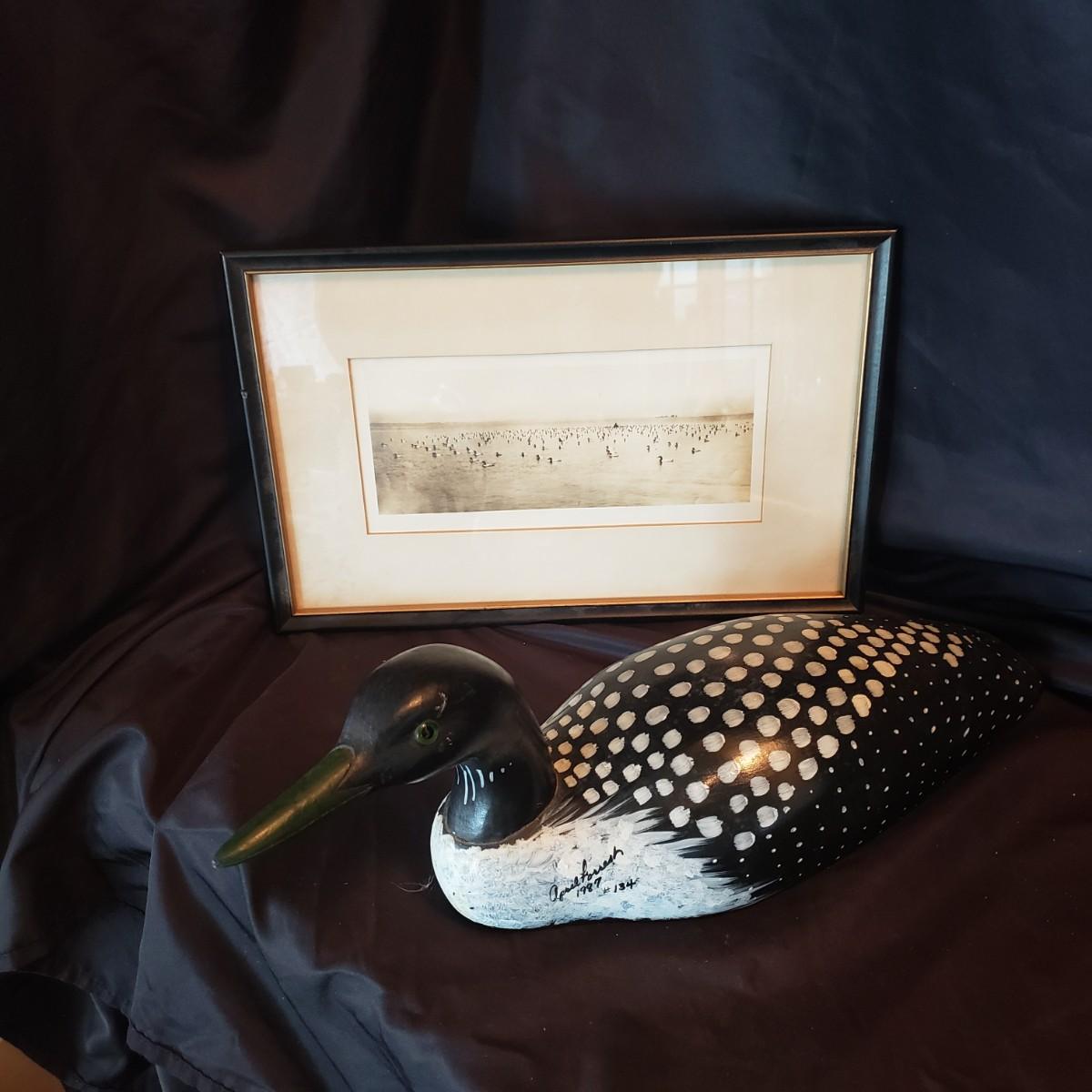 Decoy Books, a Wooden Loon by April F. and Vintage Duck on Water Framed Print (HC-KD)