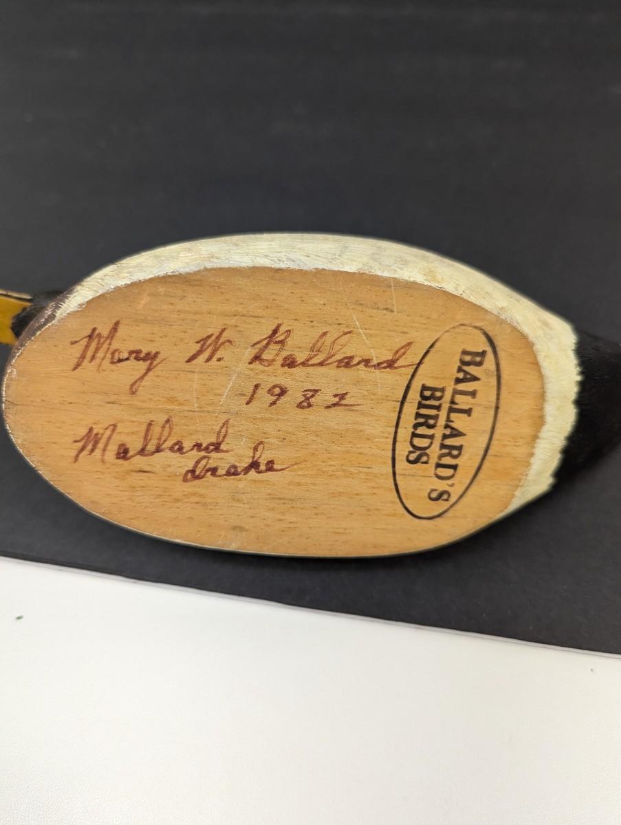 Wooden Mallard Drake Decoy Signed By Marry Ballard