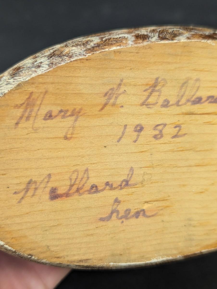 Wooden Mallard Hen Decoy Signed By Marry Ballard