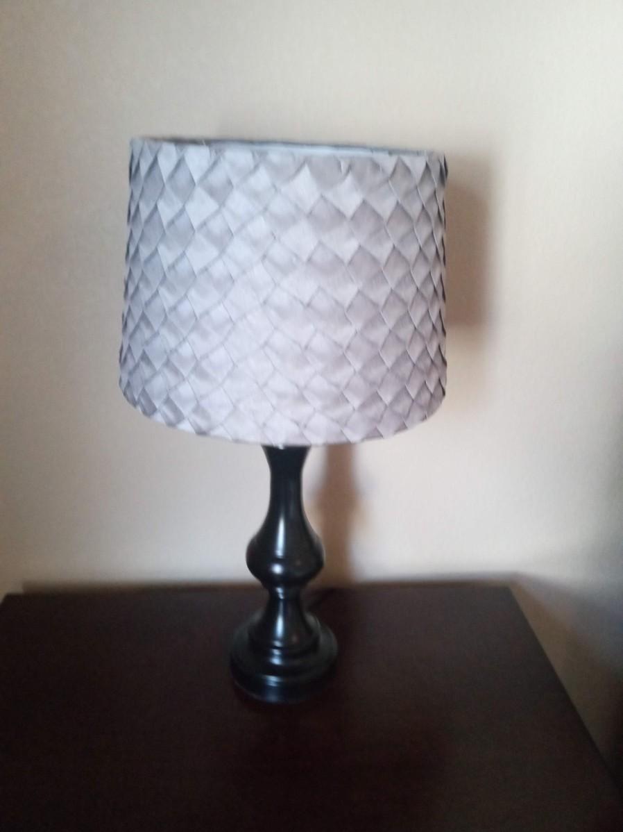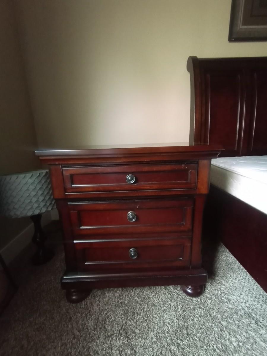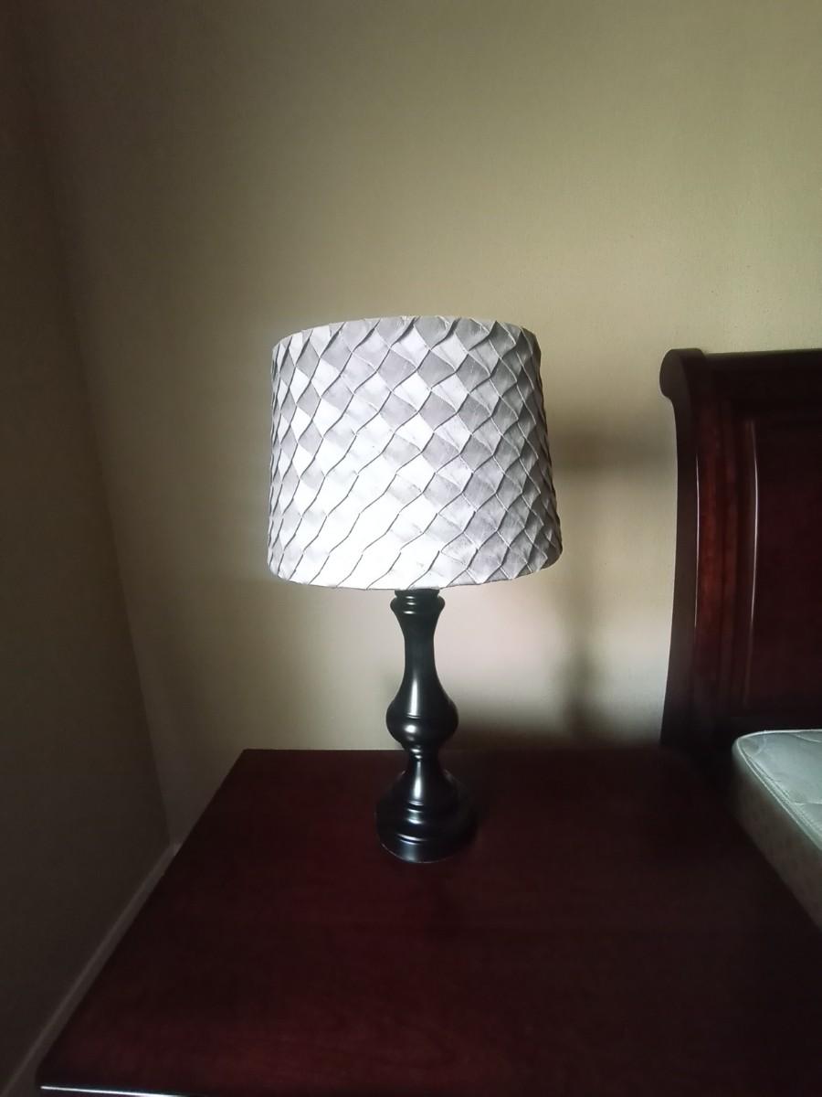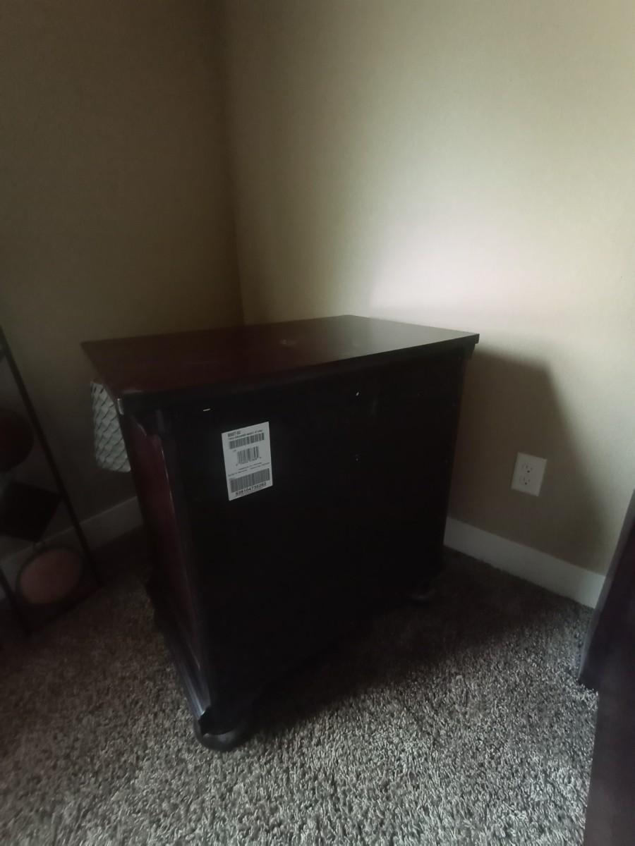 NIGHT STAND HAS A SMALLER DRAWER ON TOP AND A LARGE DRAWER THAT HAS A HIDDEN DRAWER INSIDE OF IT. THIS PIECE MATCHES LOTS 8 - 10 AND LOT 12 IT MEASURES 29X18X30 AND IS IN VERY GOOD CONDITION. THE TABLE LAMP IS APPROX. 24" TALL WITH SHADE