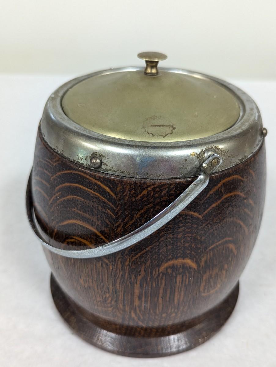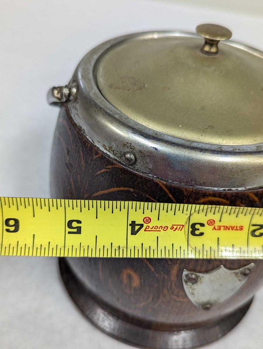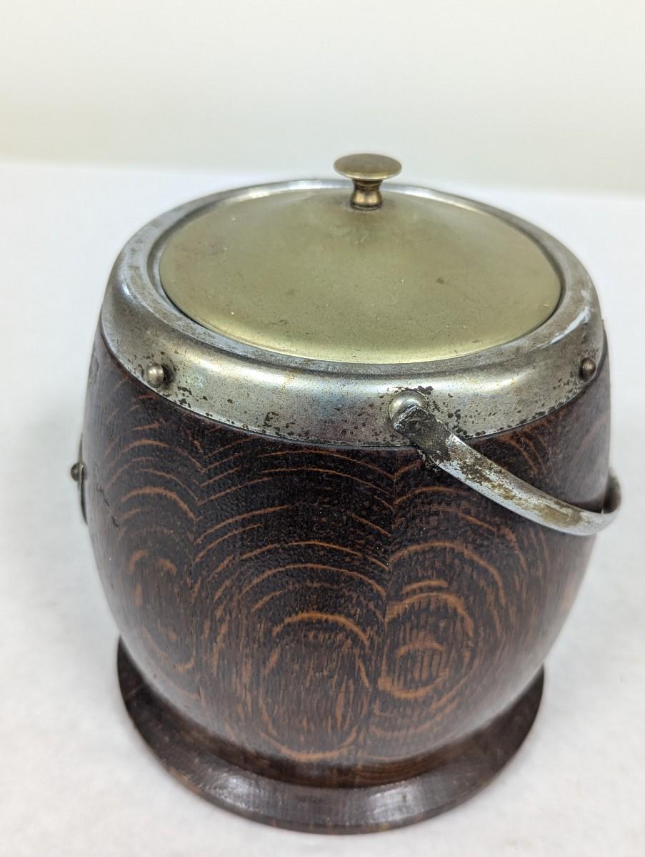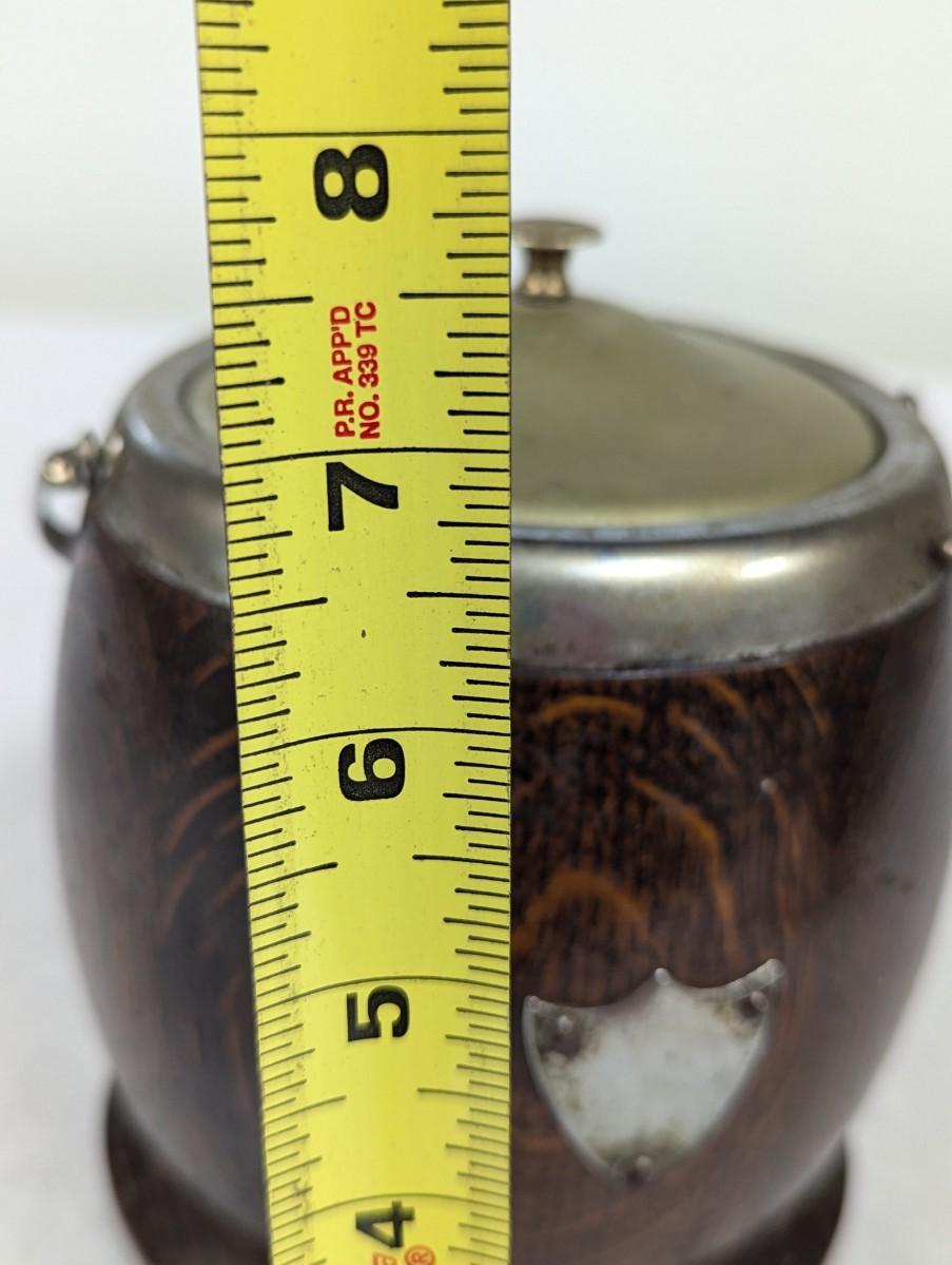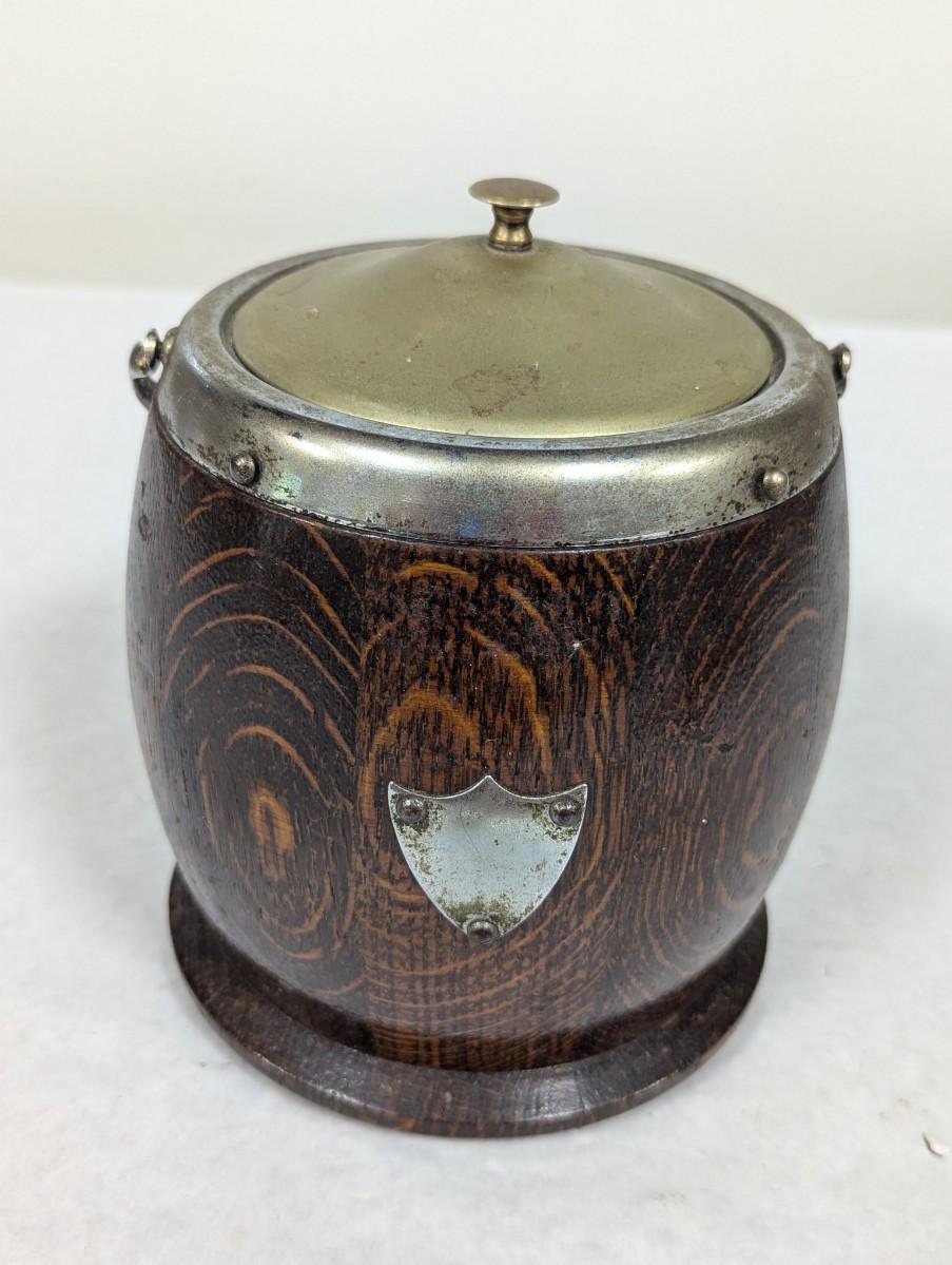 Wooden Oak Biscuit Barrel Silver Plated Porcelain Lining