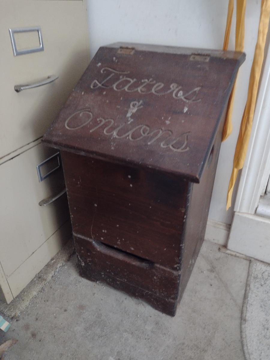 Wooden Onion and Potato Storage Box. Item needs cleaning.