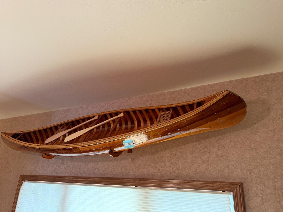 Really Ornate decorative 104”l Canoe/Oars on rack