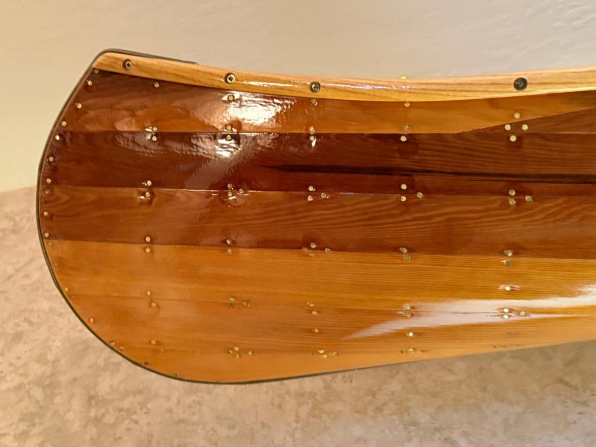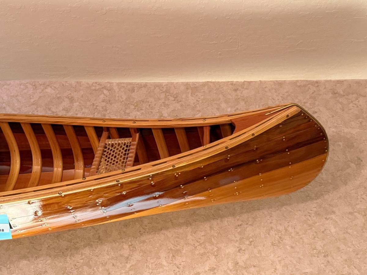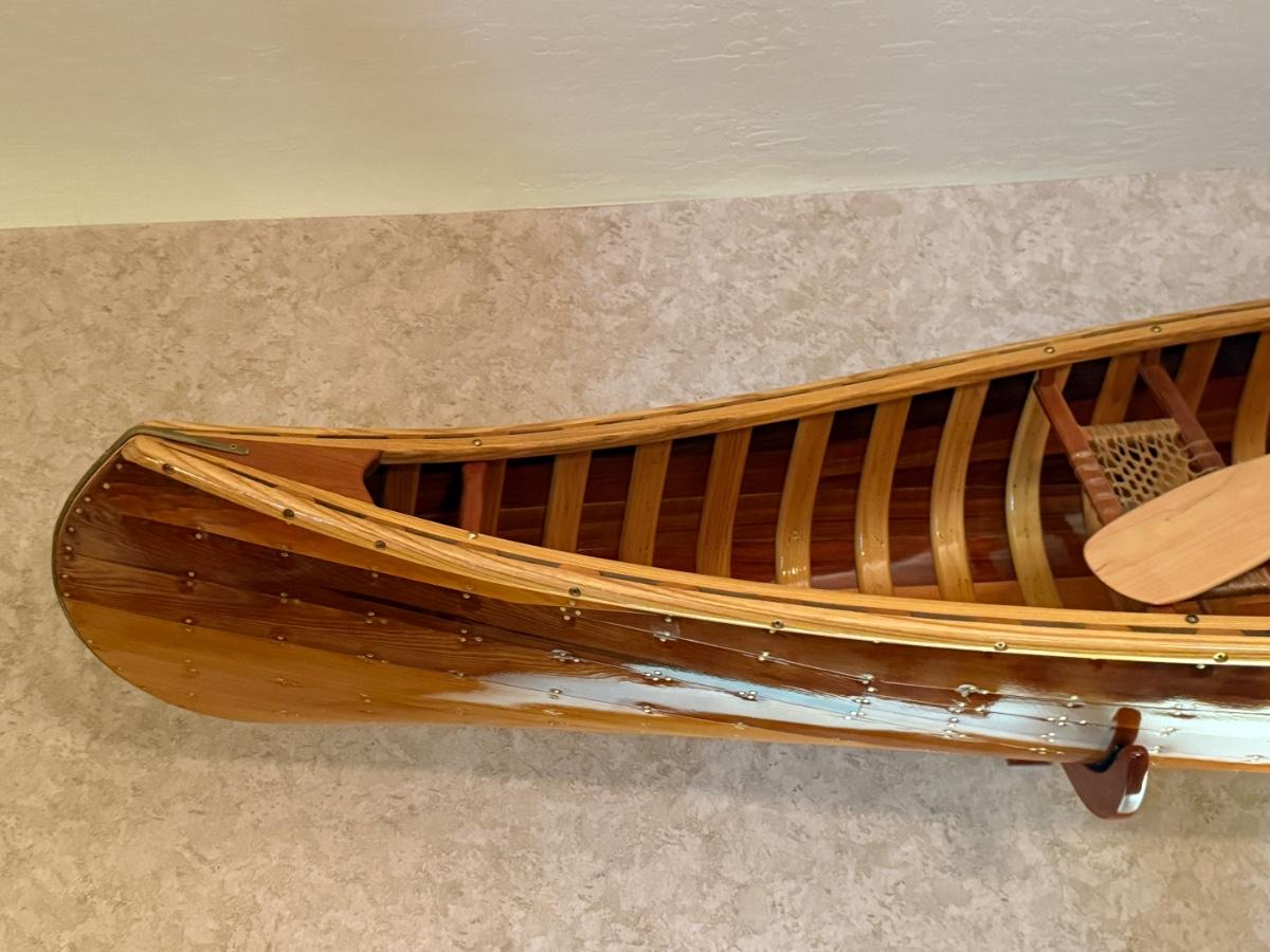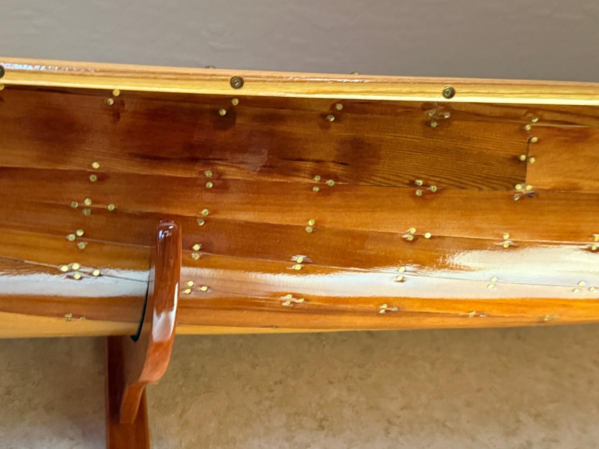Wood 8'6 Long Ornate Canoe w/brass accents & small Oars