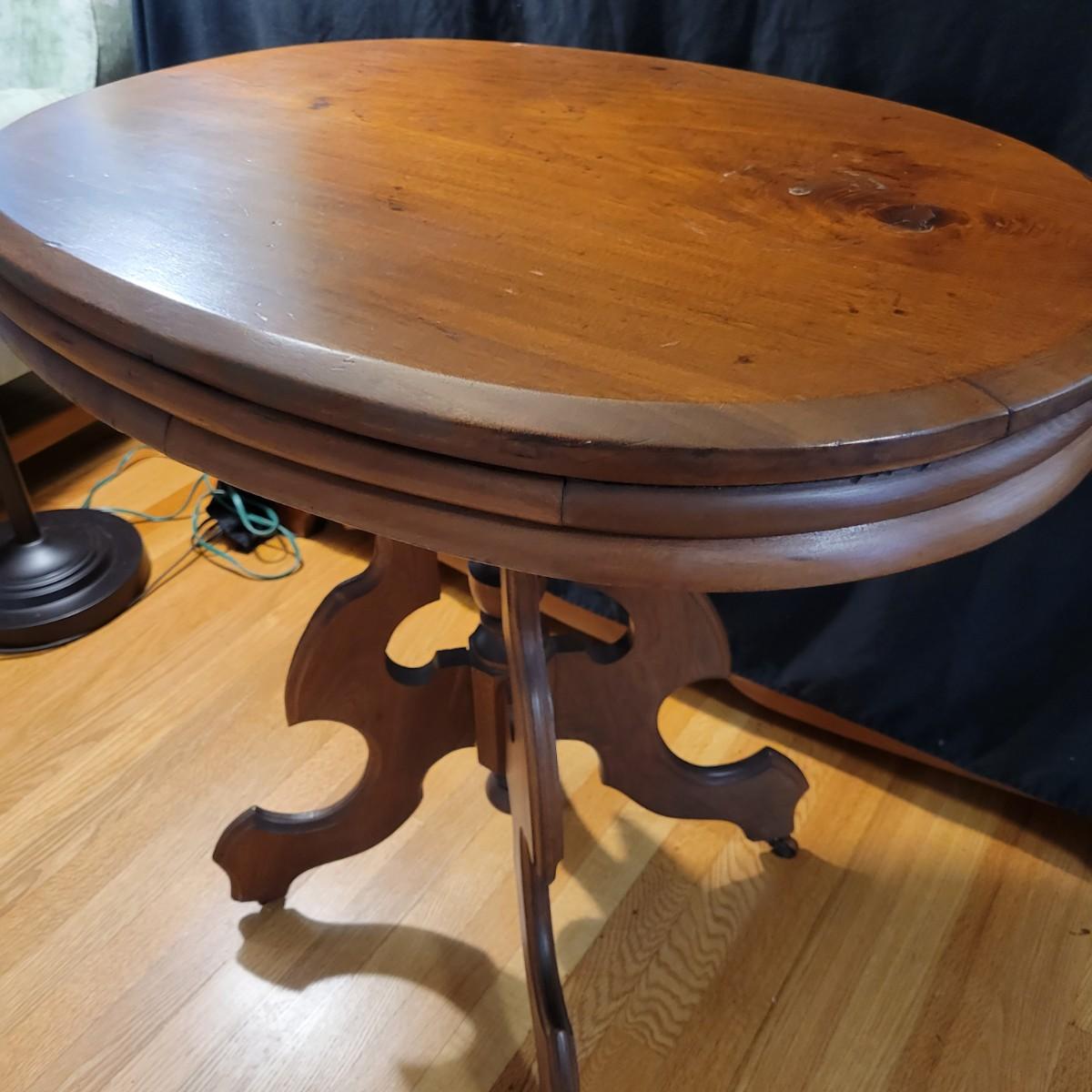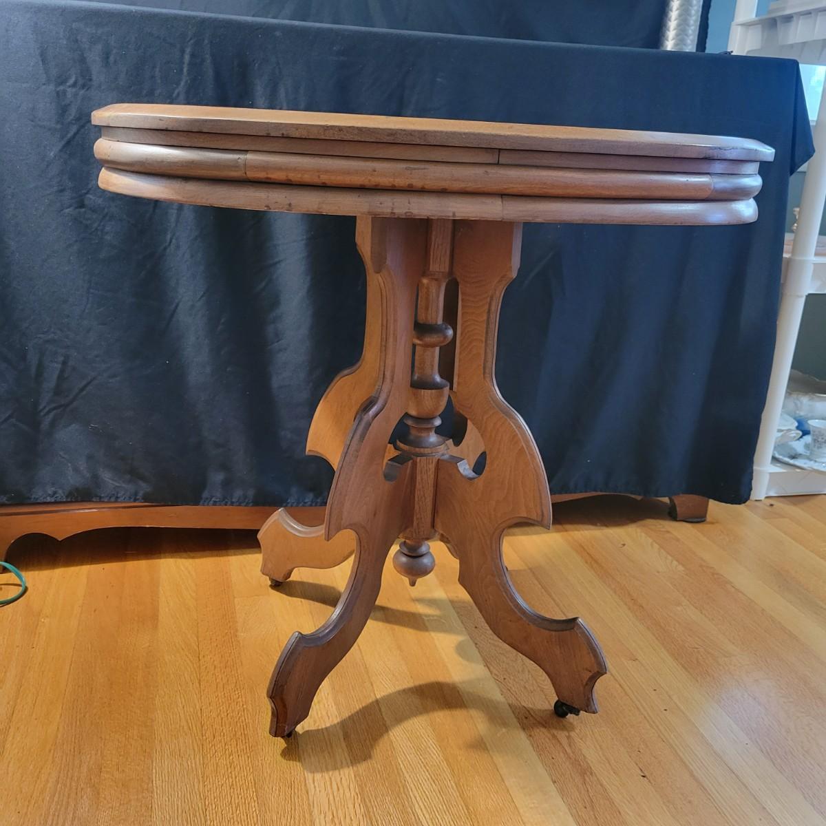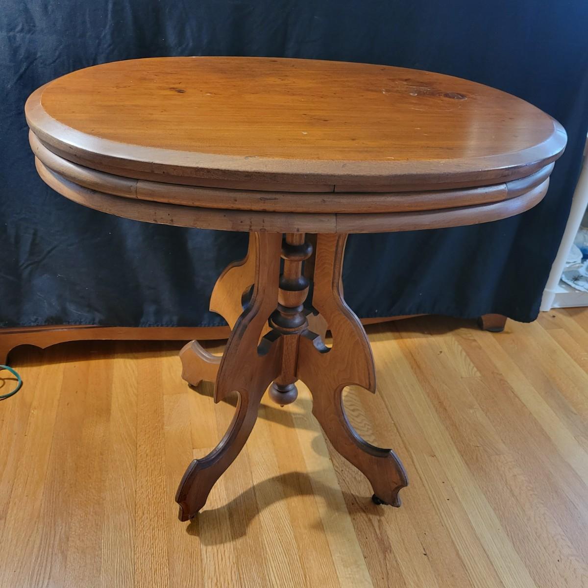 Victorian Wood Parlor Table with Casters (LR-DW