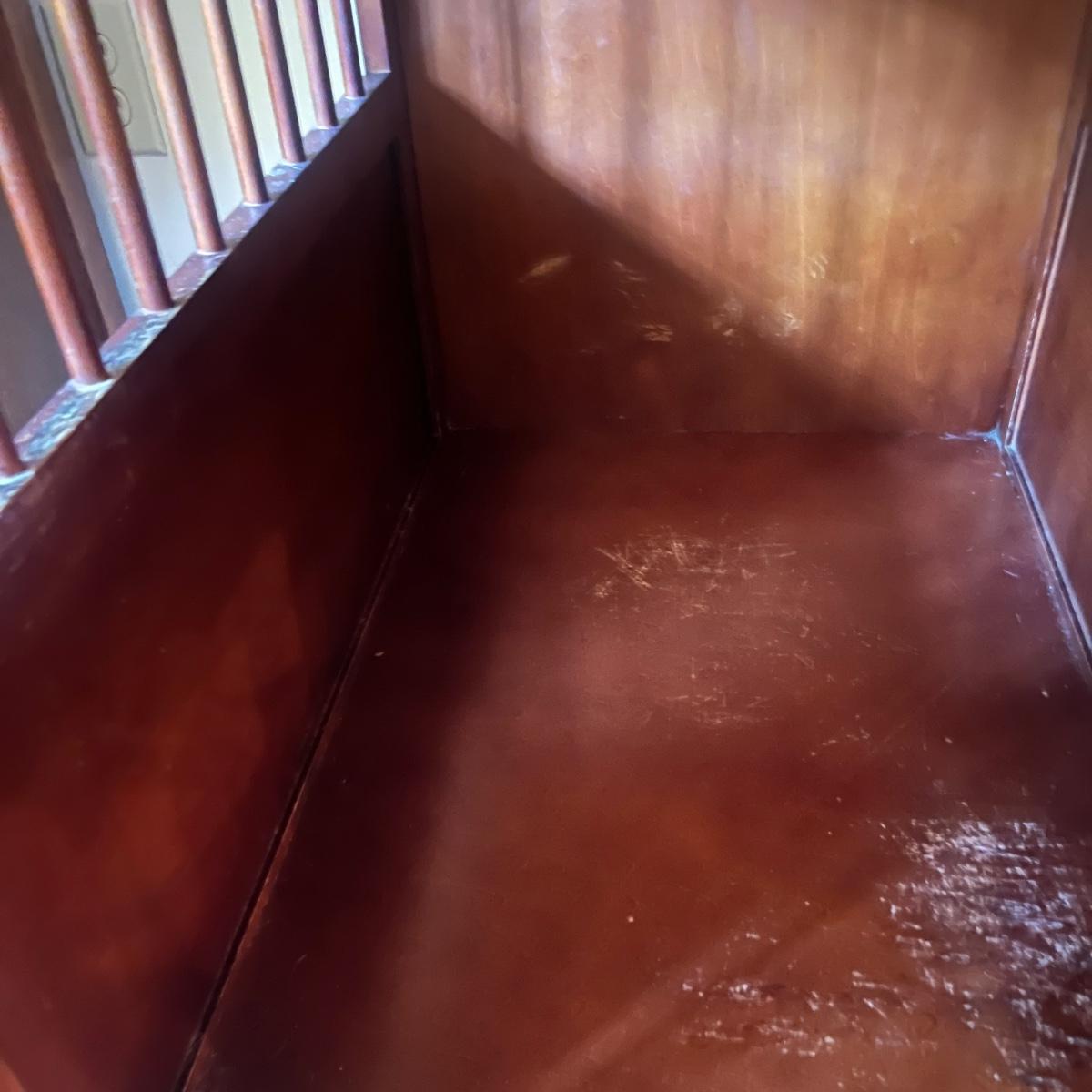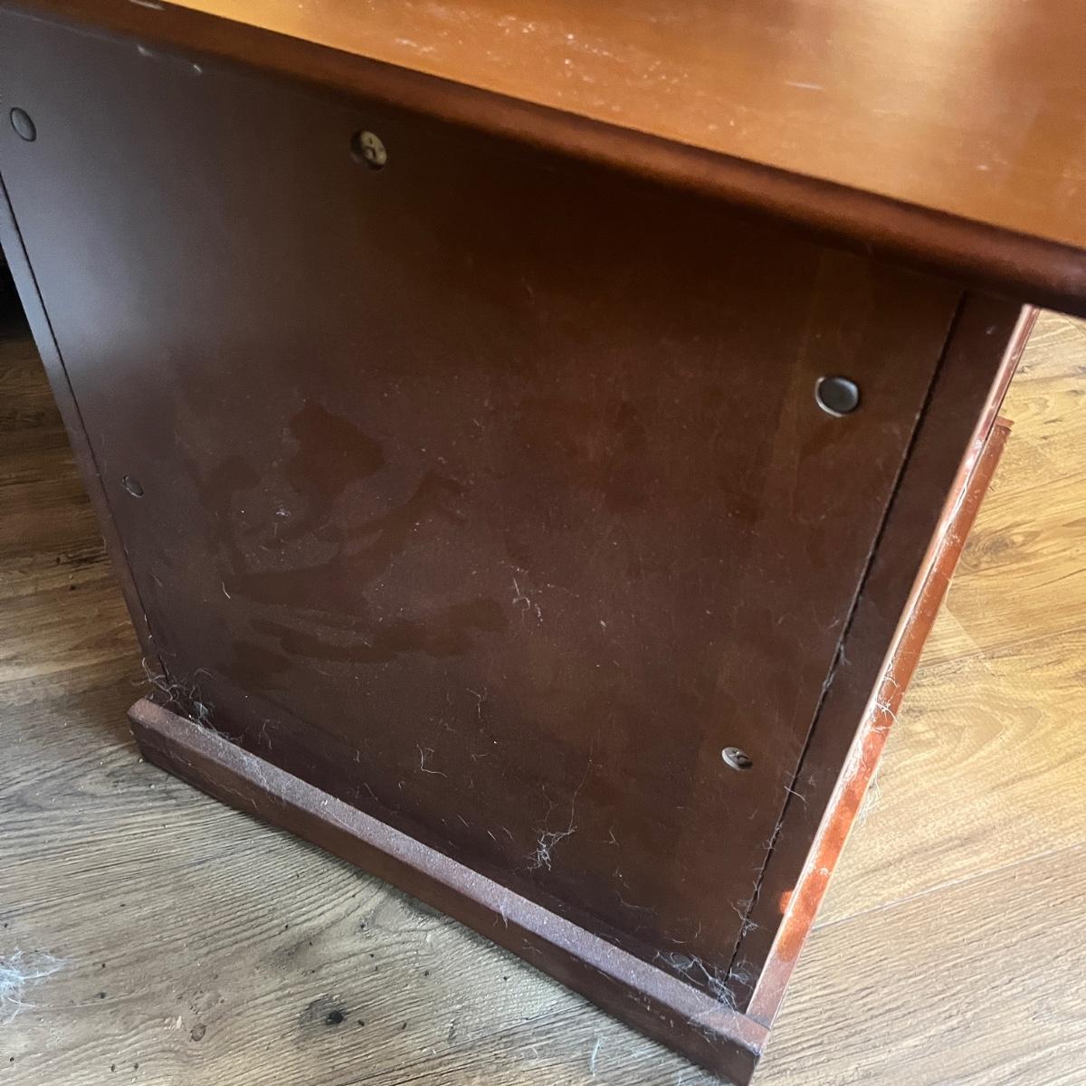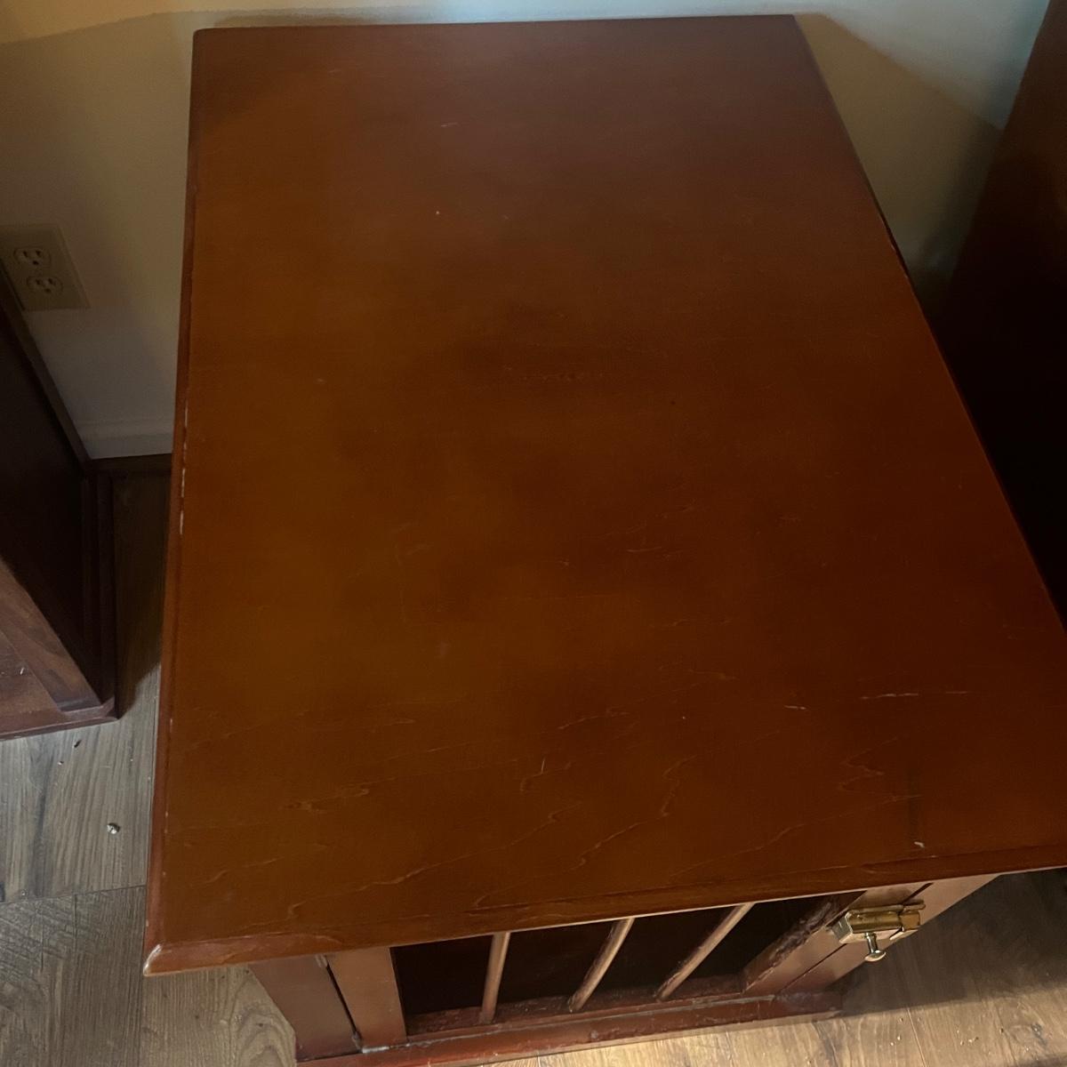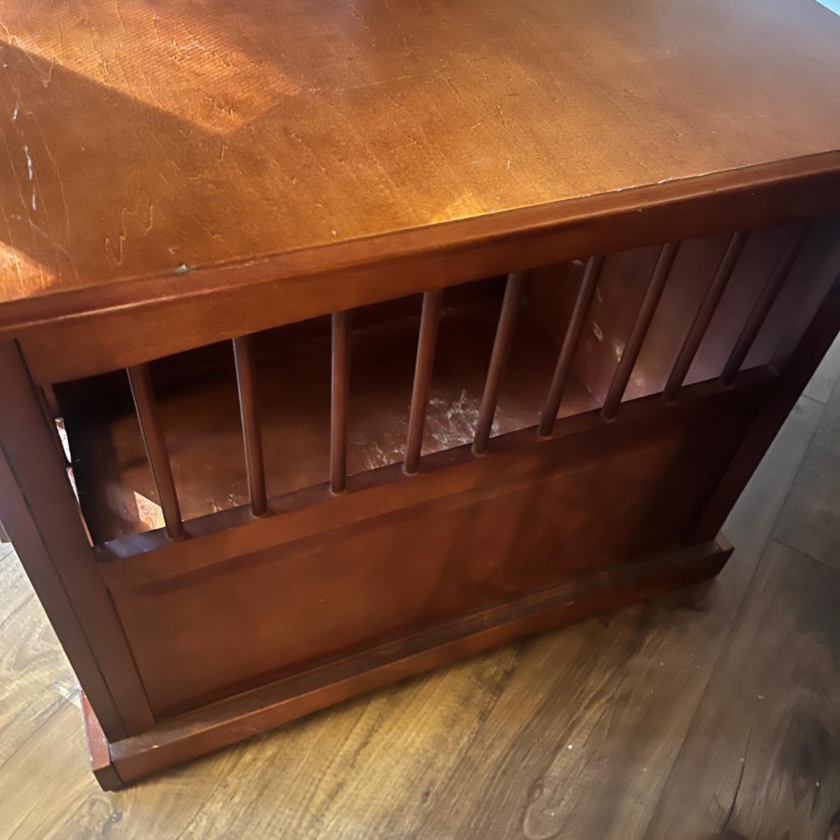 This wooden end table/pet cage that measures 21” x 30” x 24.5”H. has a few scratches and nicks with some pet hair inside. Brand name label reads "Improvements".