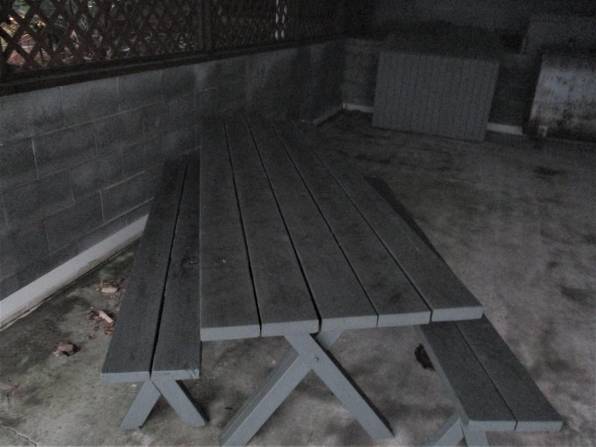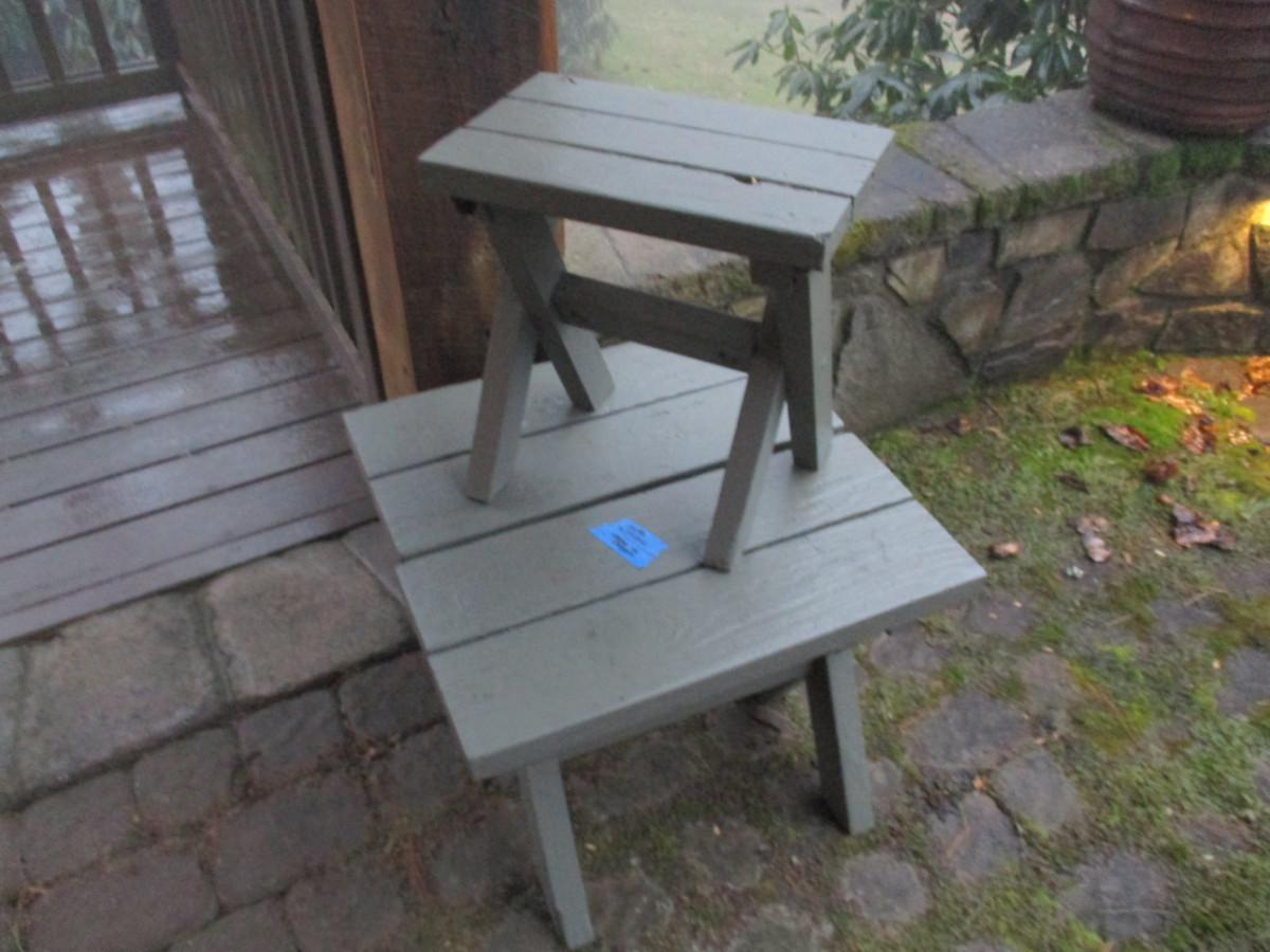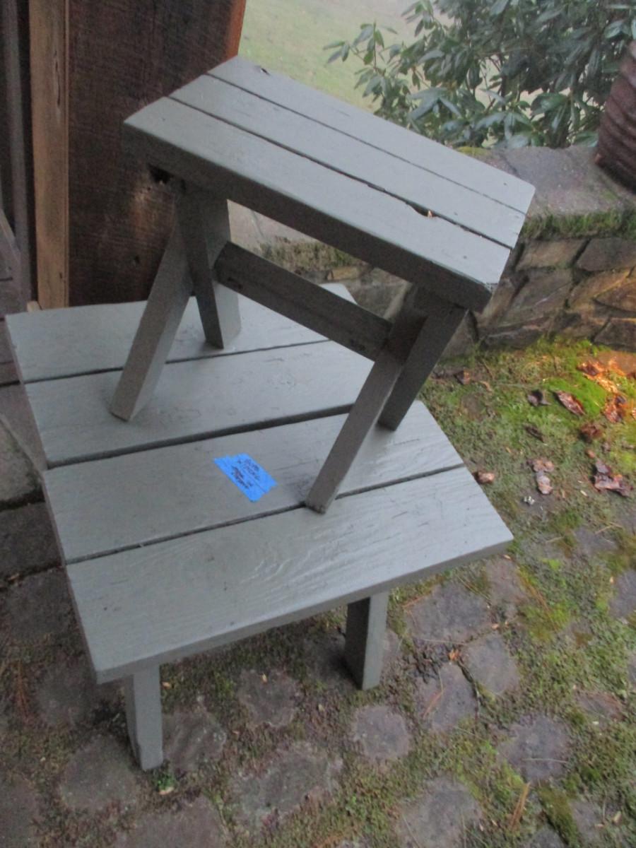 Wooden Picnic Table with Two Benches and Two Small Patio Tables