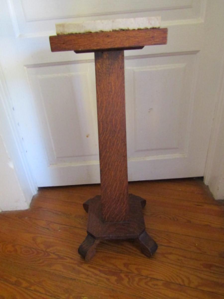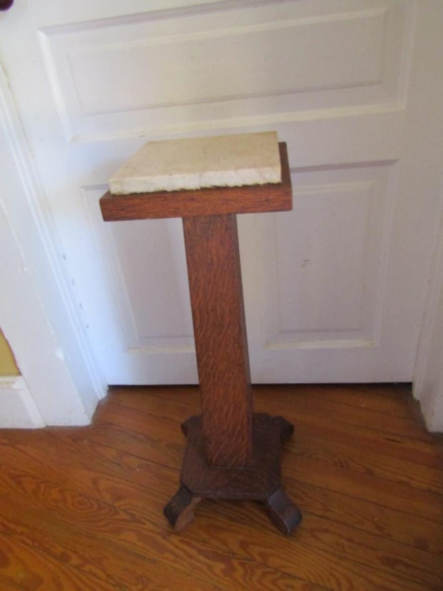 Wooden Plant Stand with Marble Top- 9 Inches Square