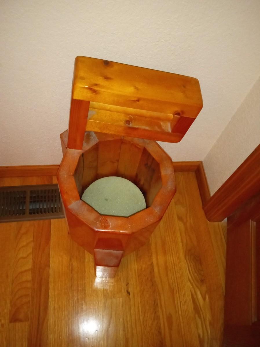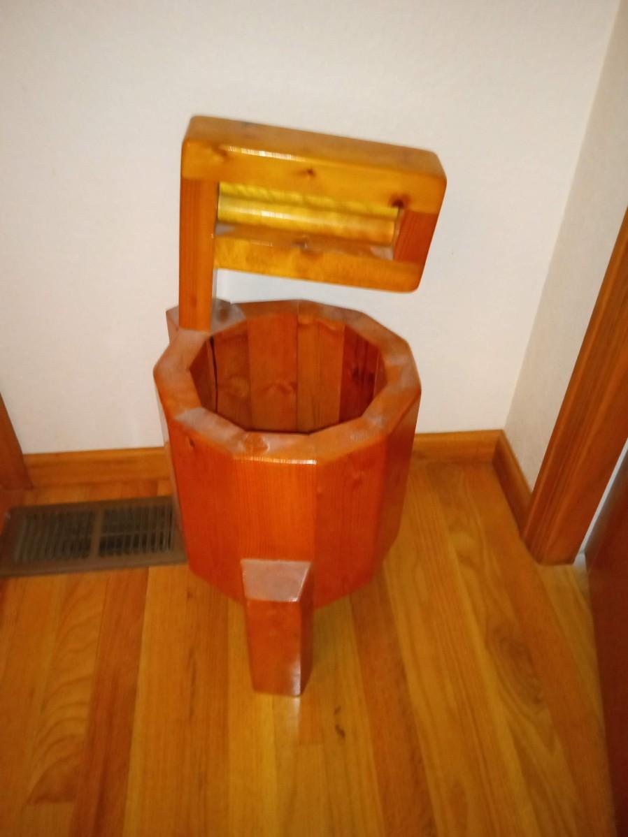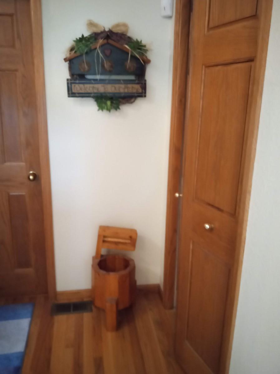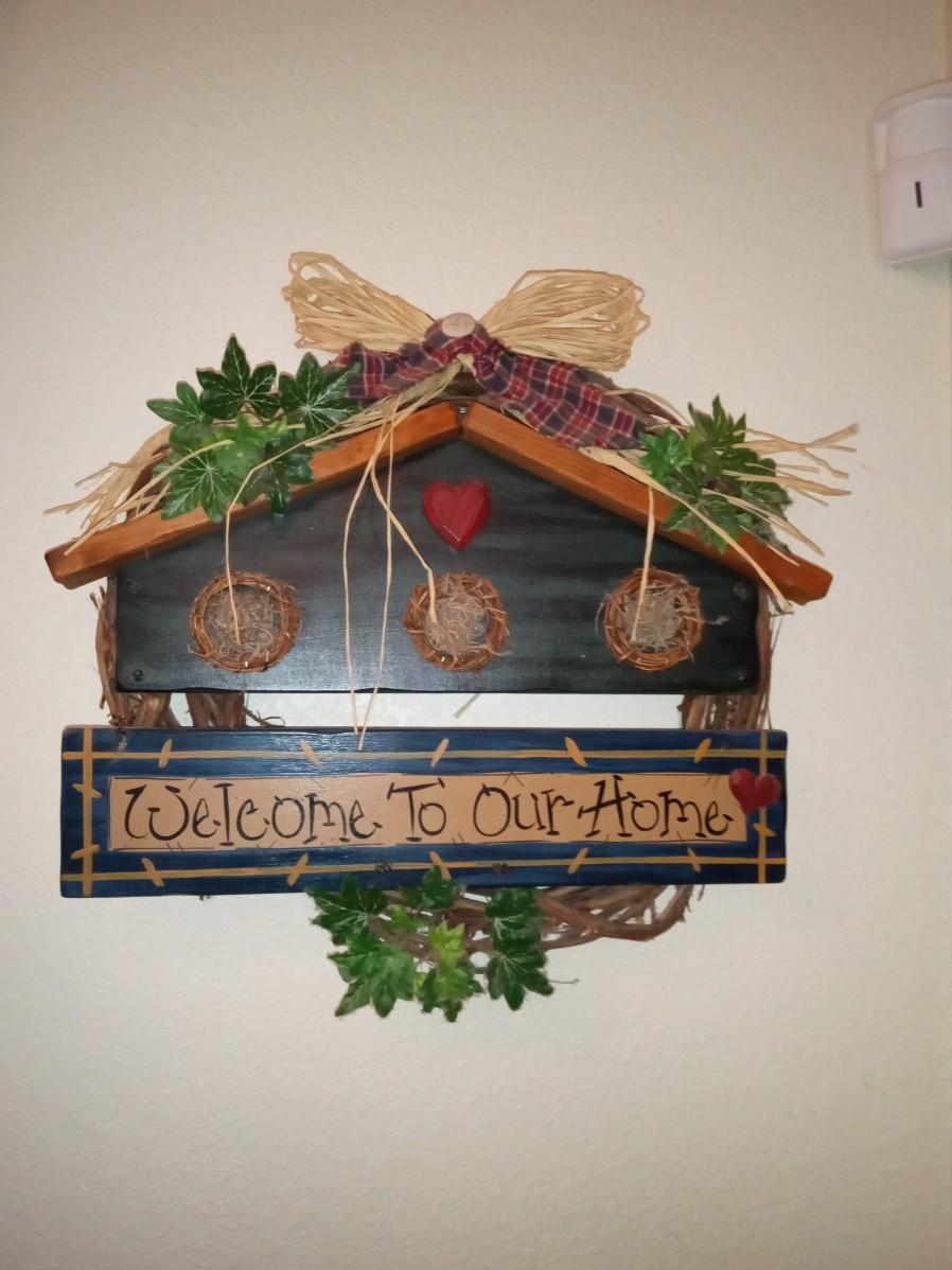 WOODEN PLANTER AND A "WELCOME" WALL HANGING