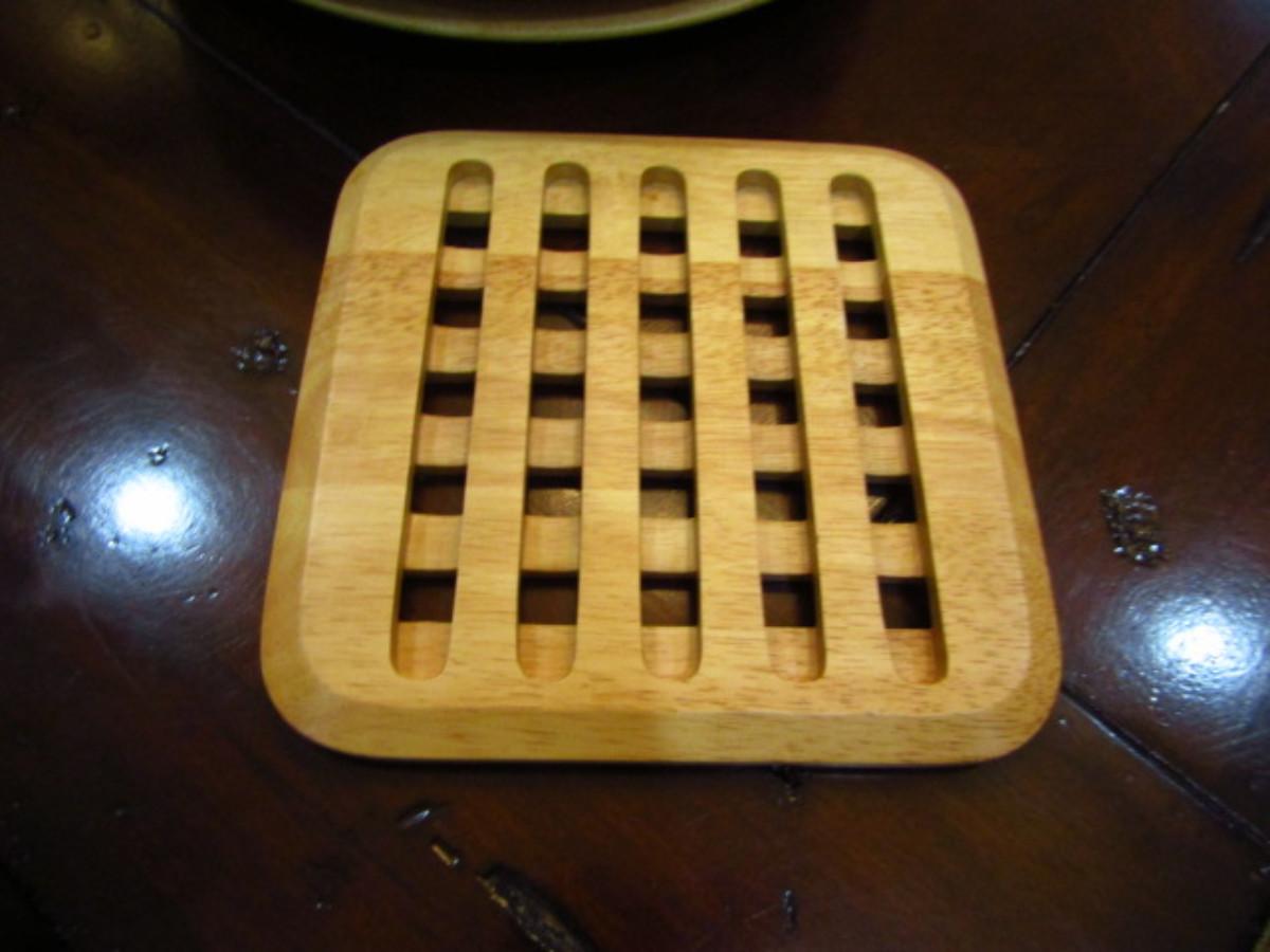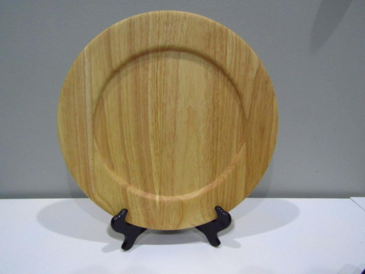 Wooden Plate Chargers and Trivet (DR). 8 chargers (13"), 1 trivet (8"). Plate holder not included