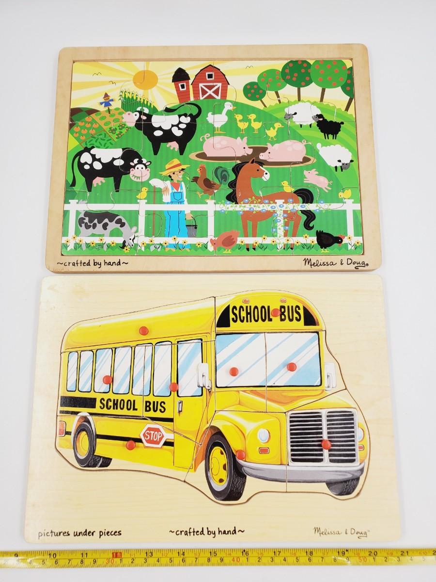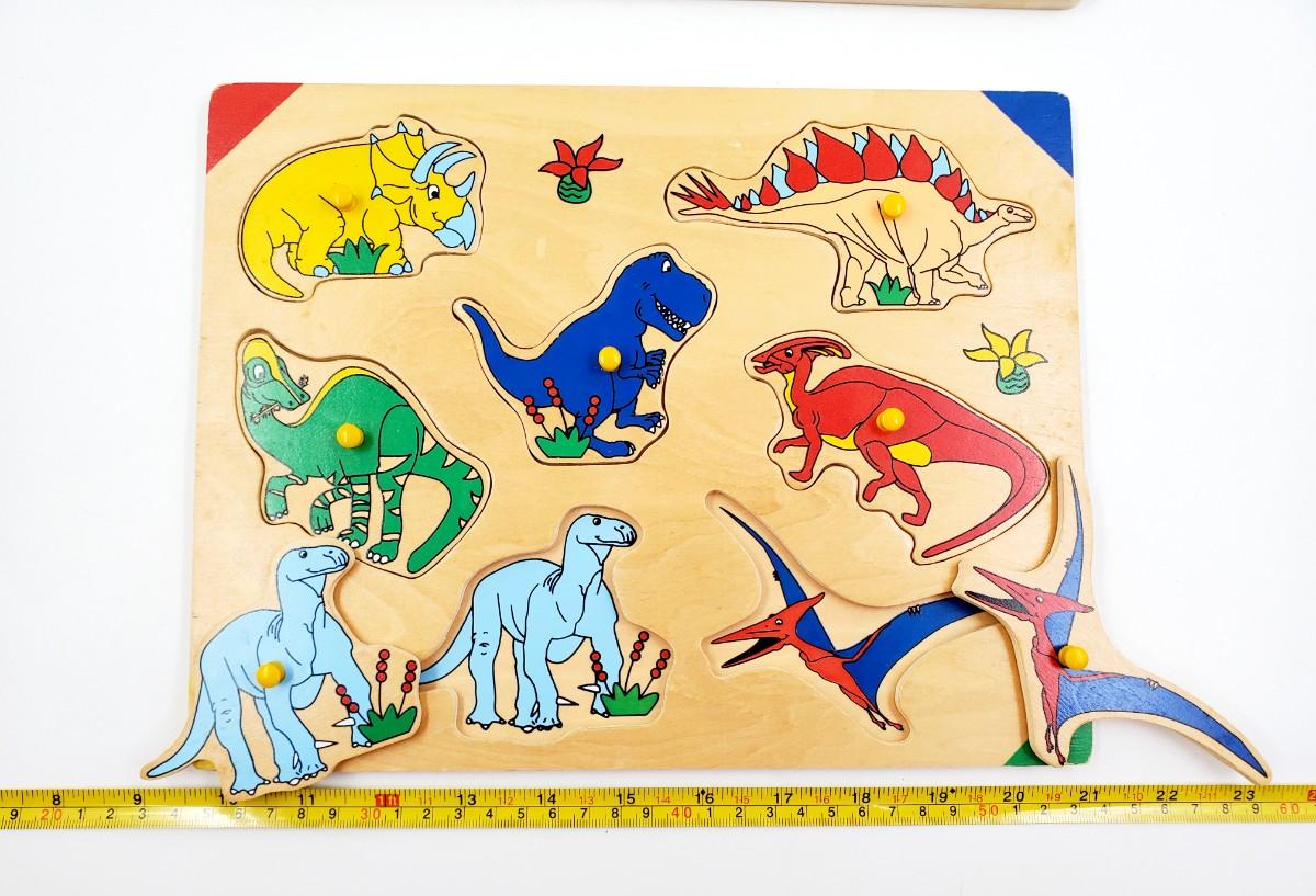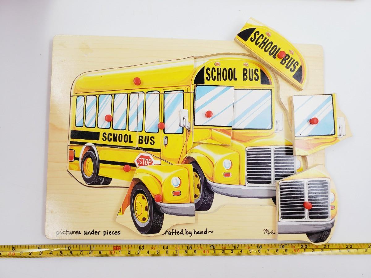 WOODEN PUZZLE LOT OF 4 ~DINOS, VEHICLES, FARM ANIMALS AND SCHOOL BUS BUNDLE