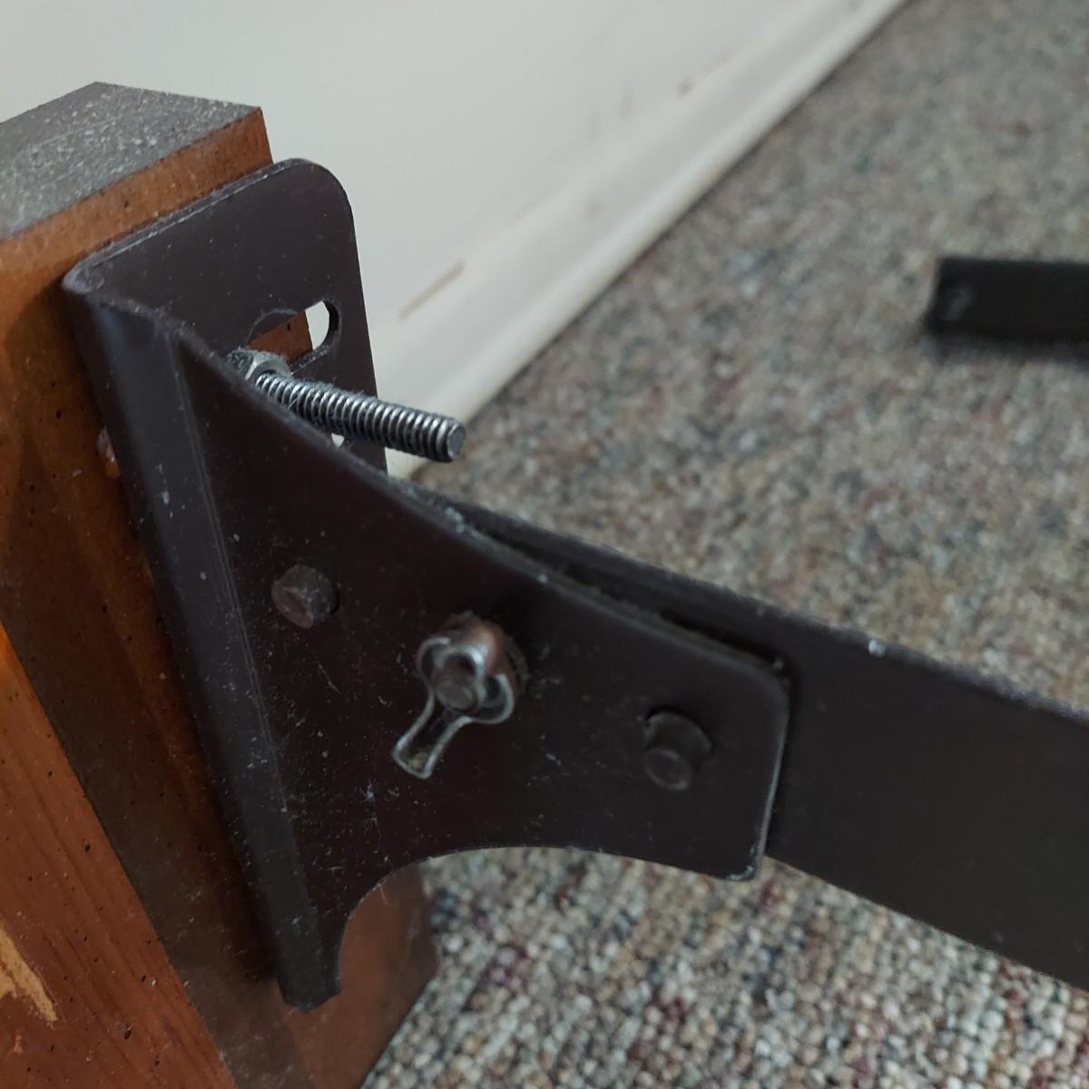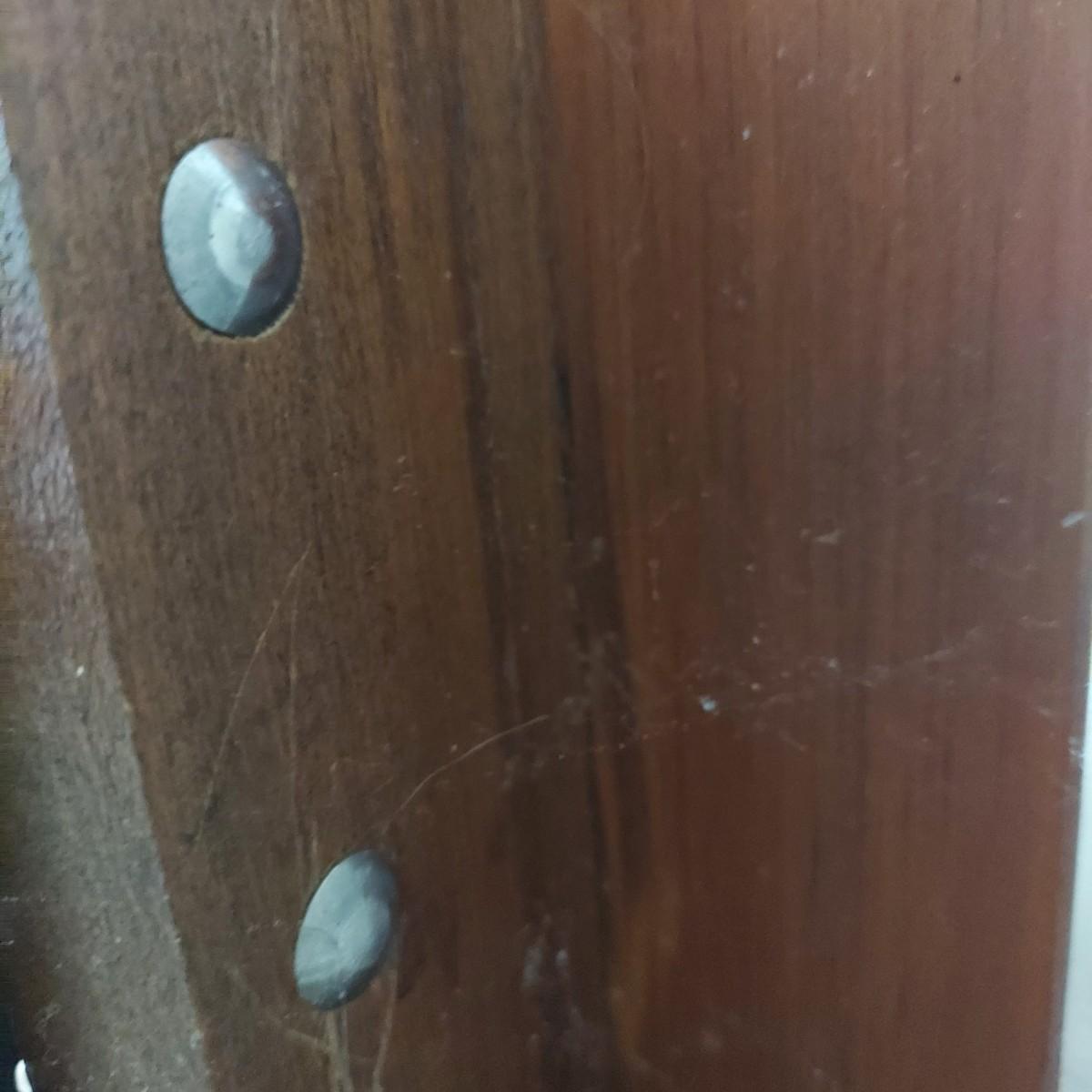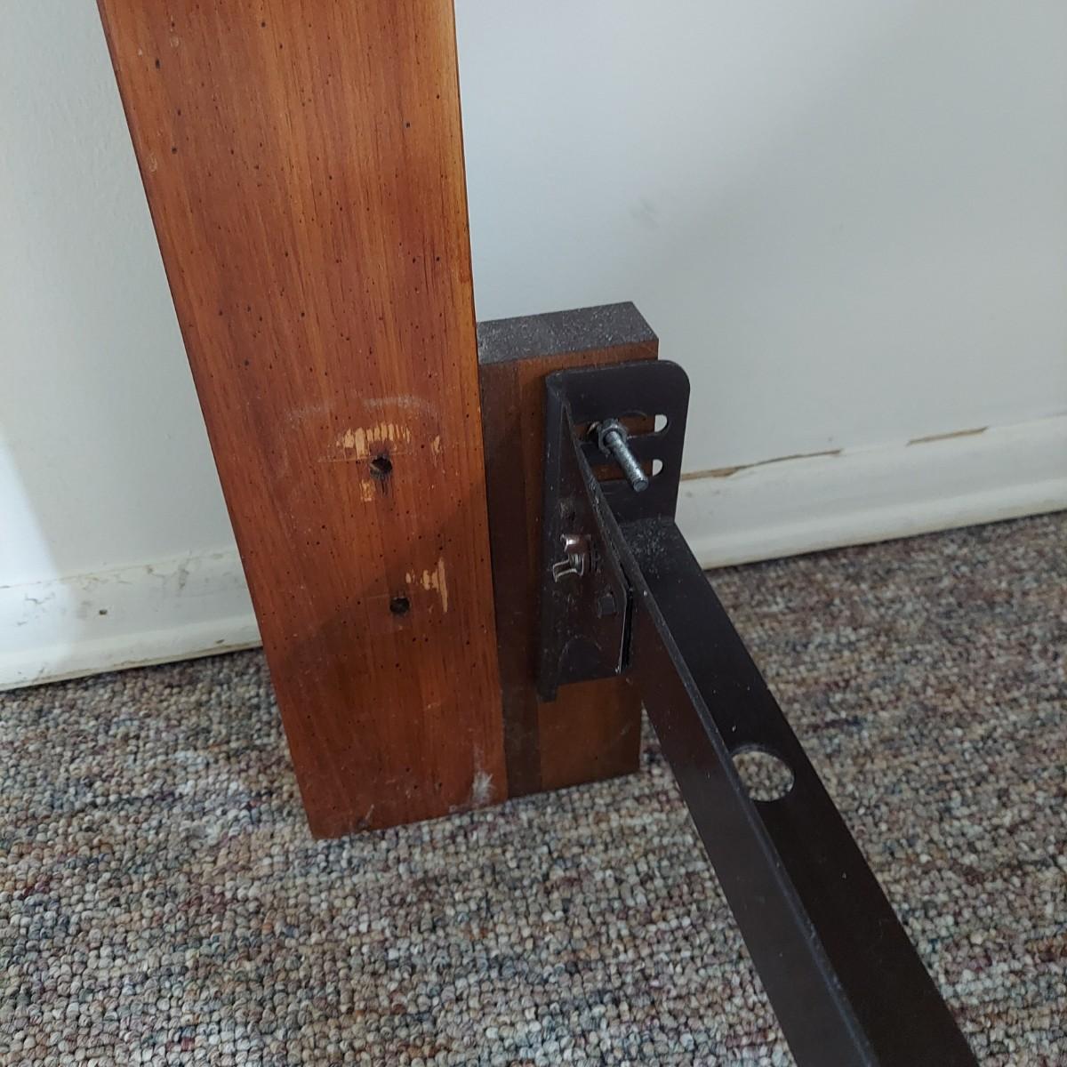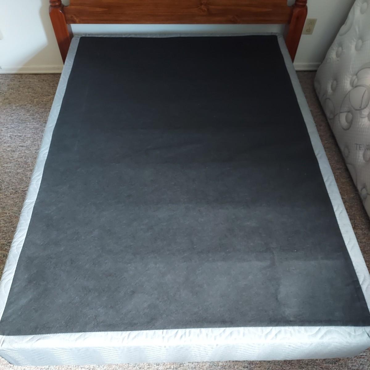Wooden bed frame that measures 64" x 79" x 42"H. The mattress measures 53" x 74". It appears that a full size mattress and box spring is mounted on a queen frame. The mattress is available to the winning bidder if desired, but the winning bidder is not required to take it. Please be prepared to take the frame apart when item is picked up. Local Pickup Only
