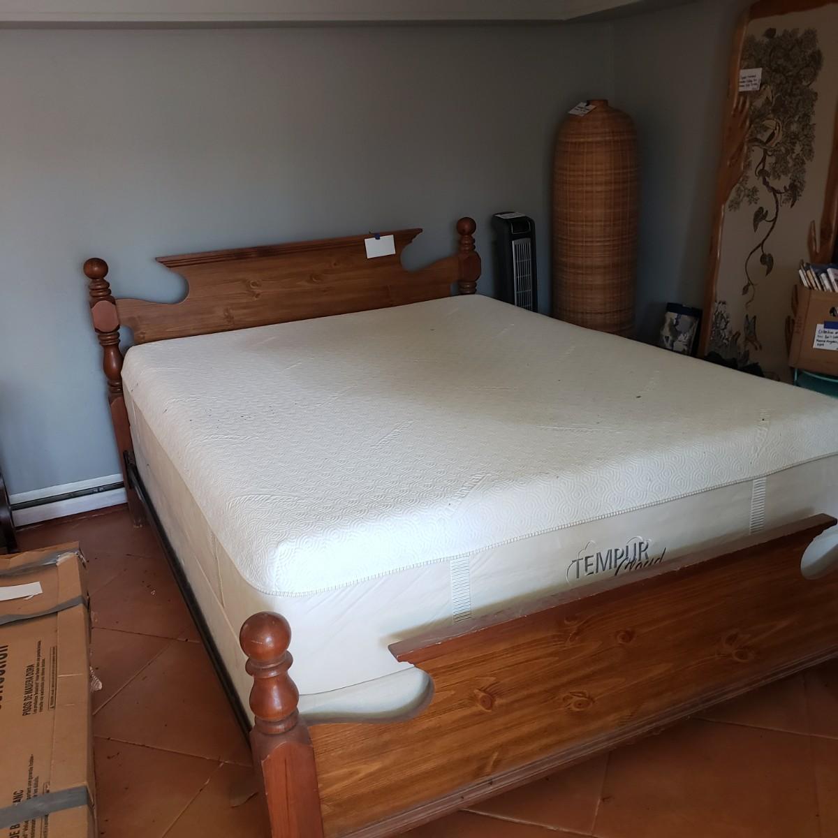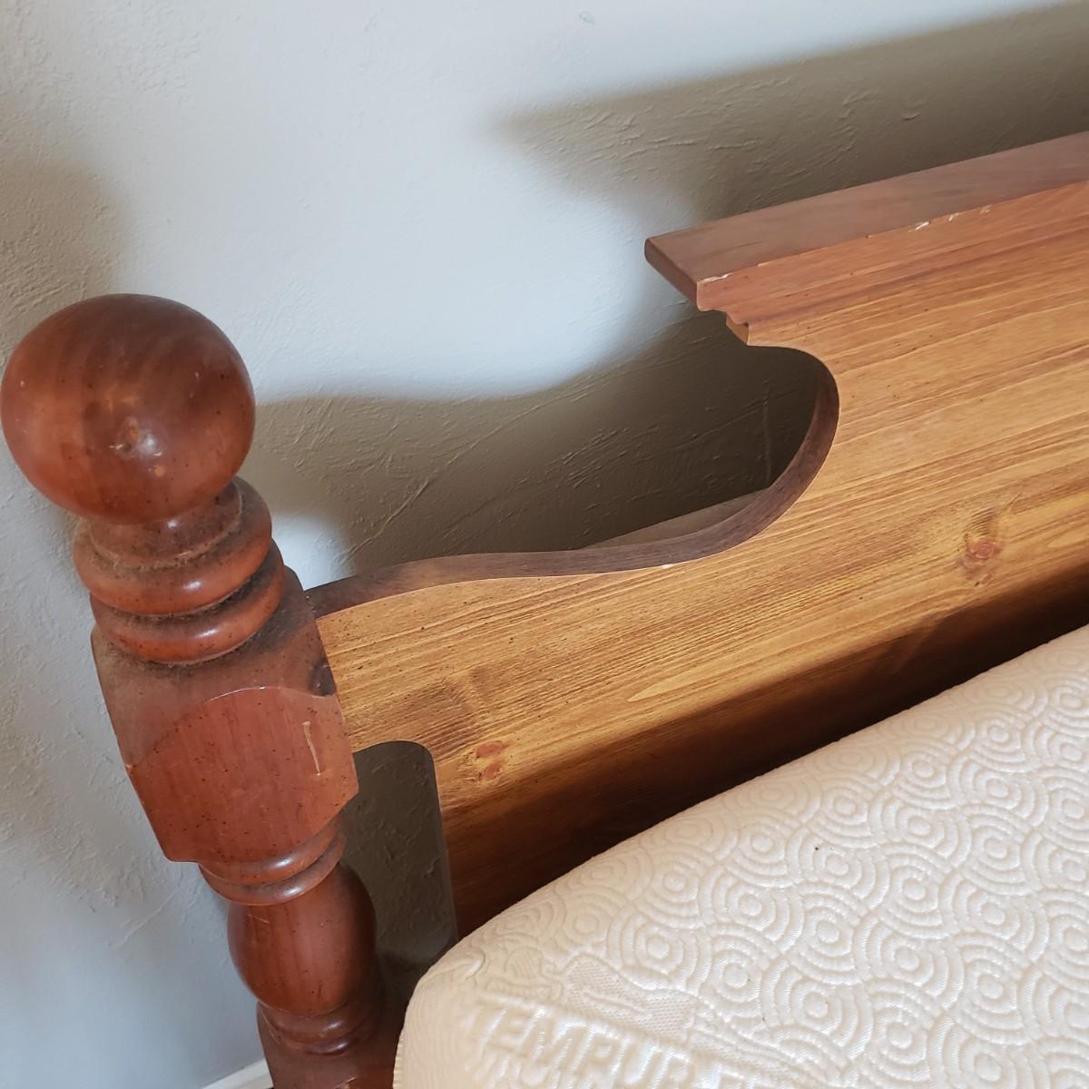 This lot features a solid wood headboard and footboard for a queen bed. The headboard measures 63" x 41"H. It appears the bed rails are bolted into the bracket. The winning bidder should bring tools to pick up and be prepared to take the frame apart. The mattress is available to the winning bidder if desired, but the winning bidder is not required to take it. Local pickup only. Winning bidder must bring assistance to help move and load this item due to its weight and/or size. Bed is located in a walk out basement area.