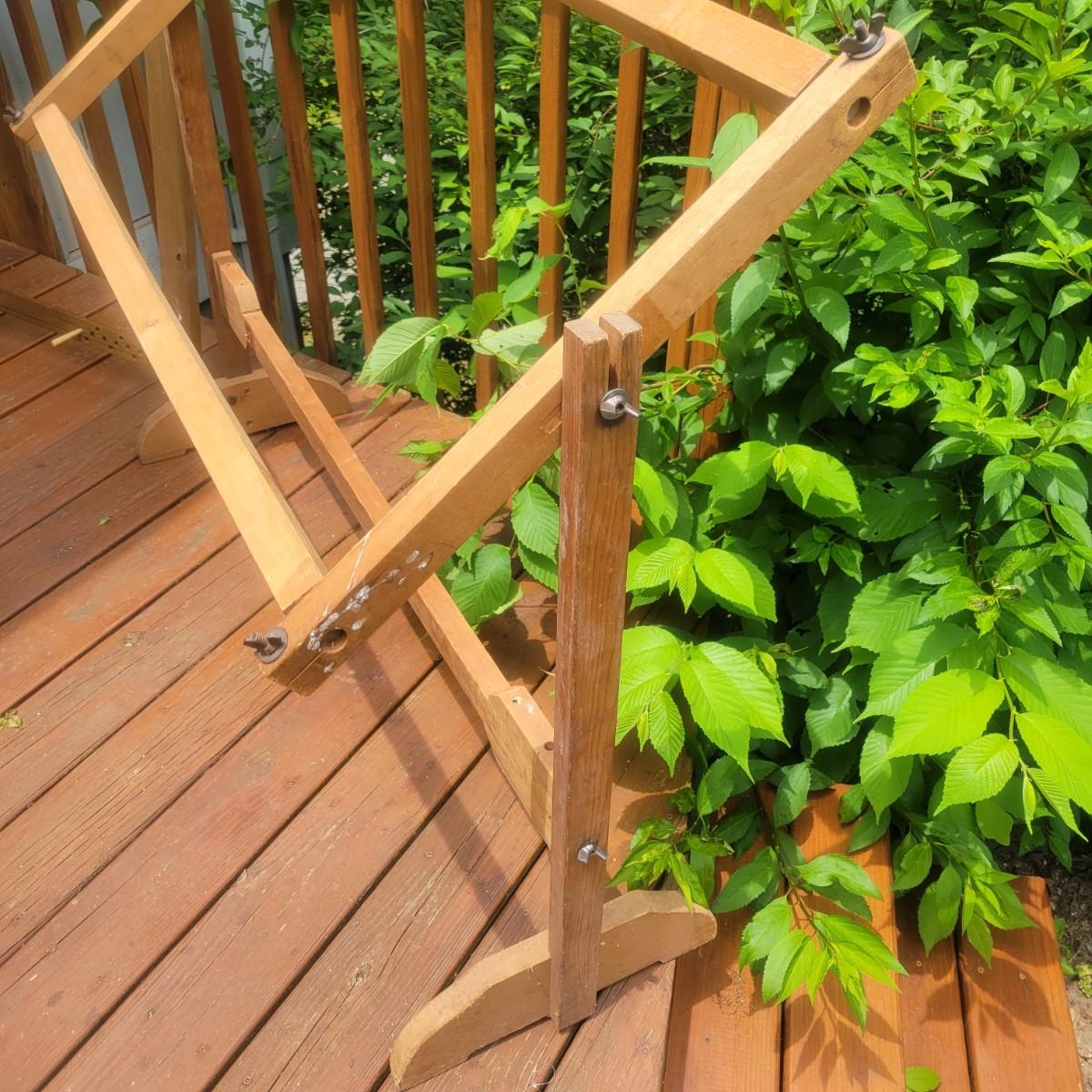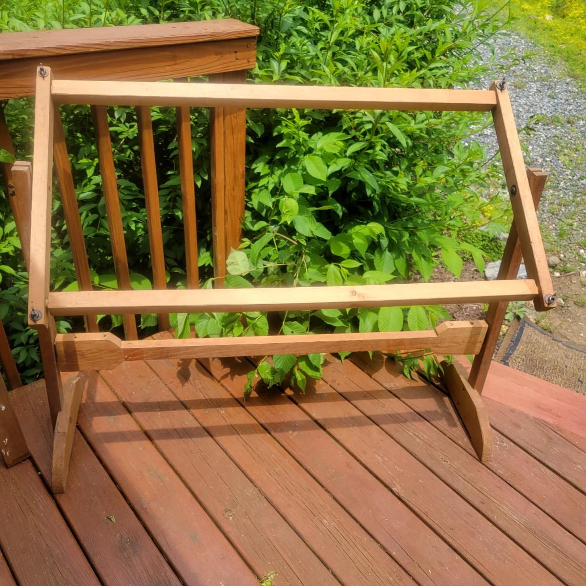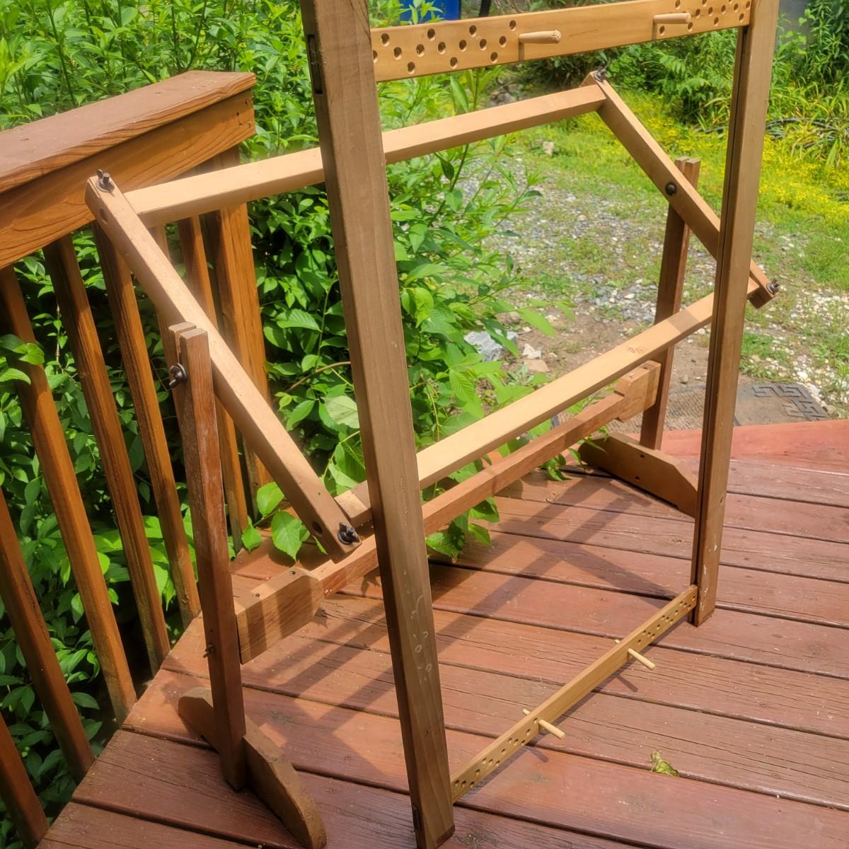 A wooden quilting frame and warping board. Both pieces disassemble for convenient storage. The quilting frame measures approximately 47" x 23.5" x 32 5". Local pickup only