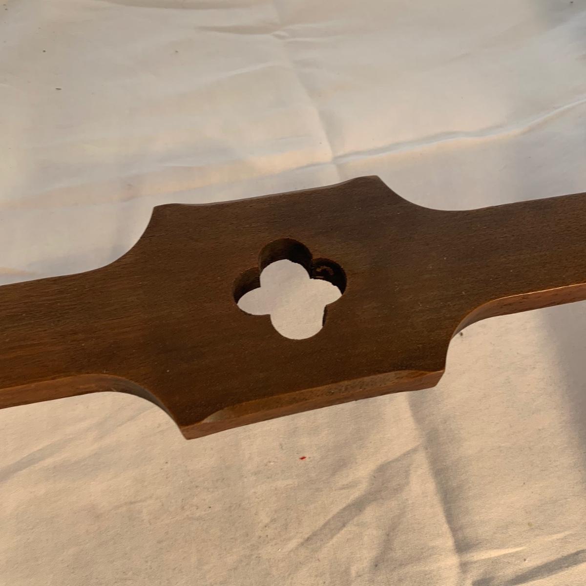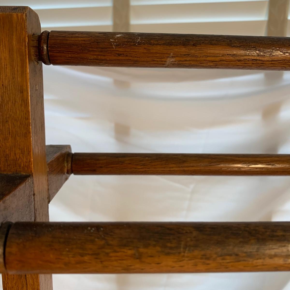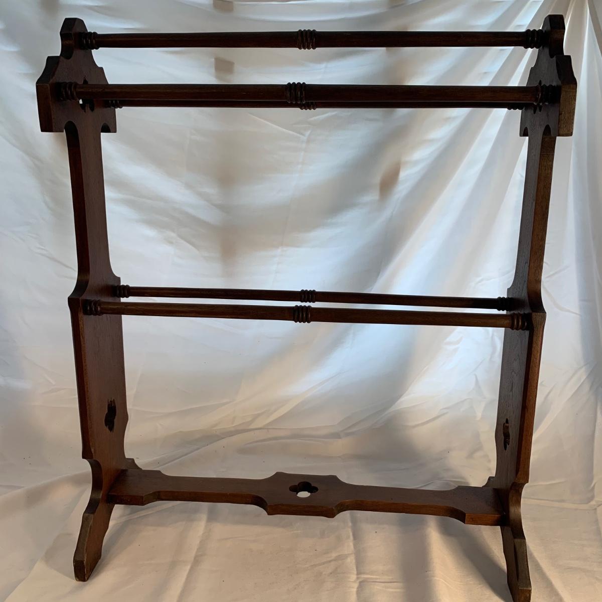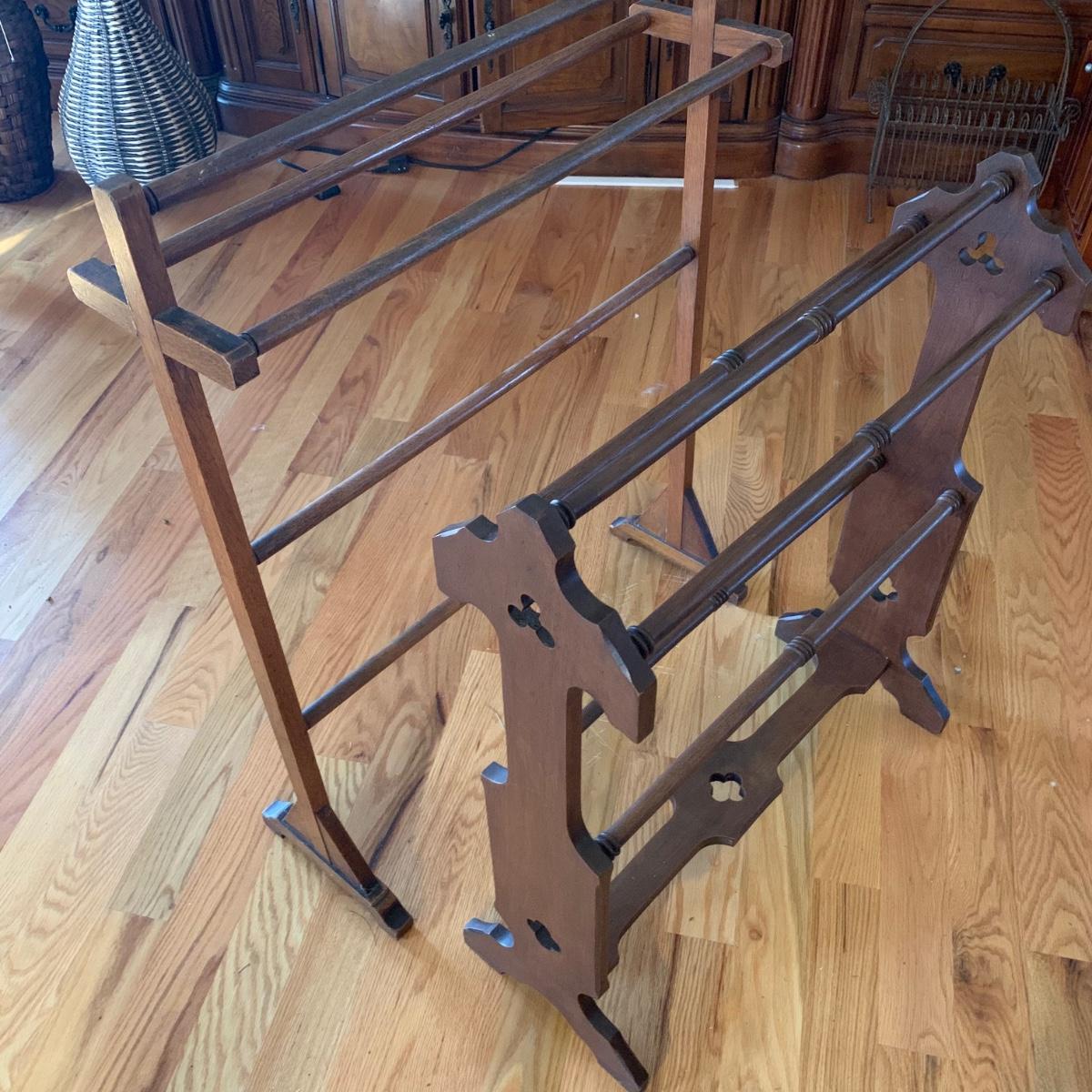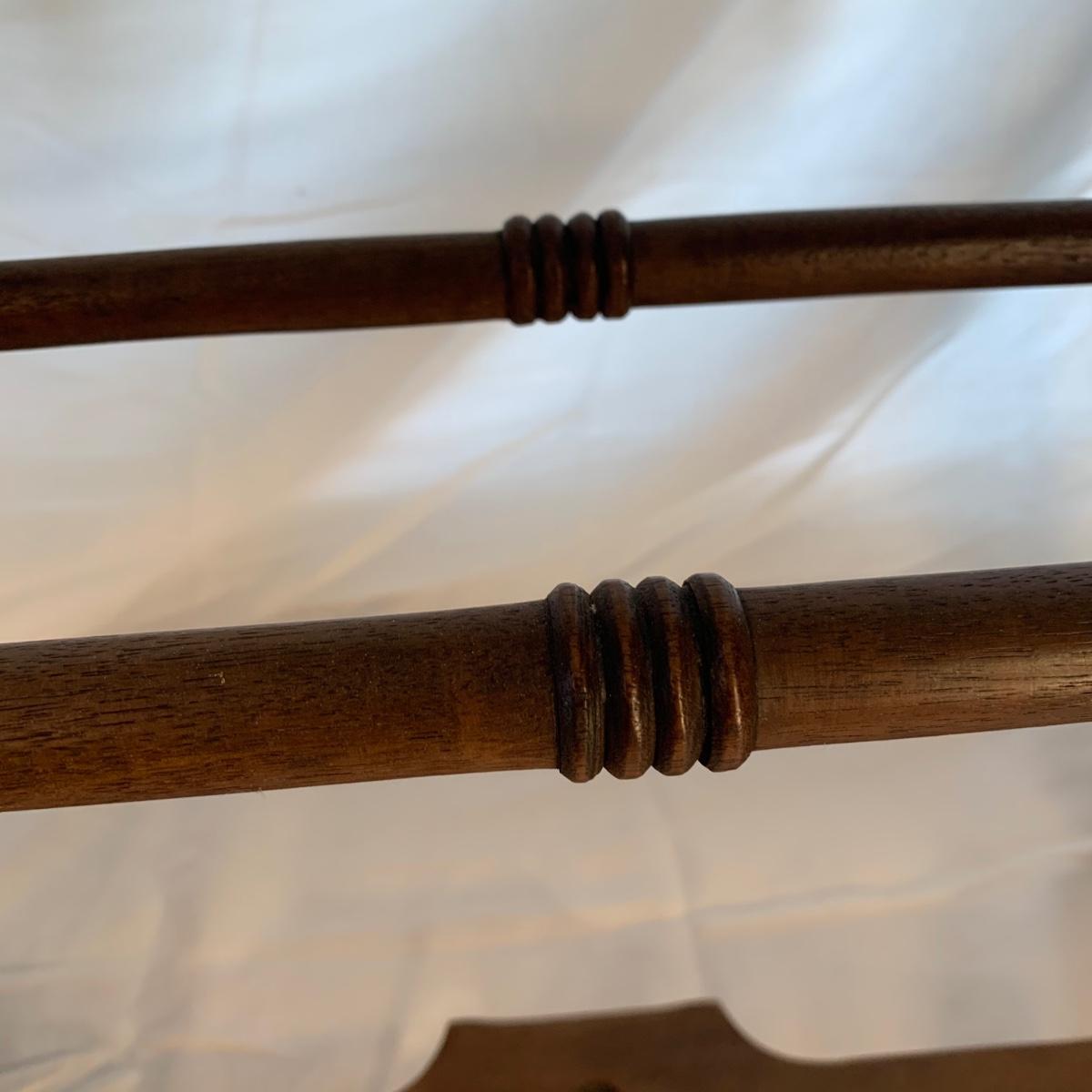 This lot includes two wooden racks. The racks are carved out of a lighter weighted wood. There are some slight signs of wear on the racks (see photos). The larger rack measures about 36in x 28.5in. Shipping not available.
