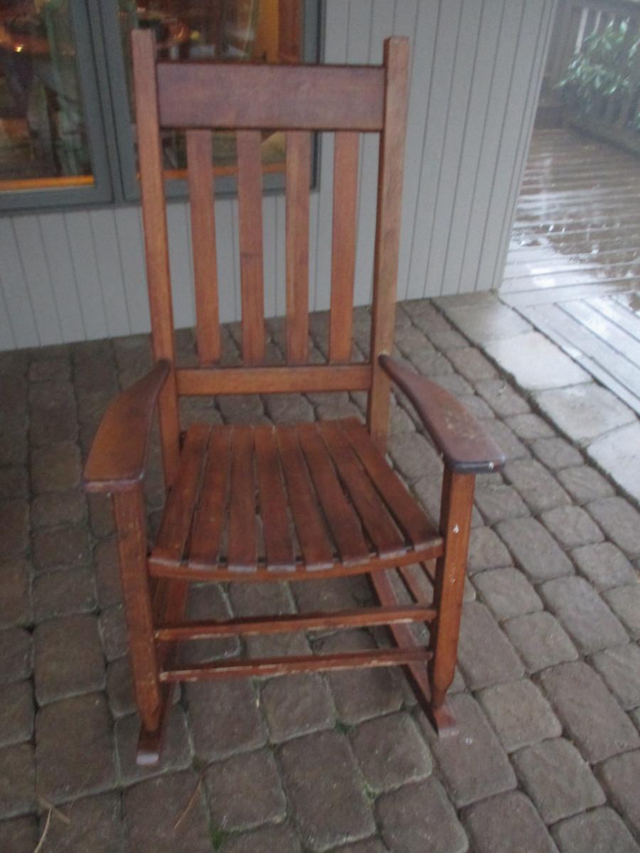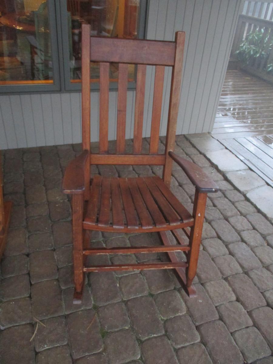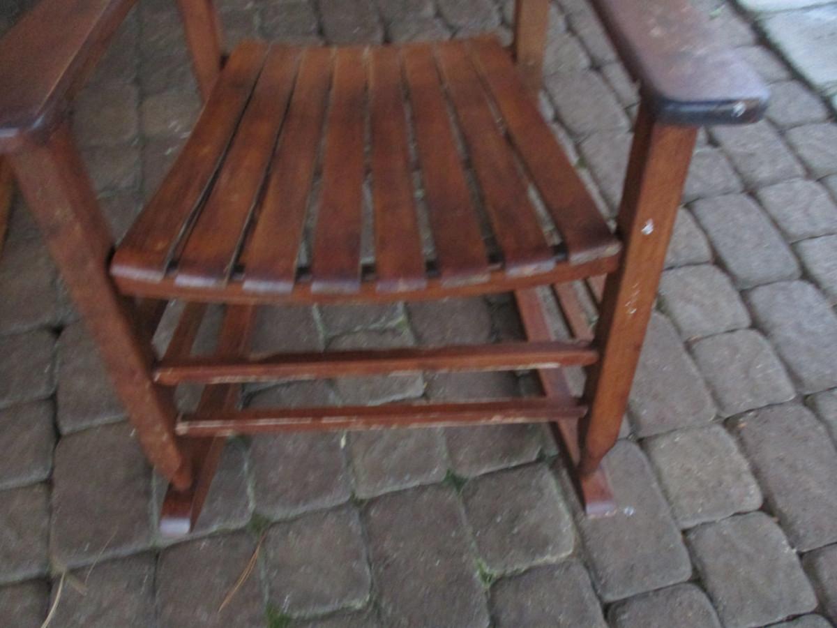 Wooden Rocking Chair (#1). Some scratching on one arm- please see all pictures.
