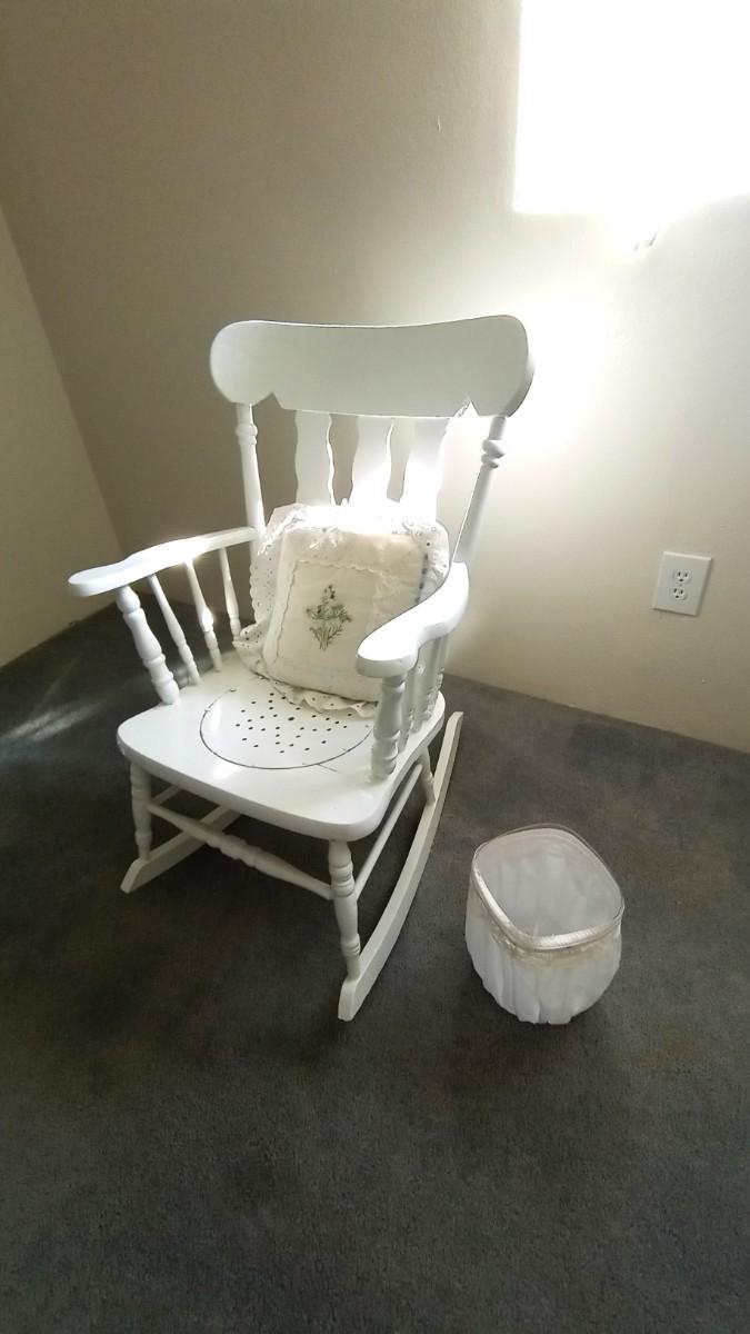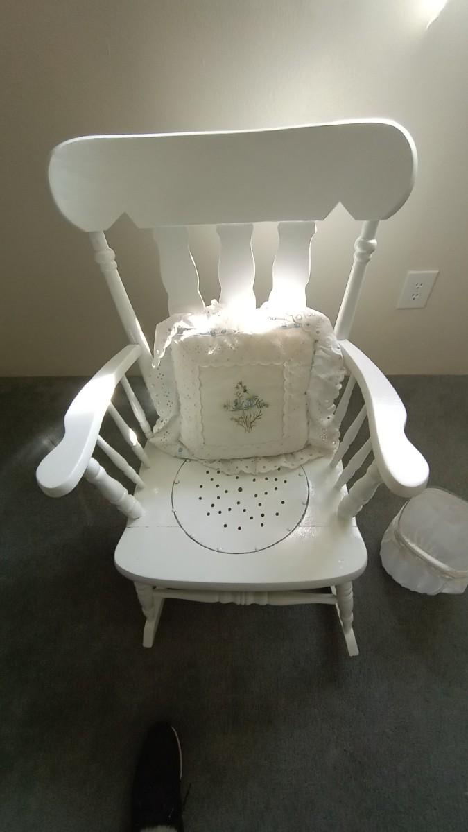 WOODEN ROCKING CHAIR PAINTED WHITE