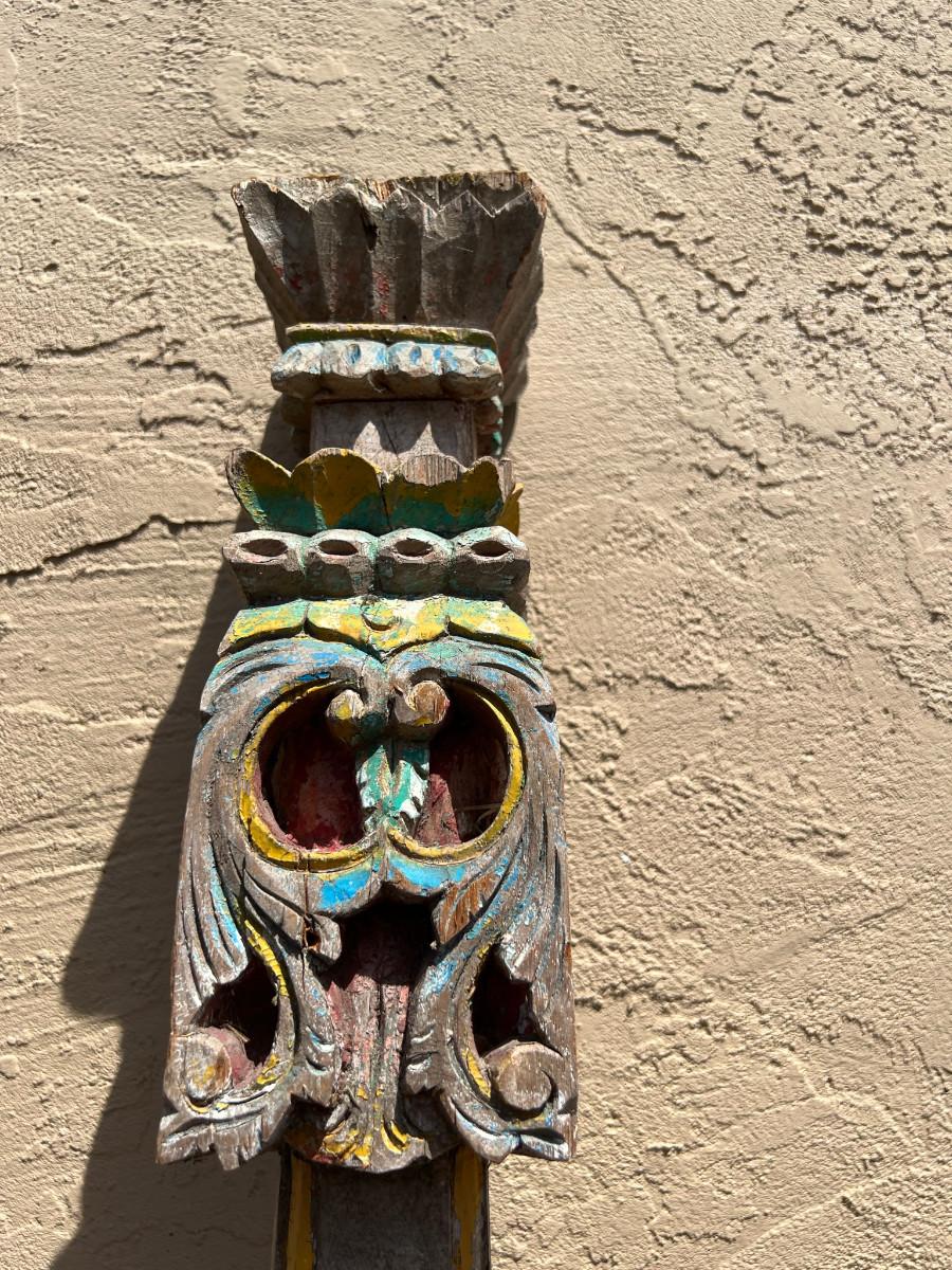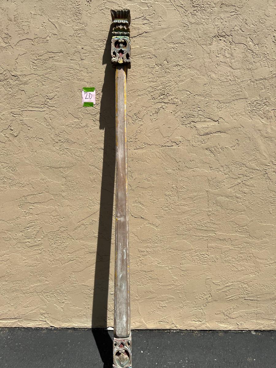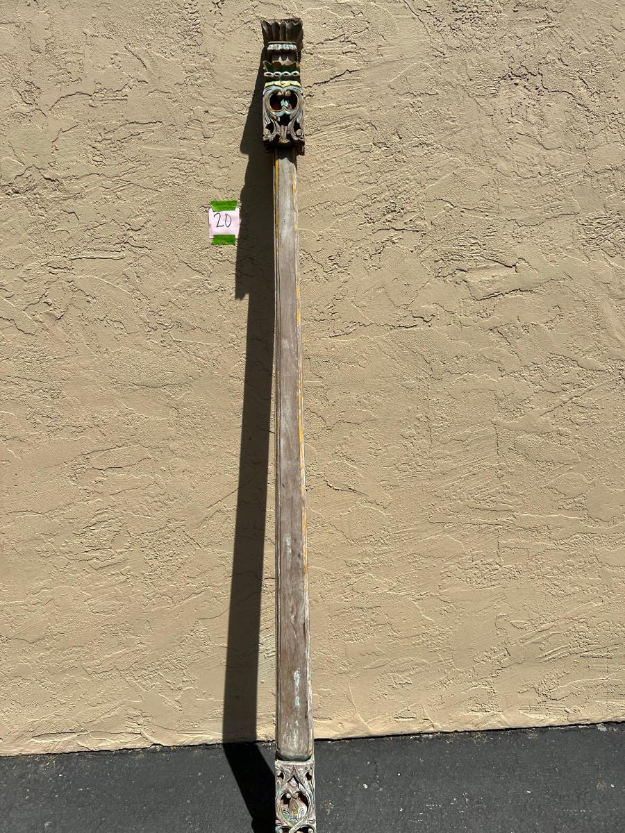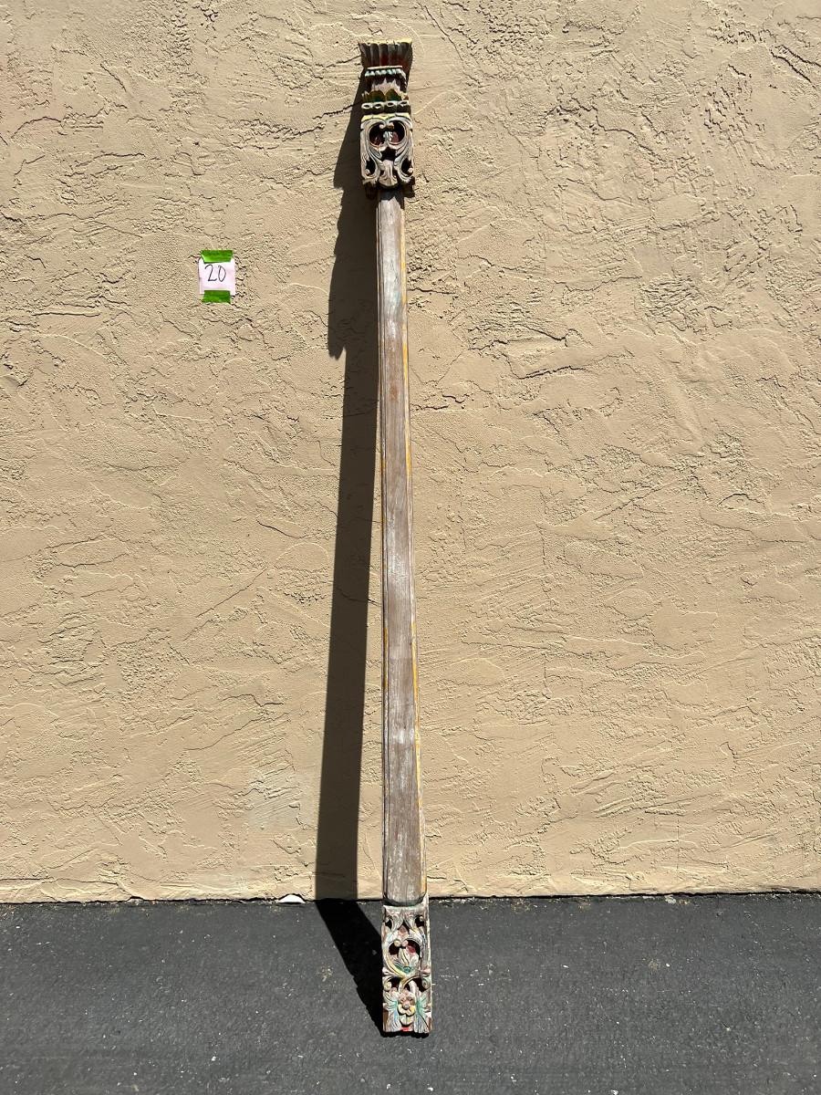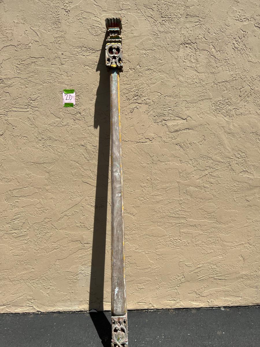Could be used as a curtain rod? Carved wood on each end. One end slightly wider then the other. 77" x 4" x 4" (widest spot)