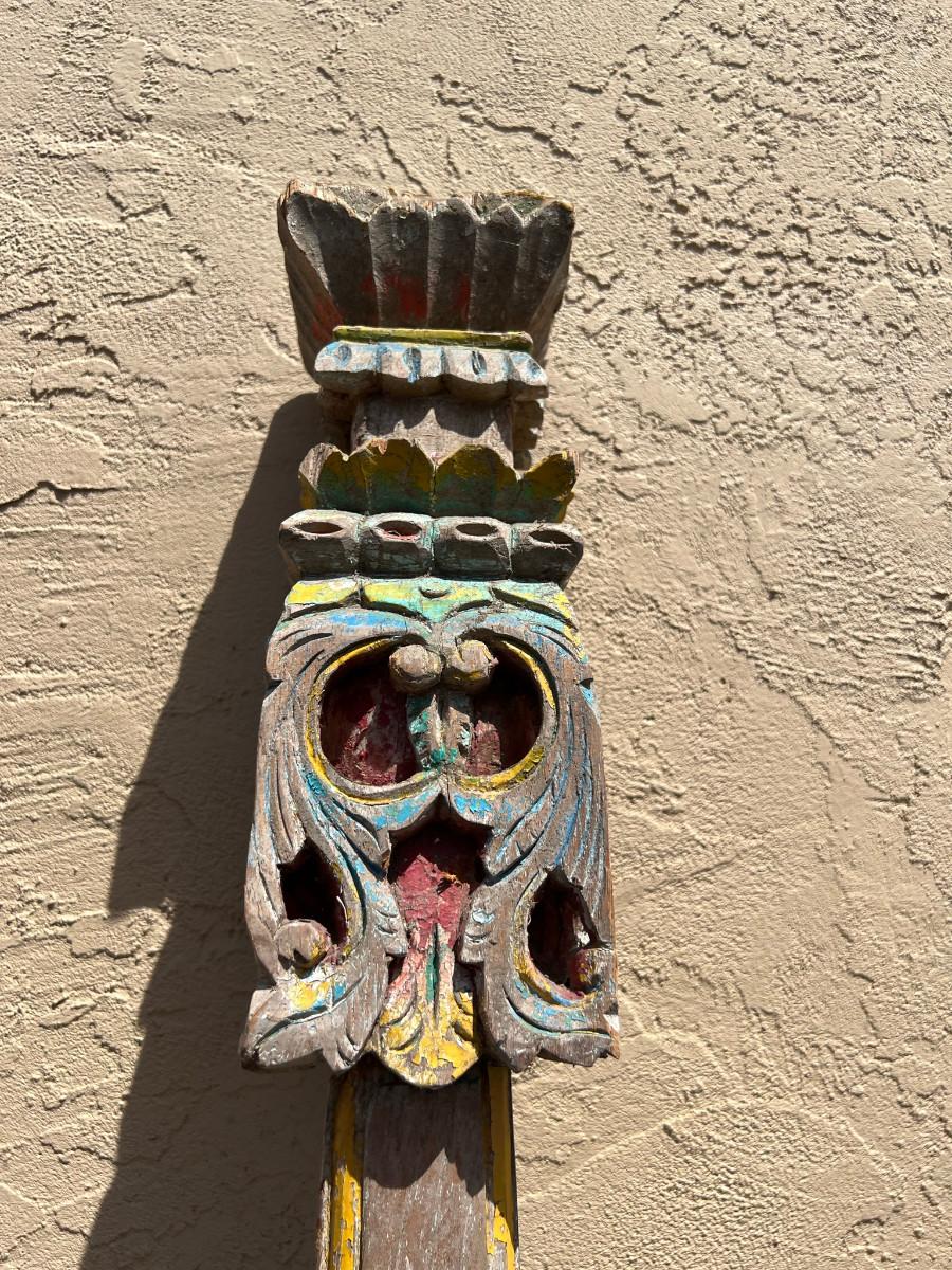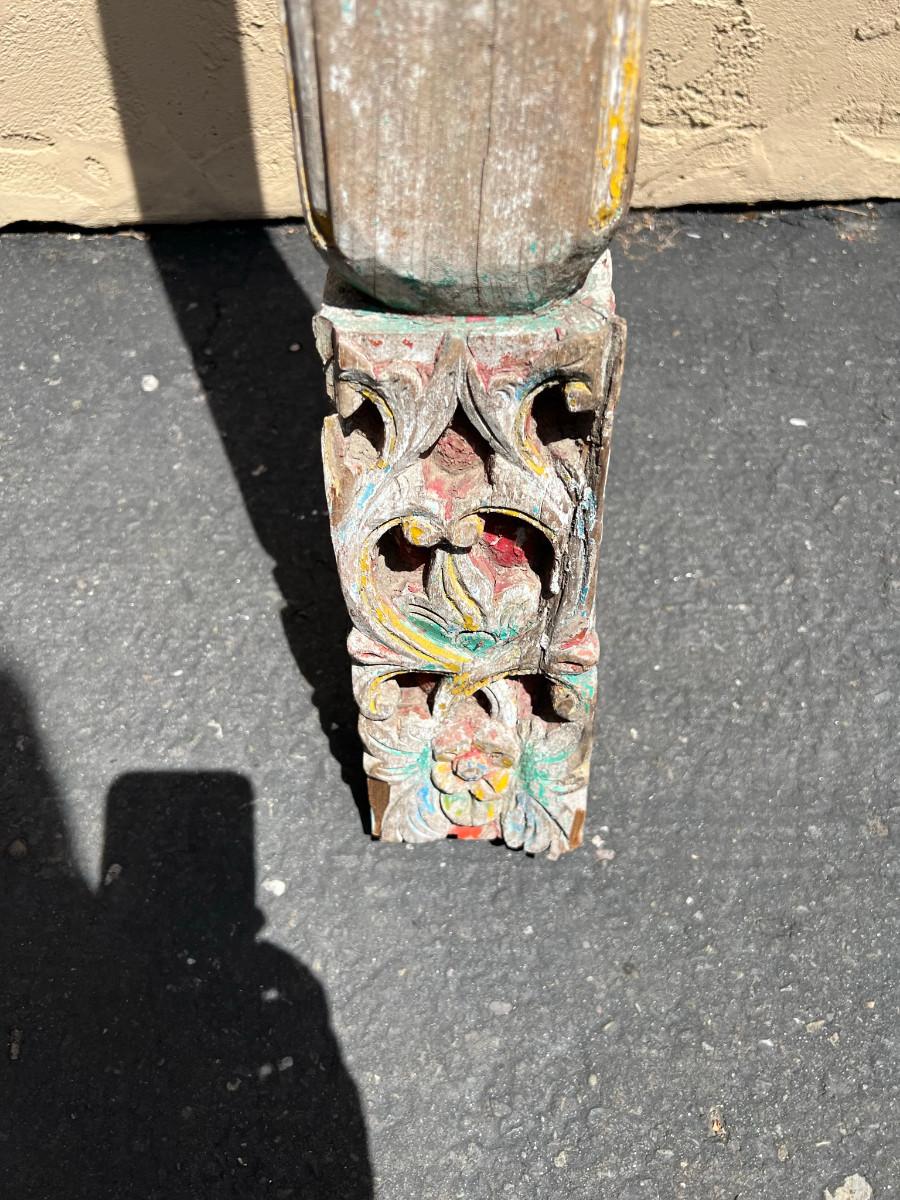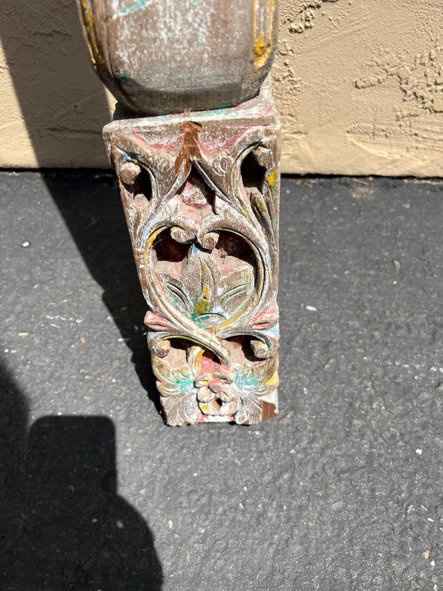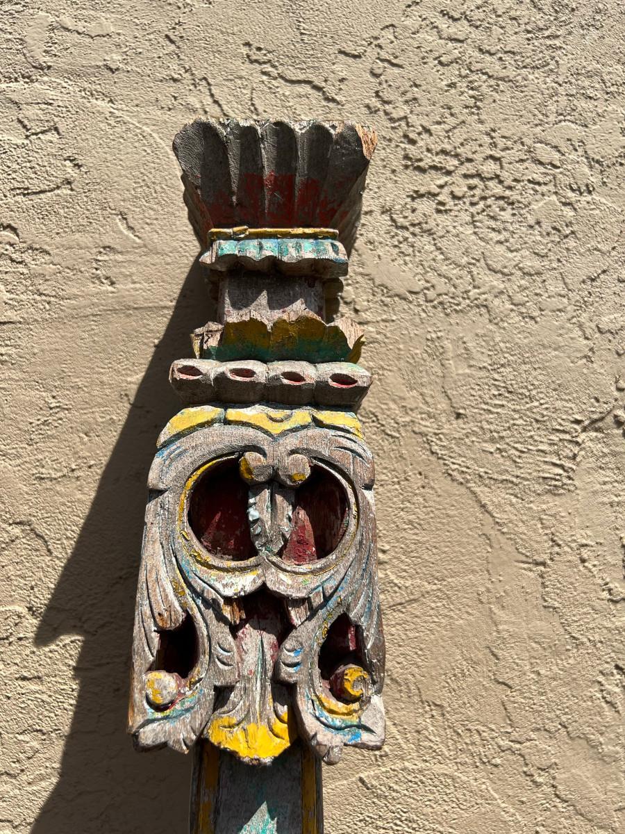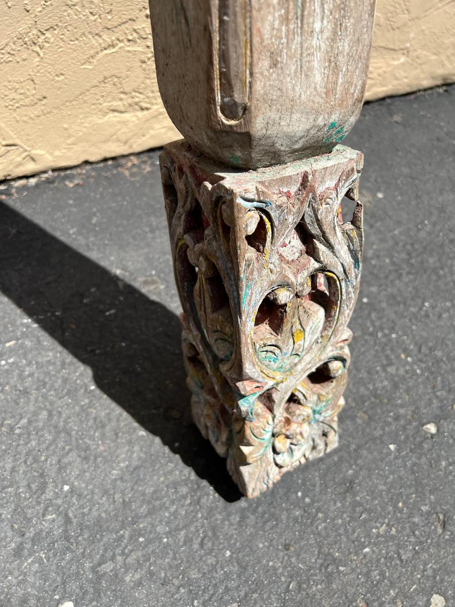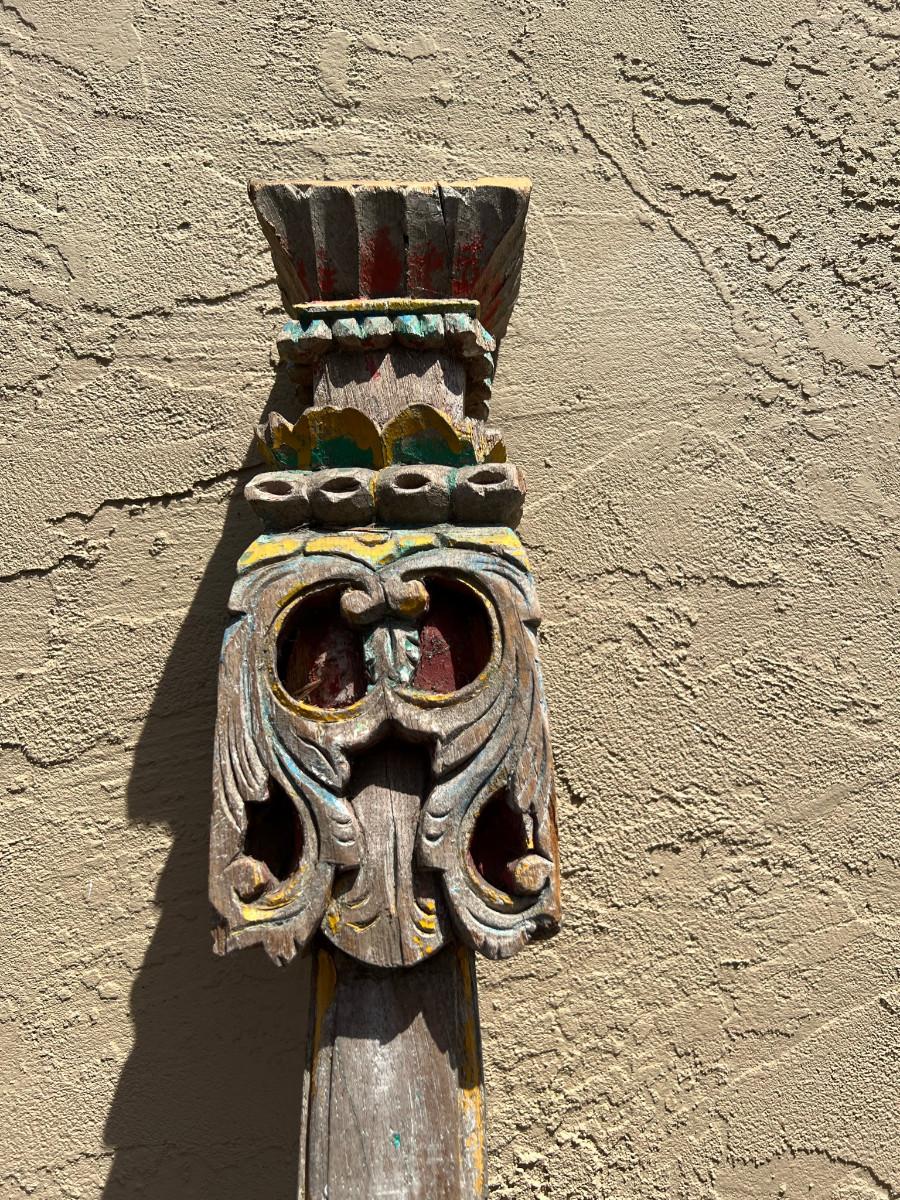 Could be used as a curtain rod? Carved wood on each end. One end slightly wider then the other. 77" x 4" x 4" (widest spot)