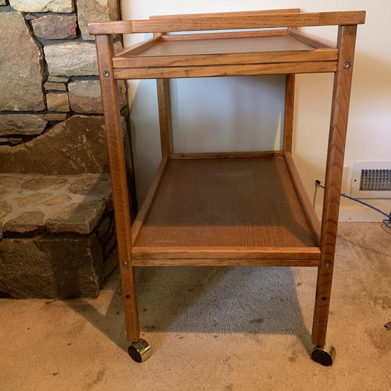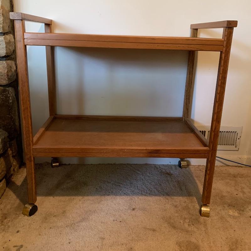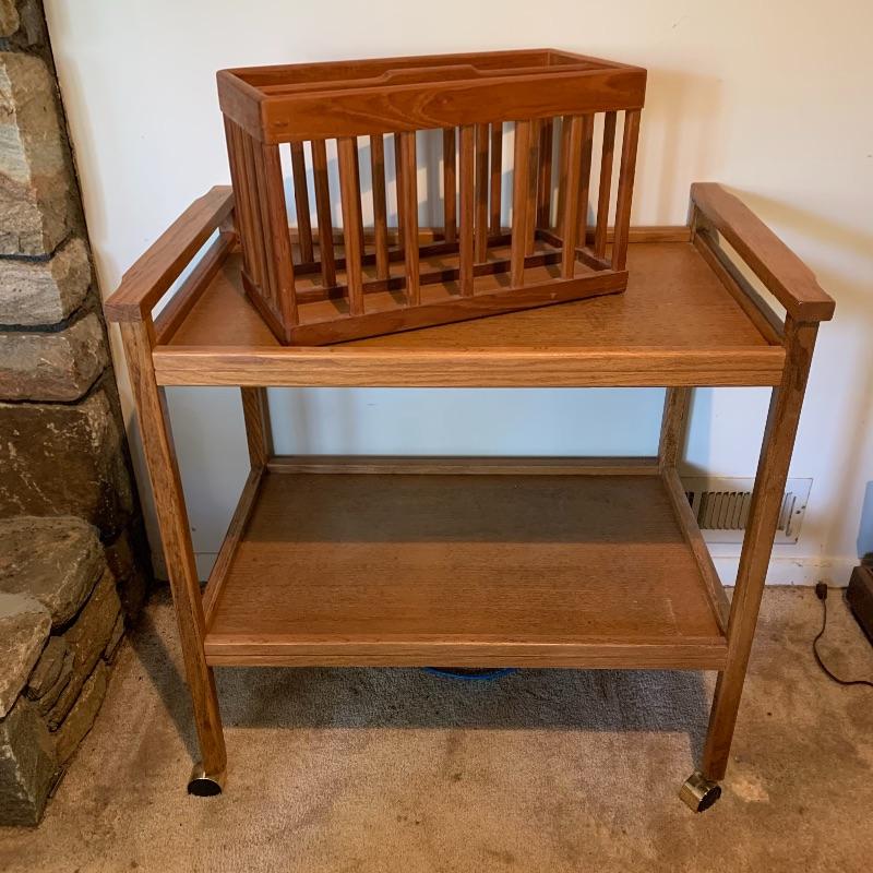 Lot 116 - Wooden Rolling Cart and Teak Magazine Rack