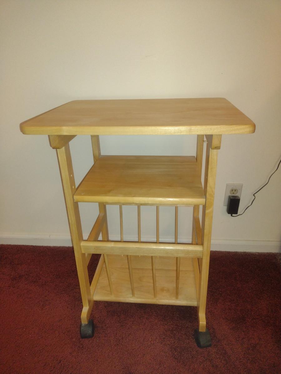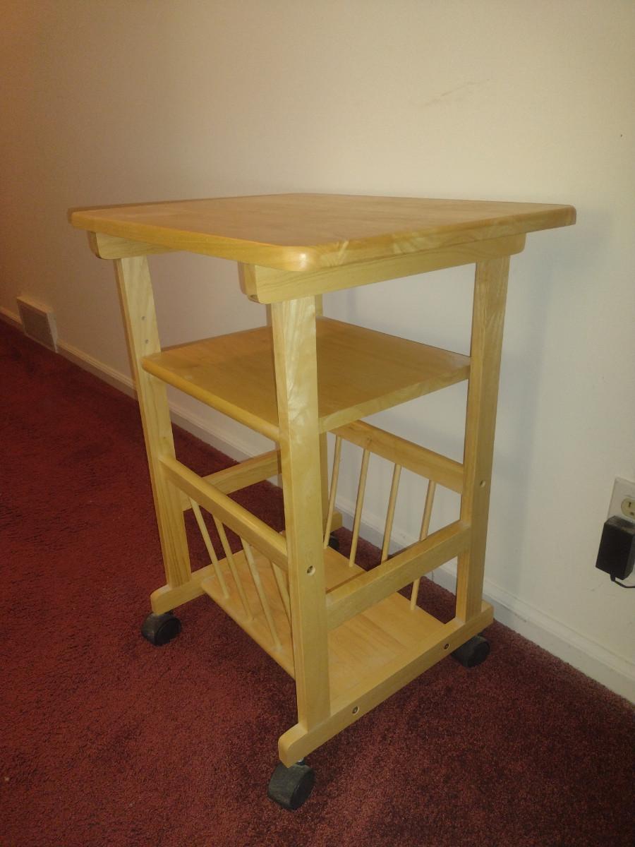 Wooden Rolling Table/Magazine Rack- Measures Approx 22" x 17" x 28 3/4" Tall