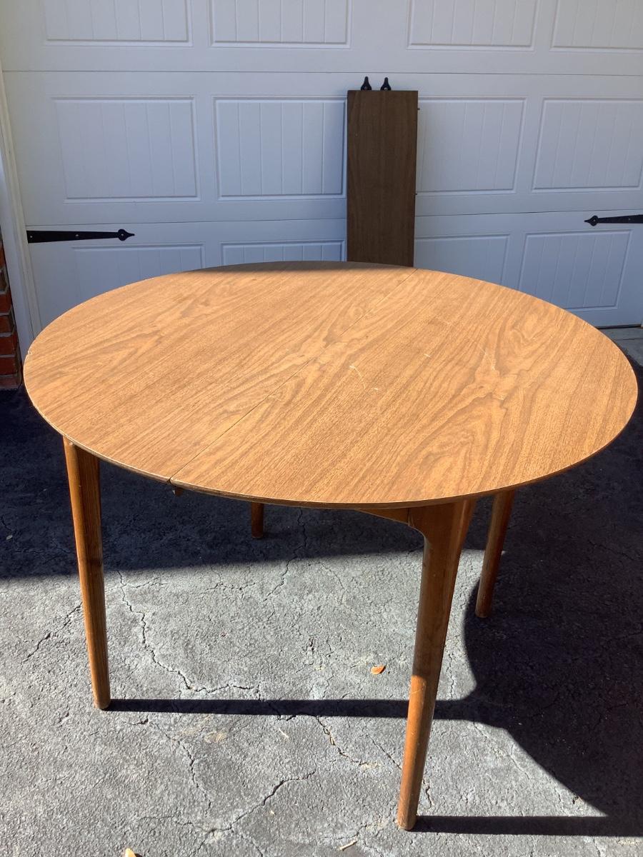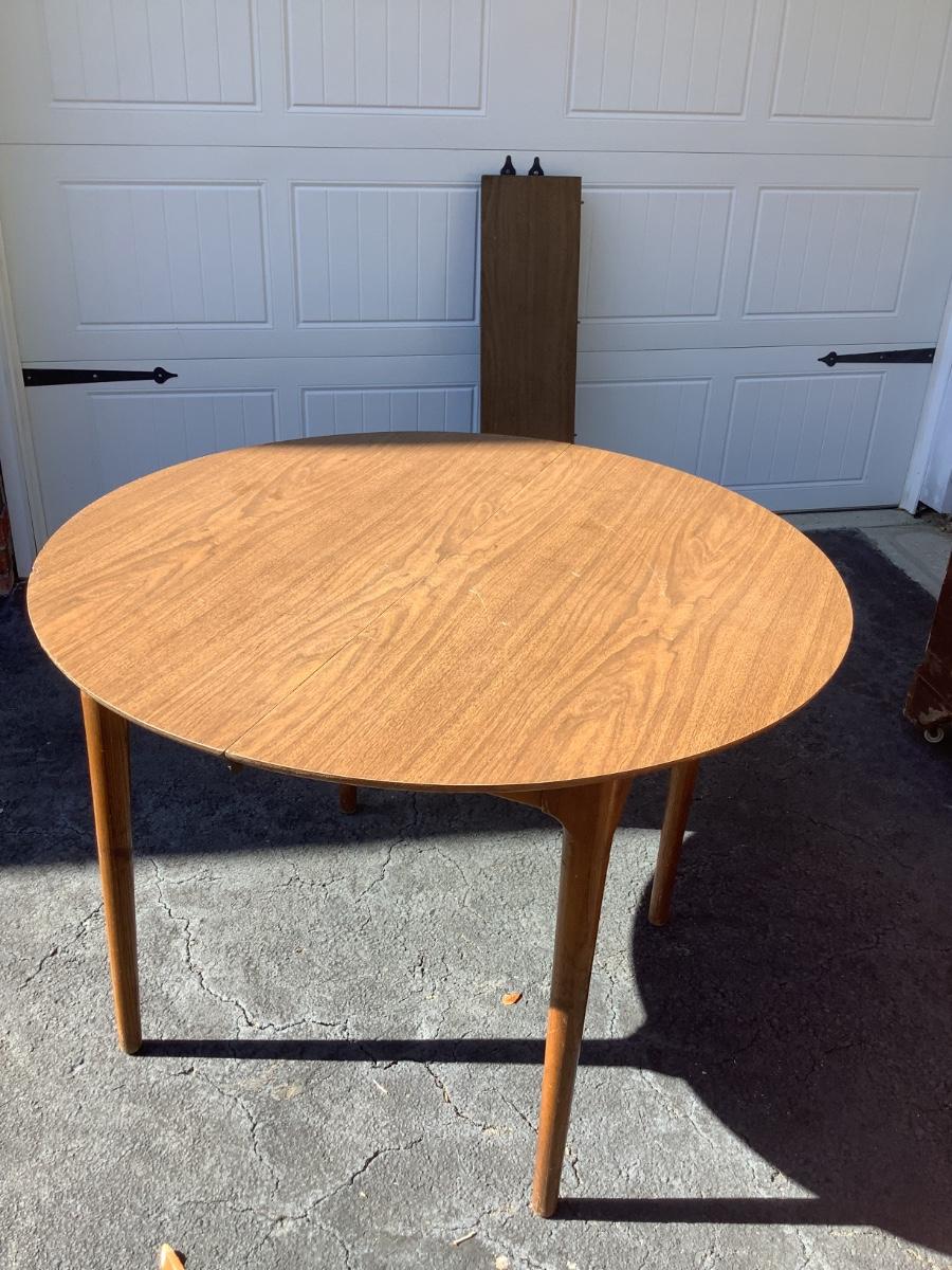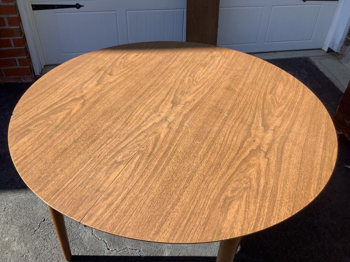 Wooden round table with vinyl top 30"H 41"diameter 10.5" leaf