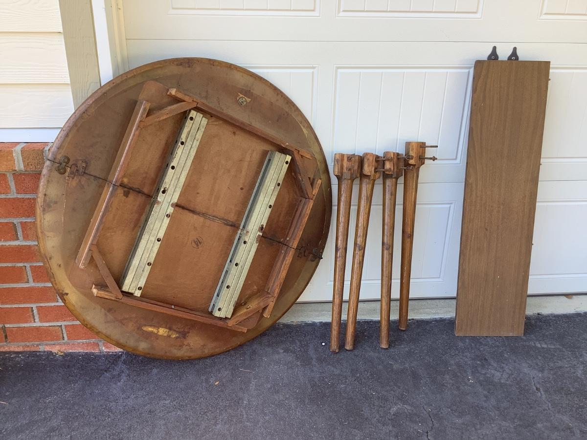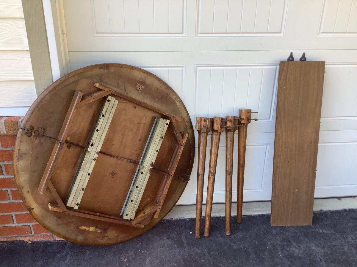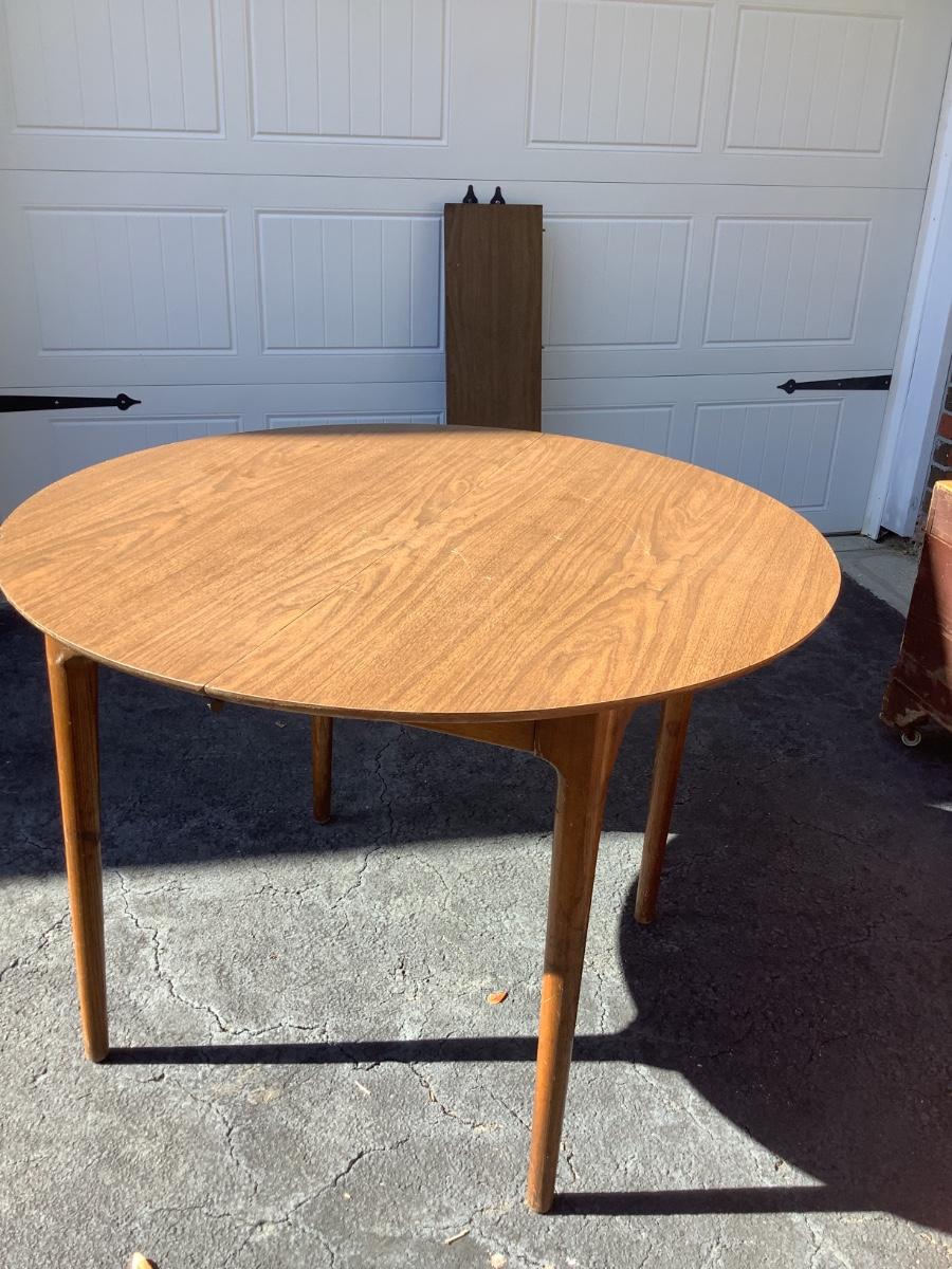 Wooden round table with vinyl top 30"H 41"diameter 10.5" leaf