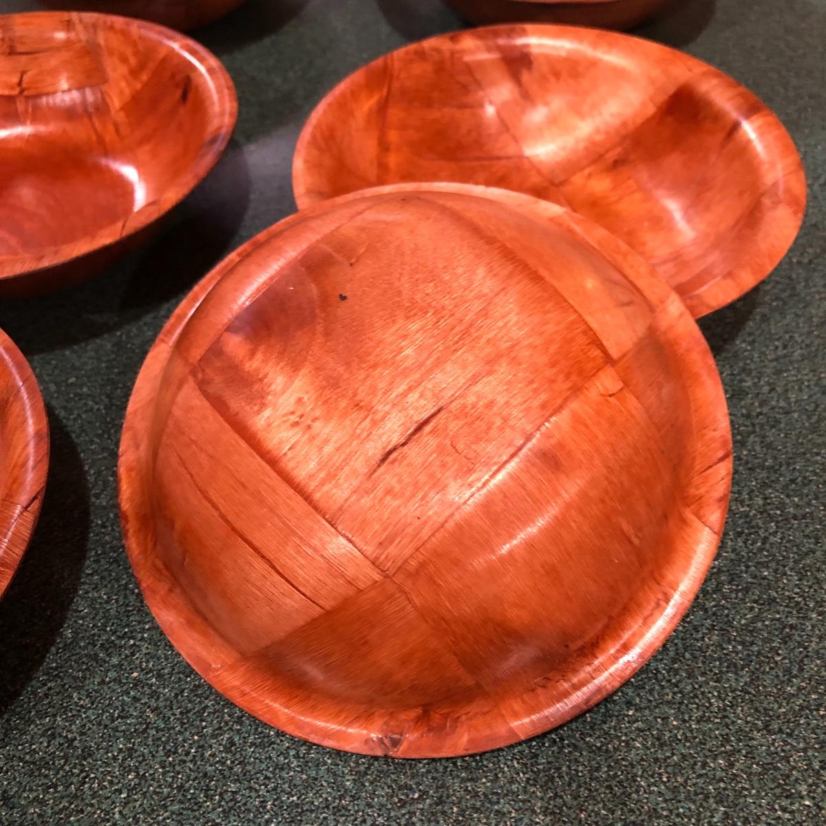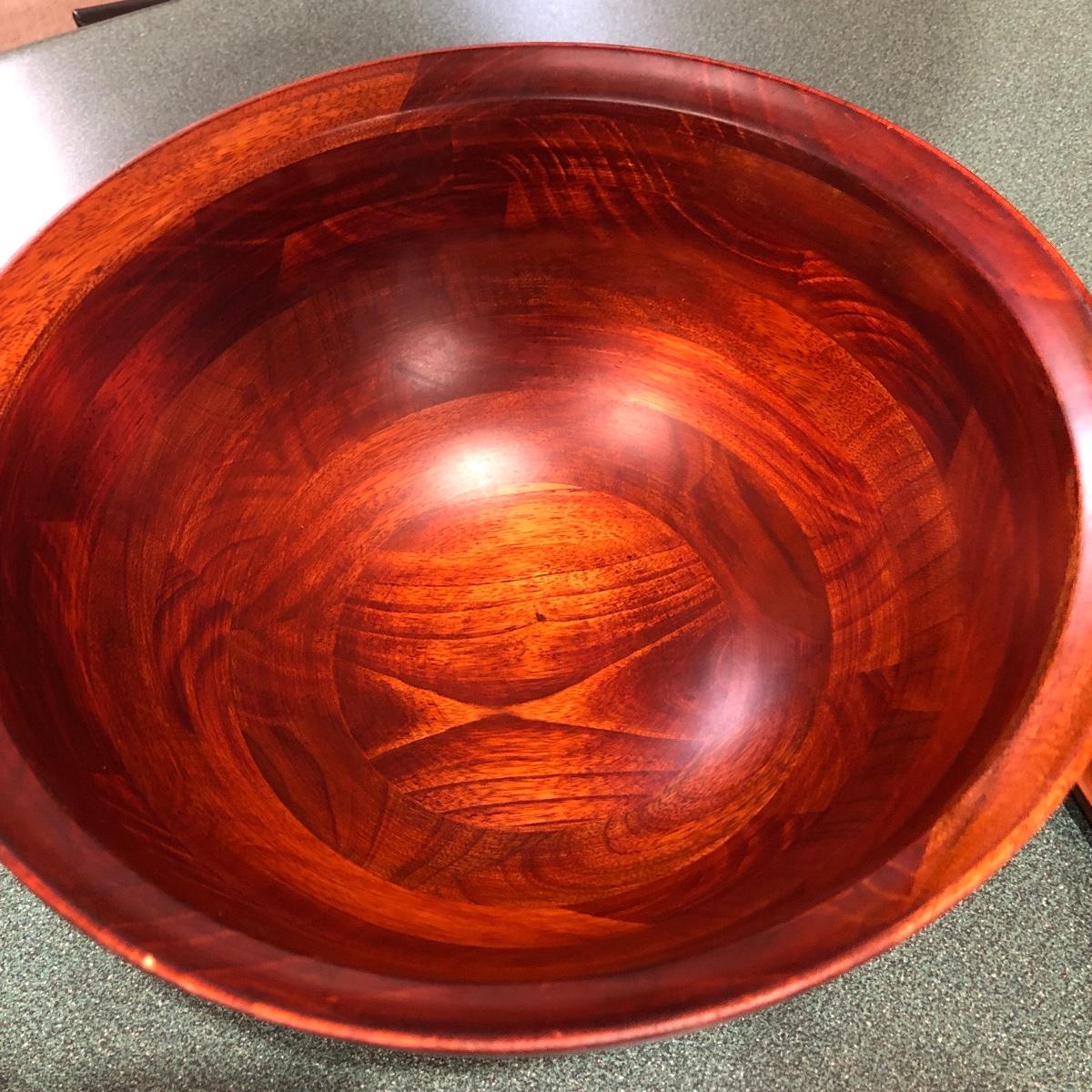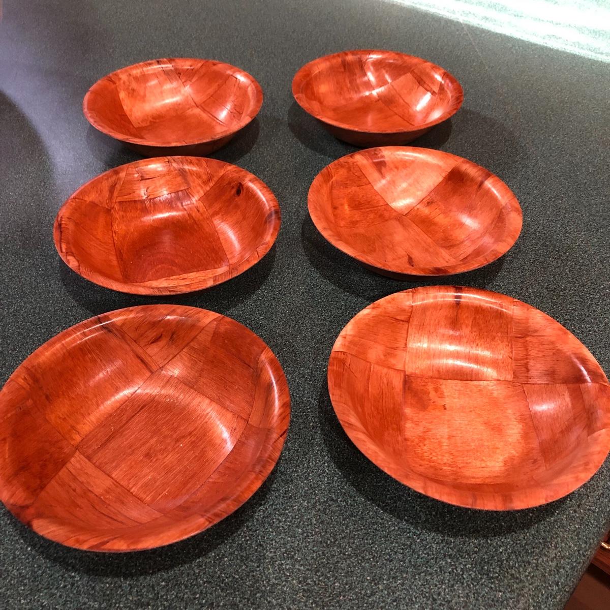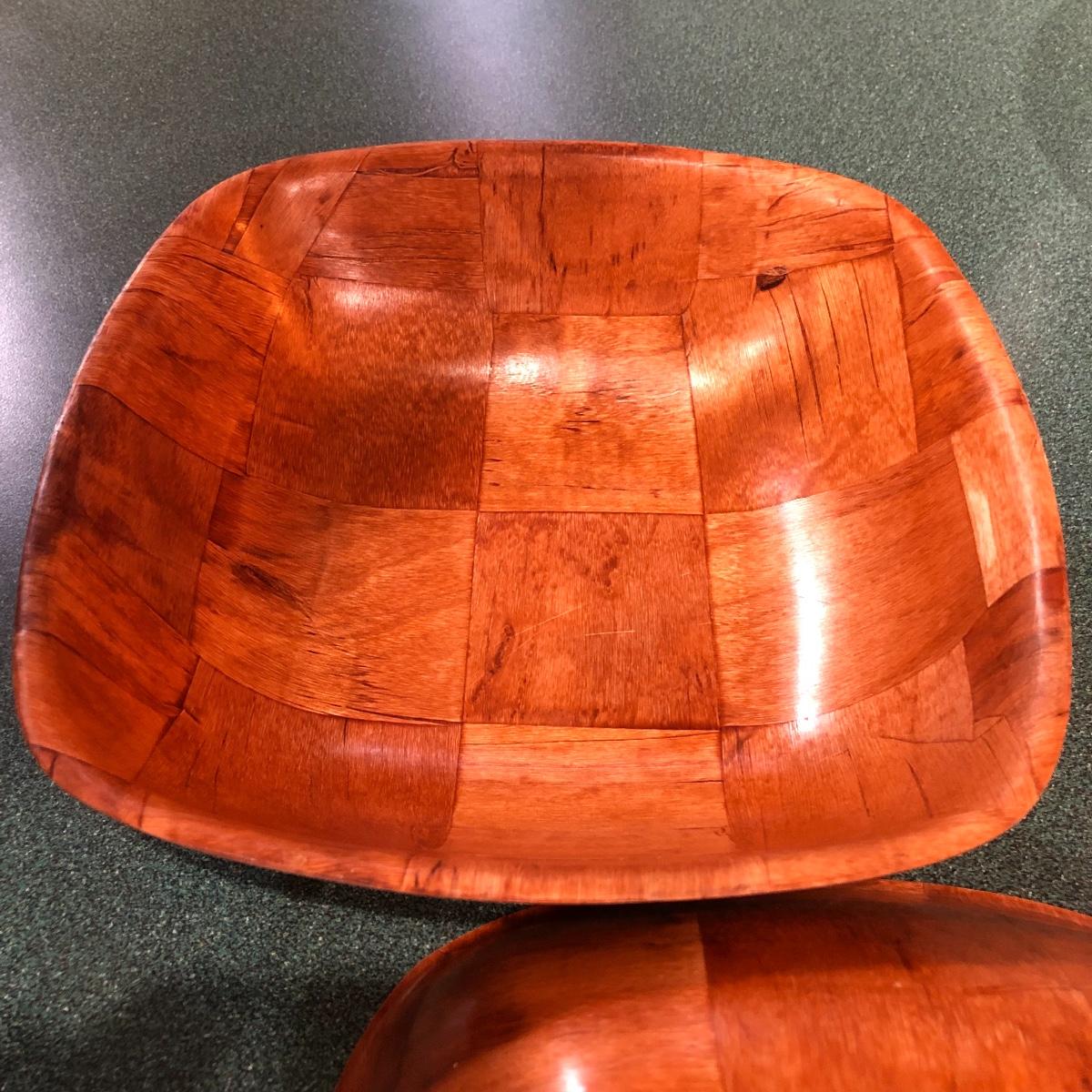 This lot includes a deep thick salad bowl (13” in diameter) with two serving utensils, two square wooden bowls (10” x 10”), six small salad bowls and one plastic bowl (12” in diameter). Shipping Available.