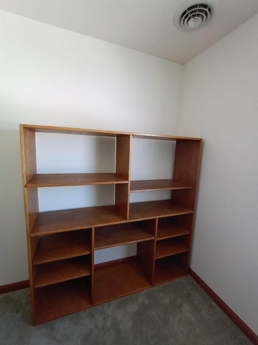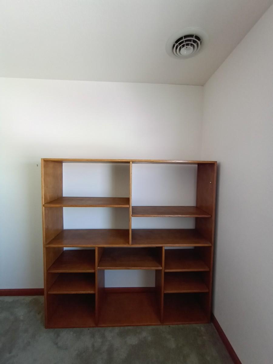 WOODEN SHELVING UNIT APPROX.60X16X61